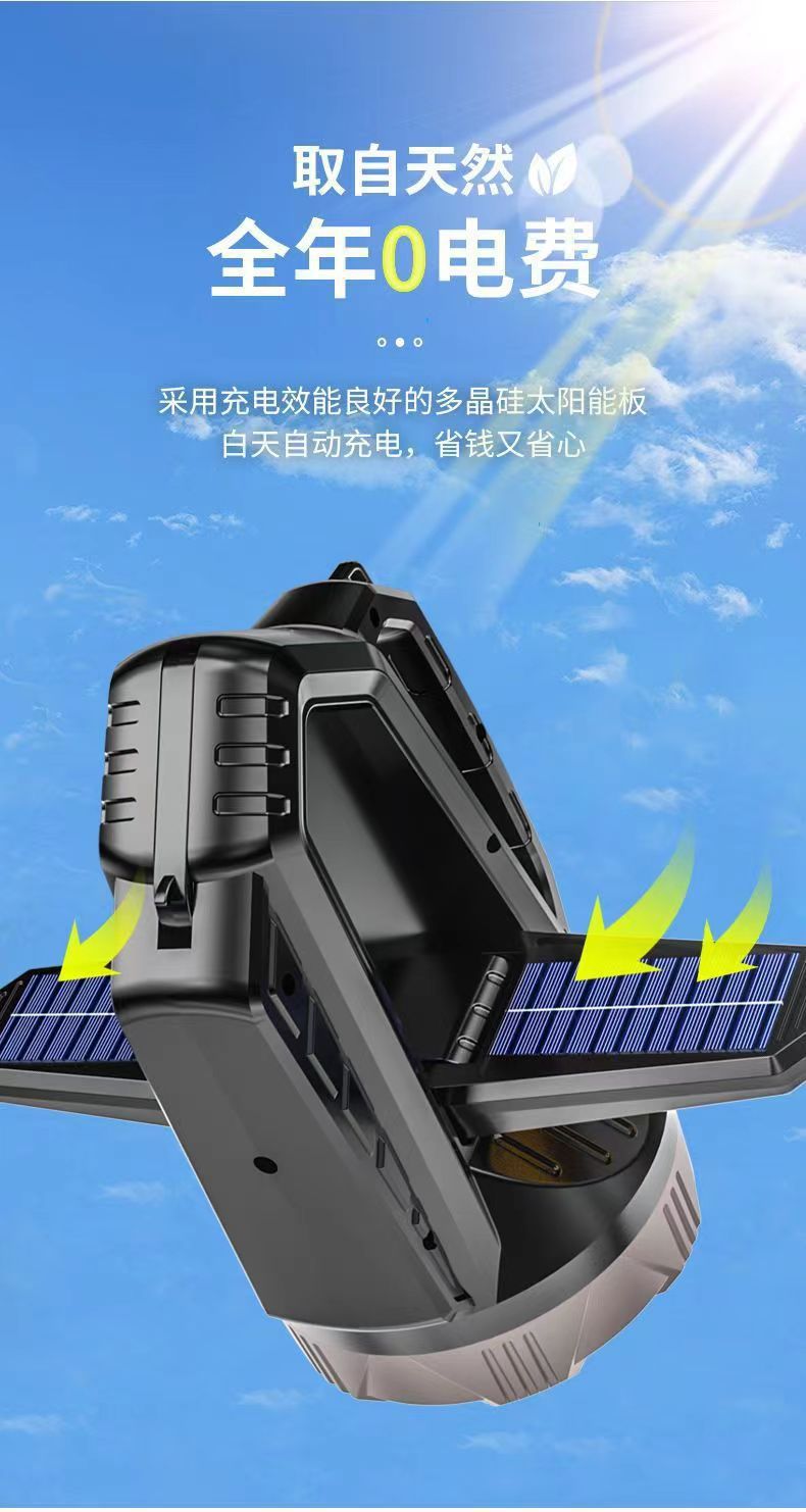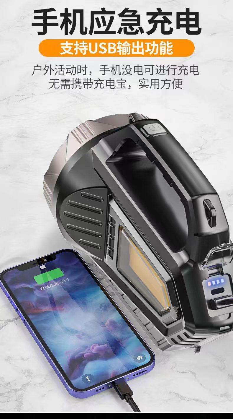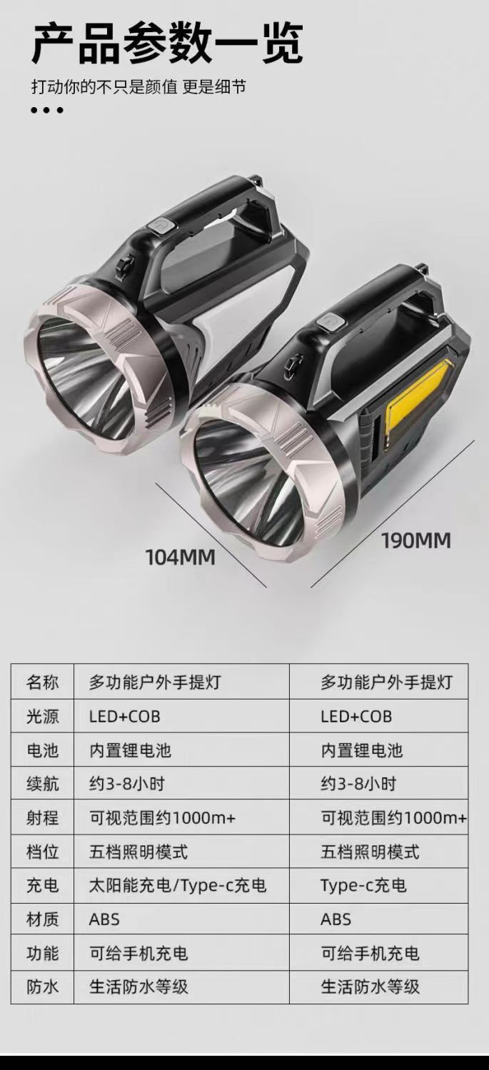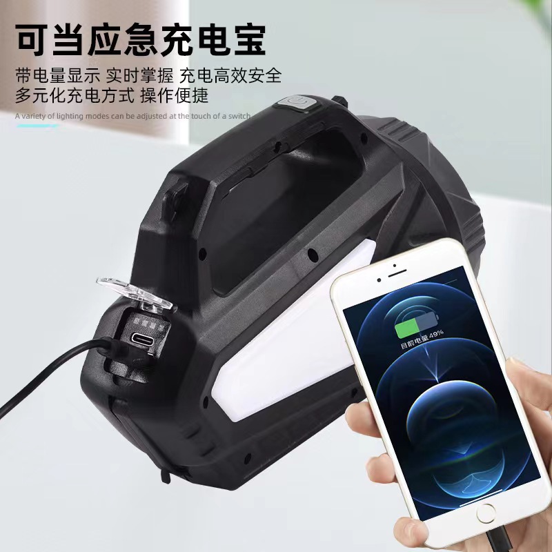 새로운 국경 간 다기능 태양 광 조명 순찰 휴대용 서치 라이트 야외 캠핑 캠핑 LED 서치 라이트