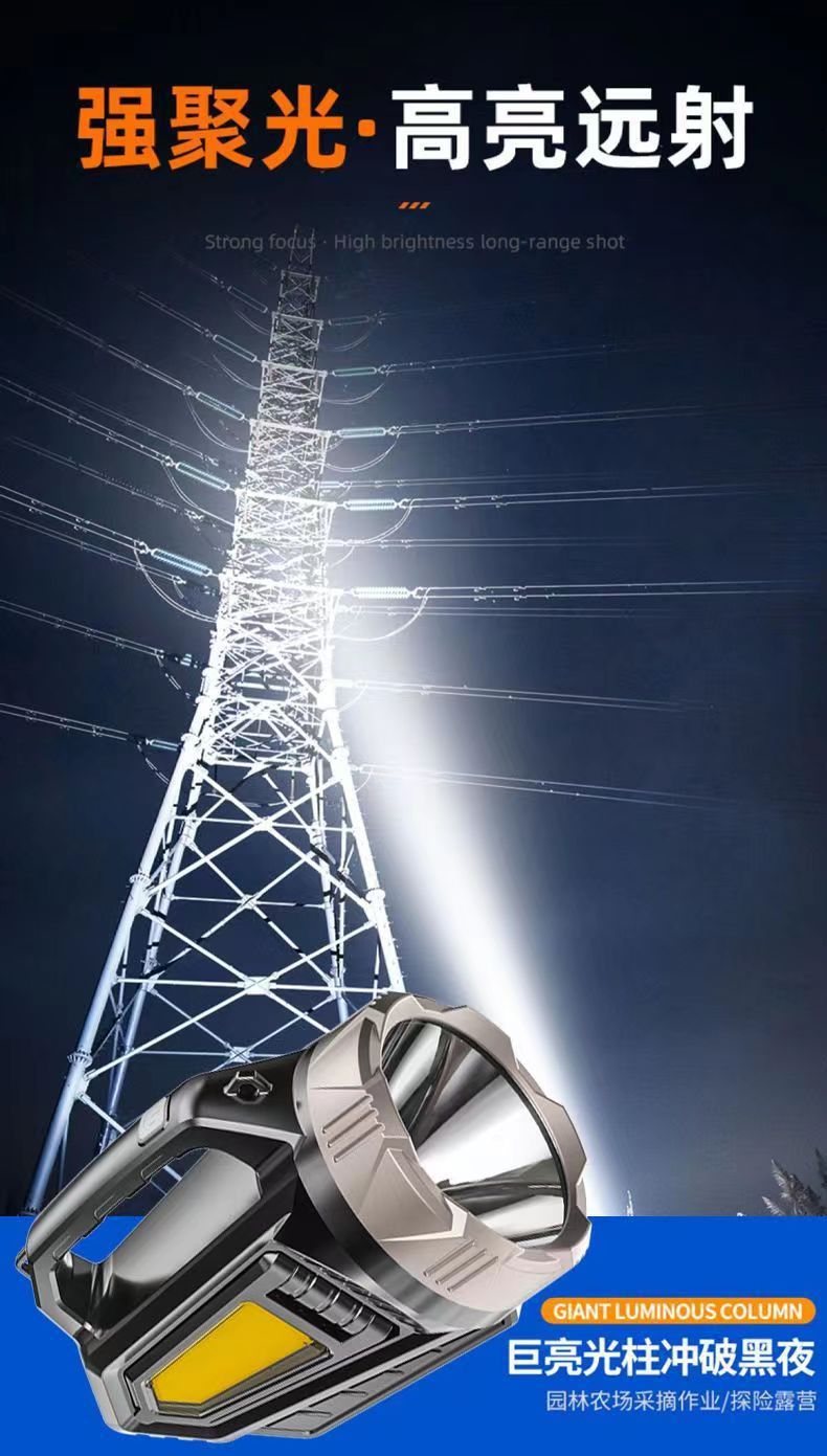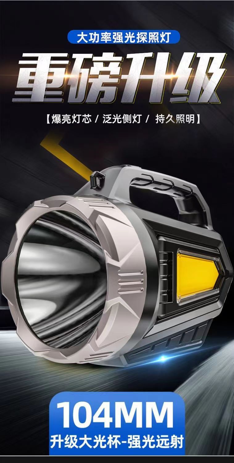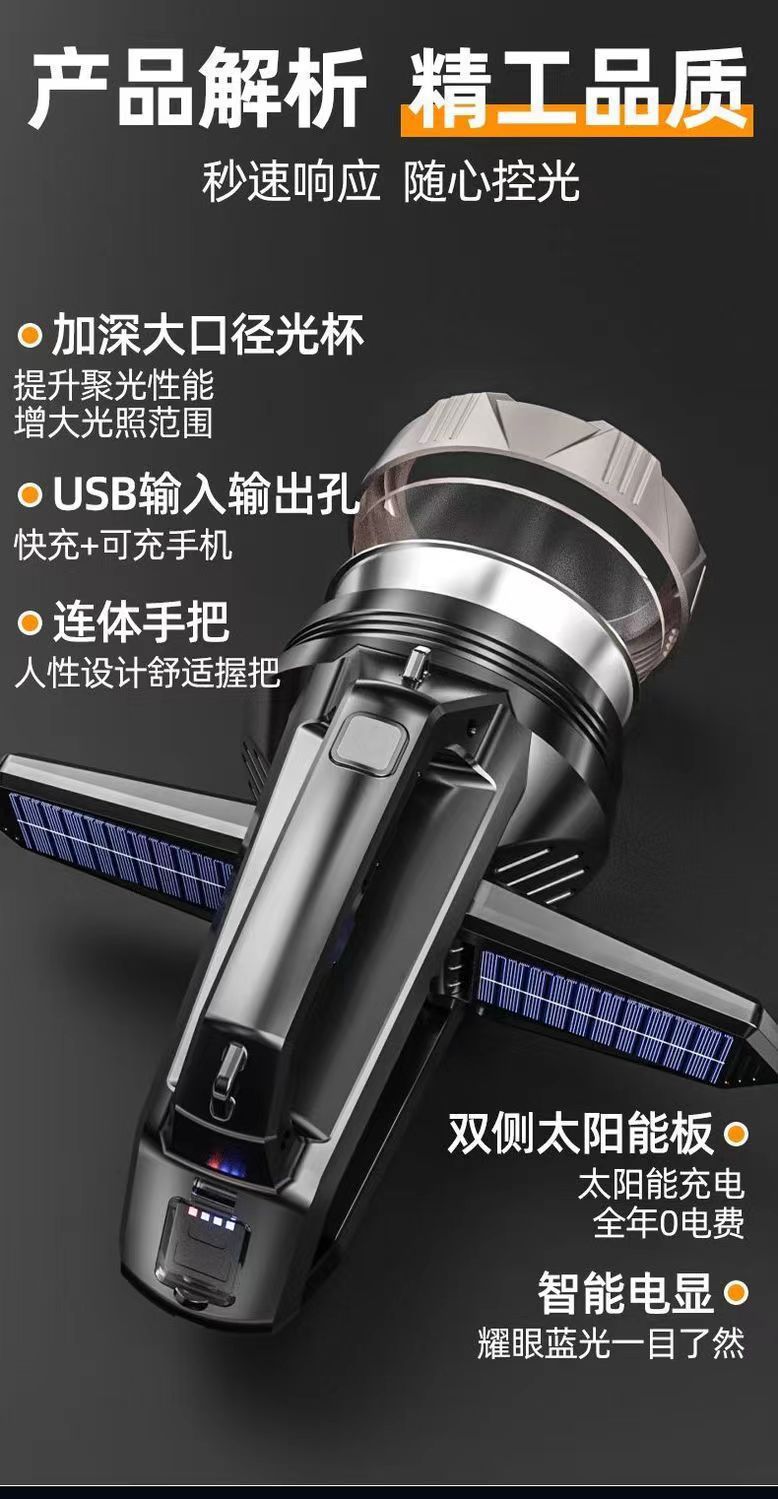 새로운 국경 간 다기능 태양 광 조명 순찰 휴대용 서치 라이트 야외 캠핑 캠핑 LED 서치 라이트