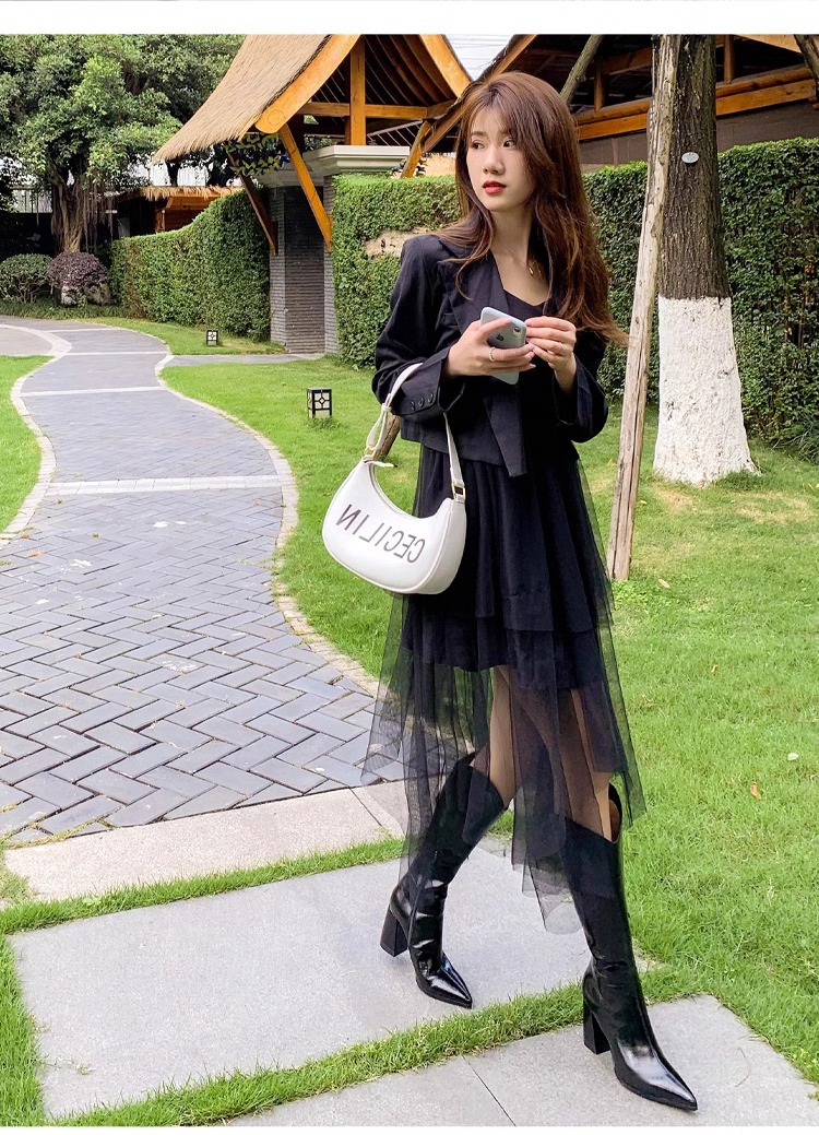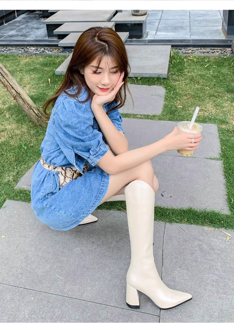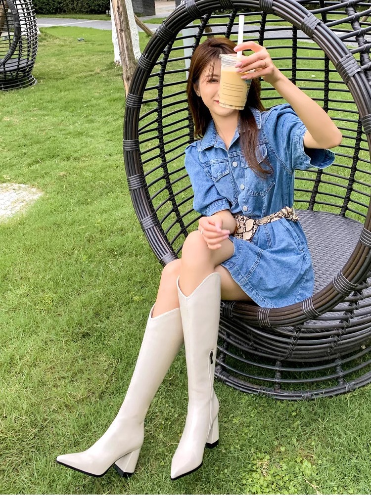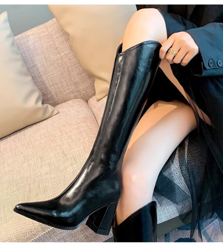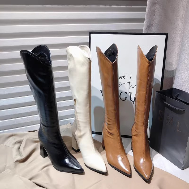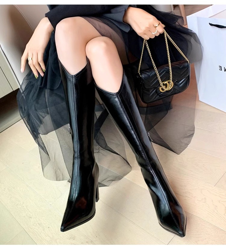 여성용 하이부츠 V컷부츠 2025 가을 신상 두꺼운 굽 하이힐 부츠 작은 부츠 다용도 나이트부츠