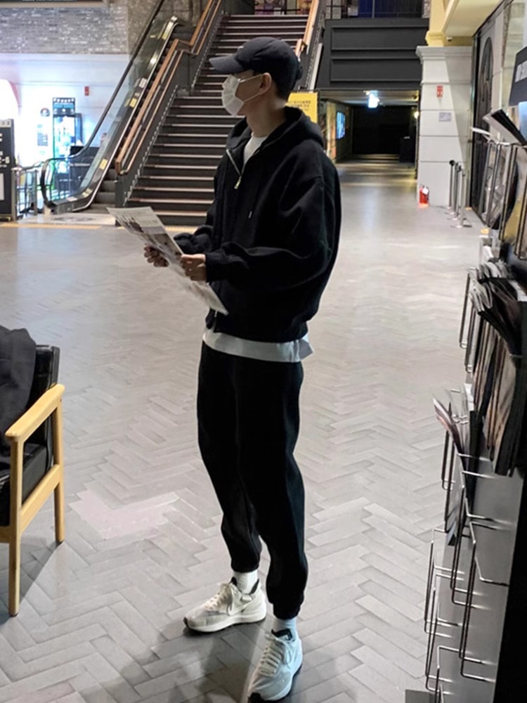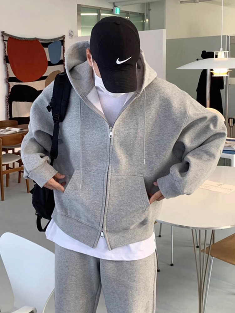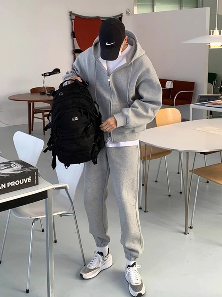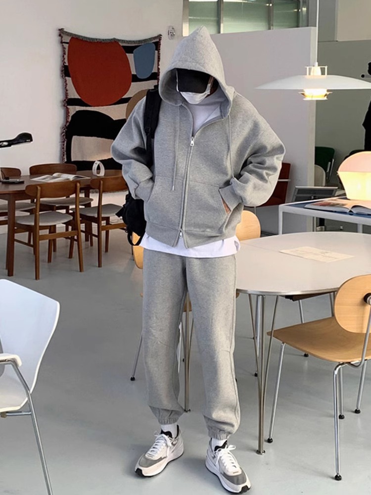 회색 스웨트 셔츠 세트 남성 뉴 2024 올 봄과 가을 인기 캐주얼 스포츠 자켓 한국 캐주얼 스웨트 셔츠