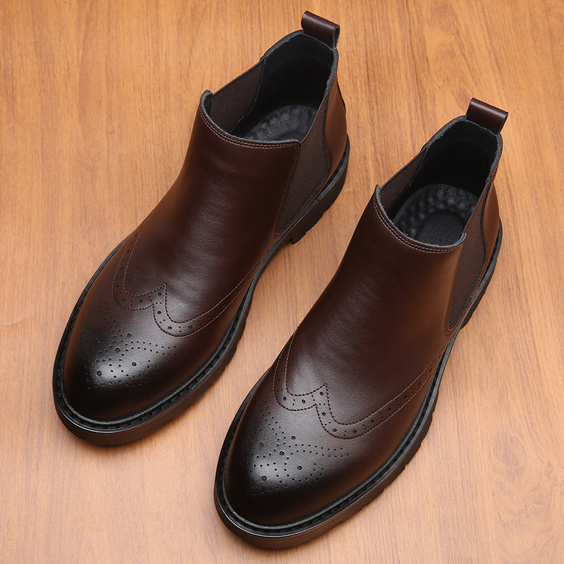 영국 스타일 첼시 발목 부츠 남자 다리 마틴 부츠 기모 조커 브록 조각 비즈니스 발목 가죽 부츠