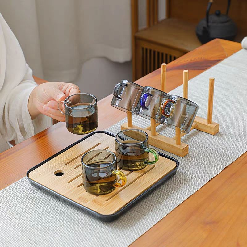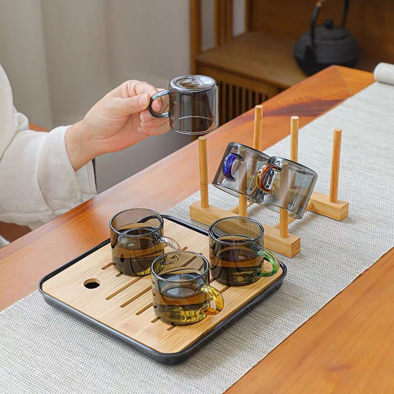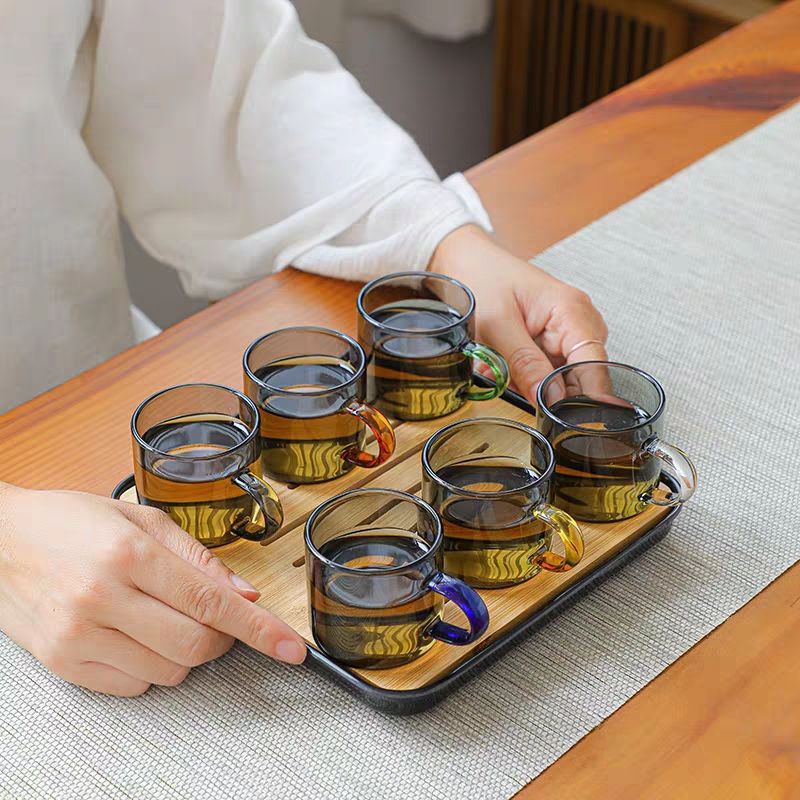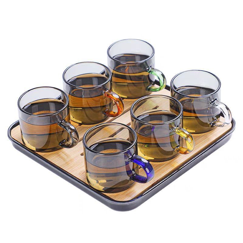 공장 도매 컬러 핸들 홍차 컵 홈 환대 유리 차 컵 쿵푸 차 작은 차 그릇