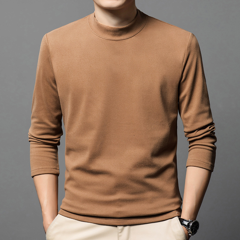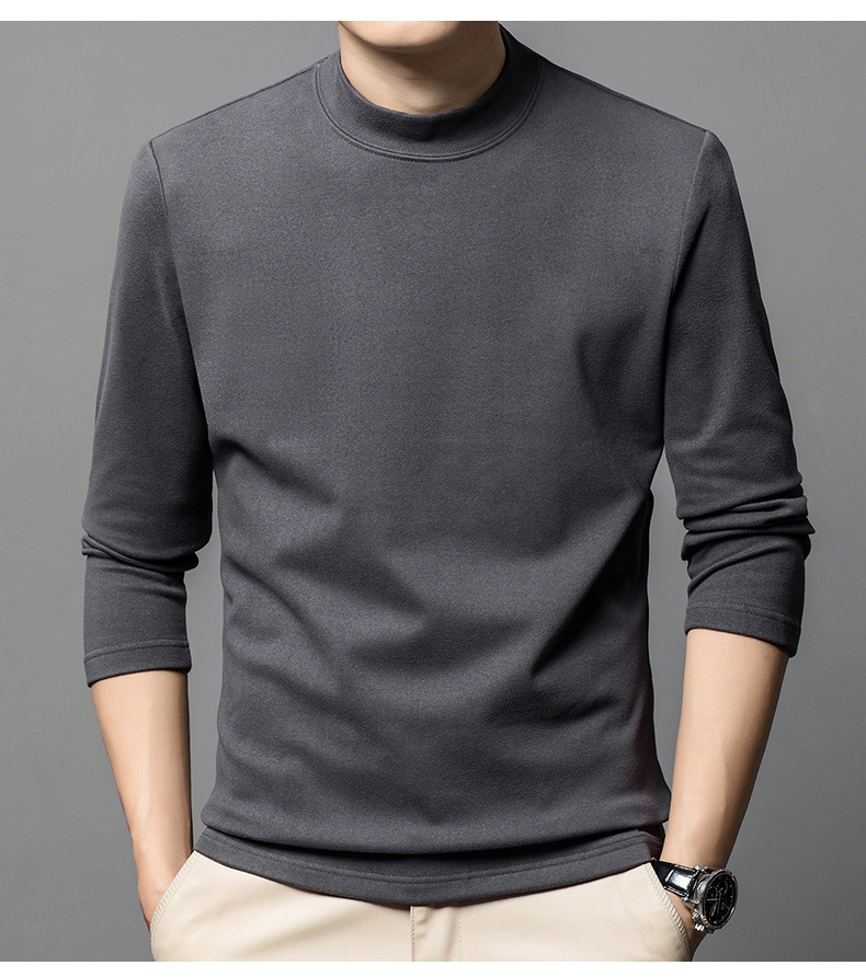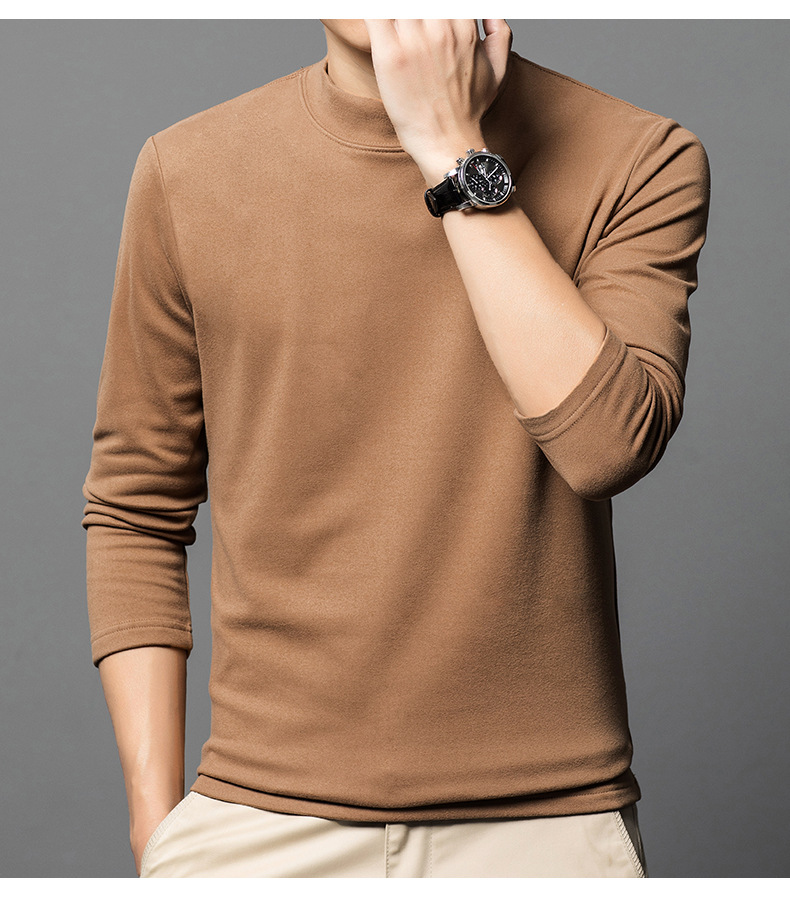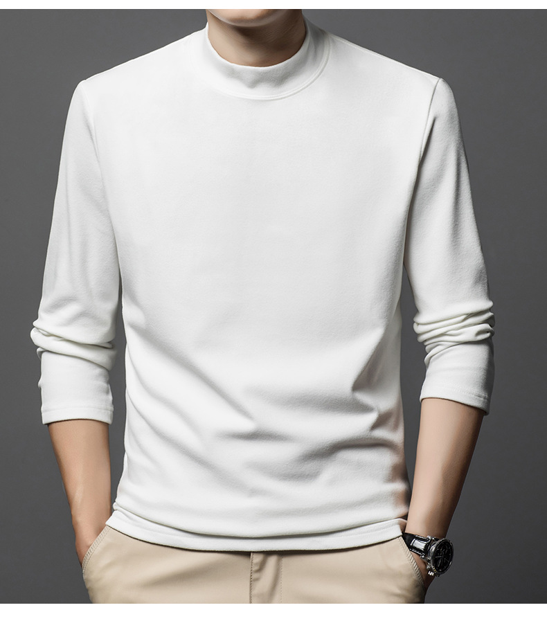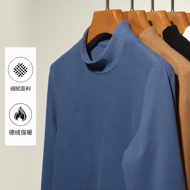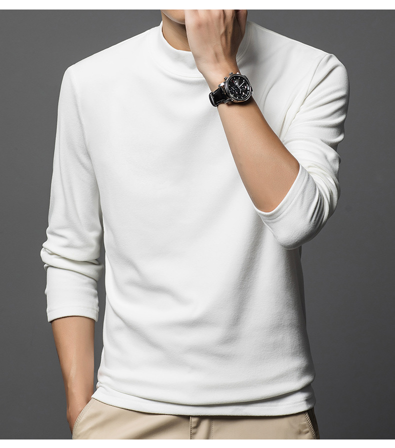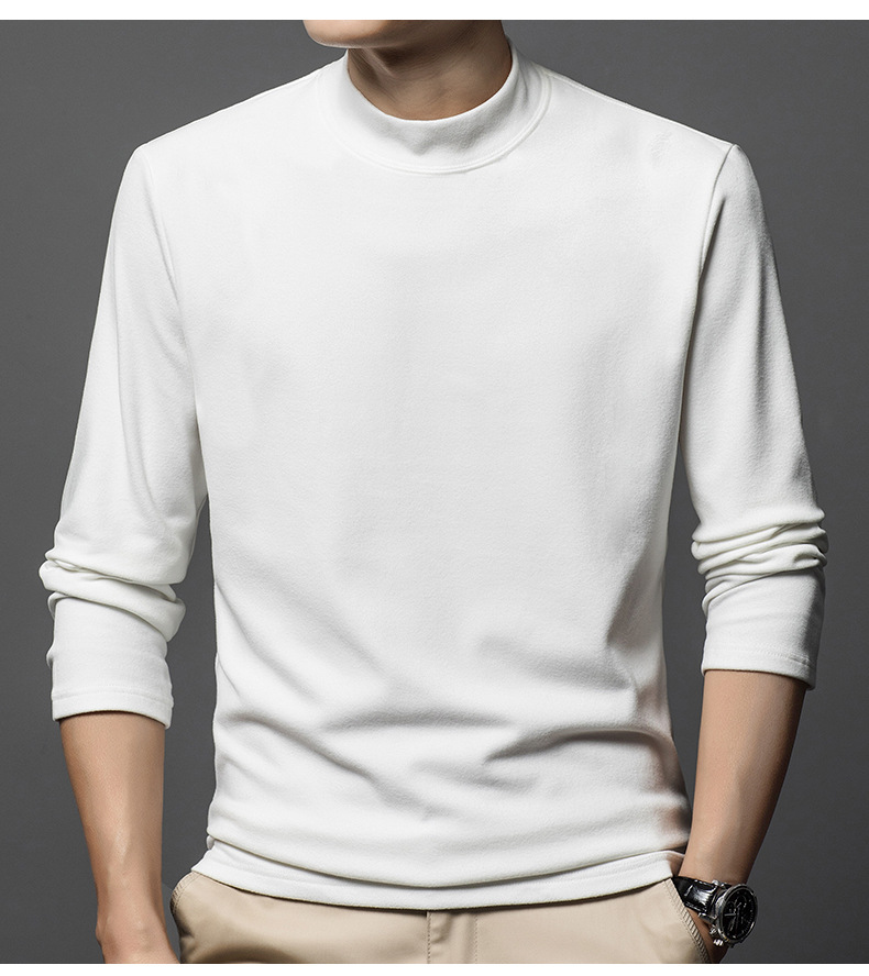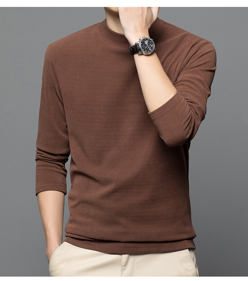 긴 소매 단색 티셔츠 칼라 재킷 도매로 가을과 겨울 양면 독일 벨벳 남성 세미 하이 칼라 바닥 셔츠 폭발