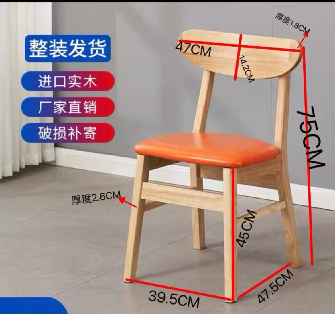 테이블 1개, 의자 4개, 리얼 슬레이트 원목 테두리 오렌지 쿠션