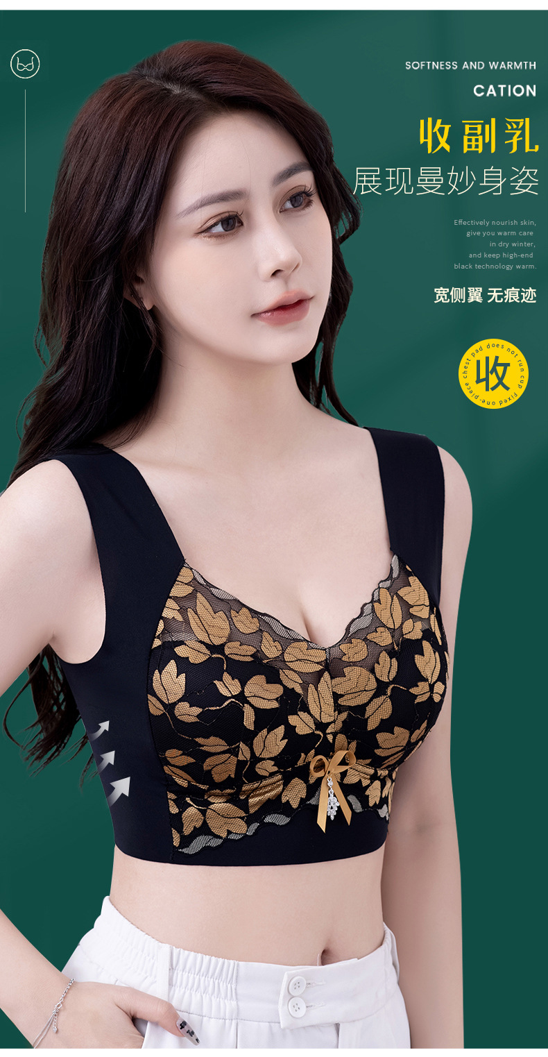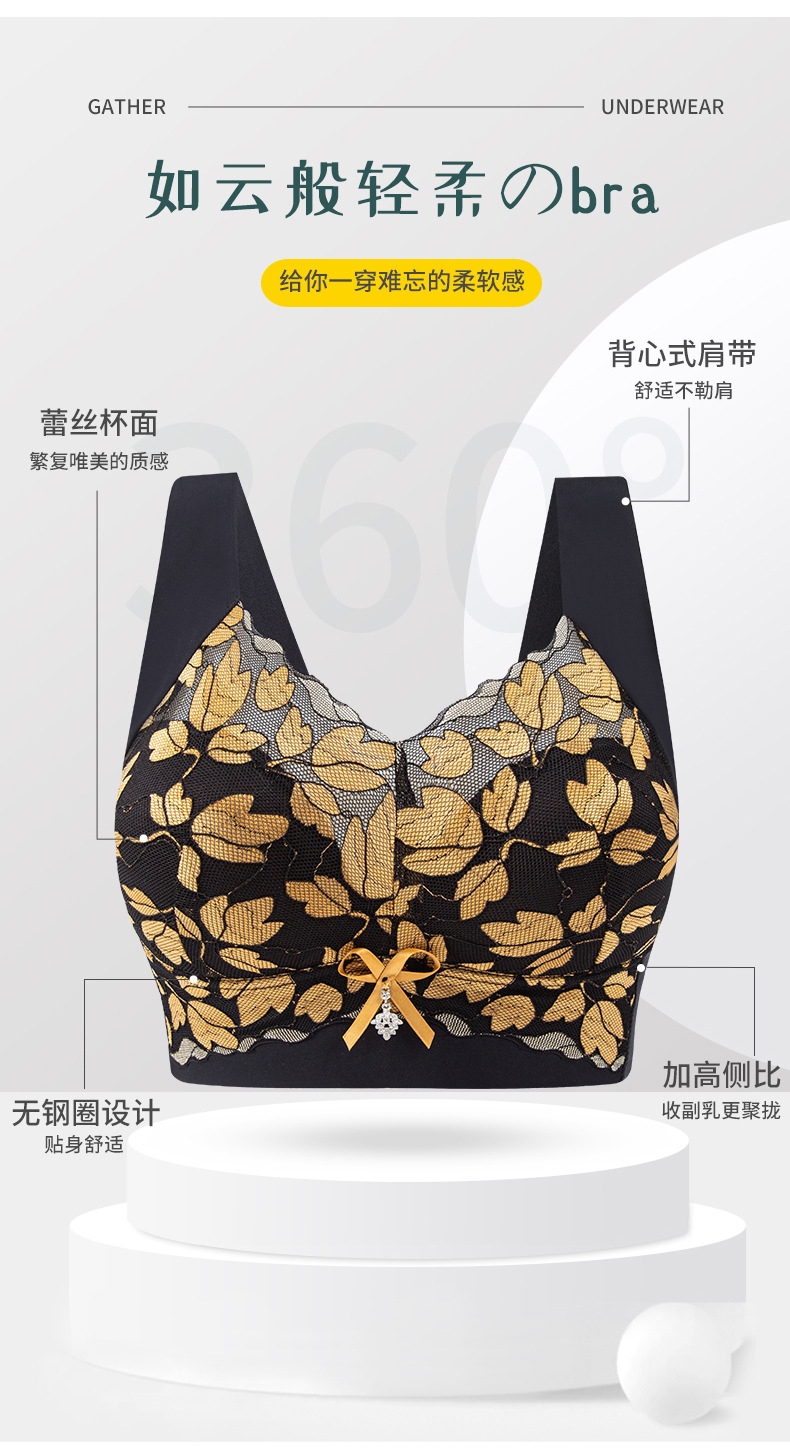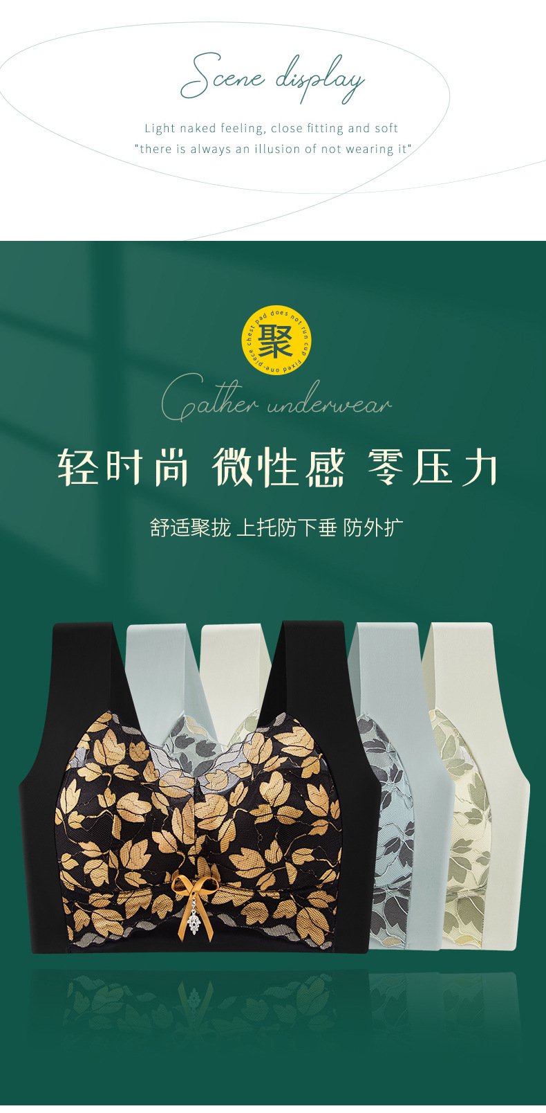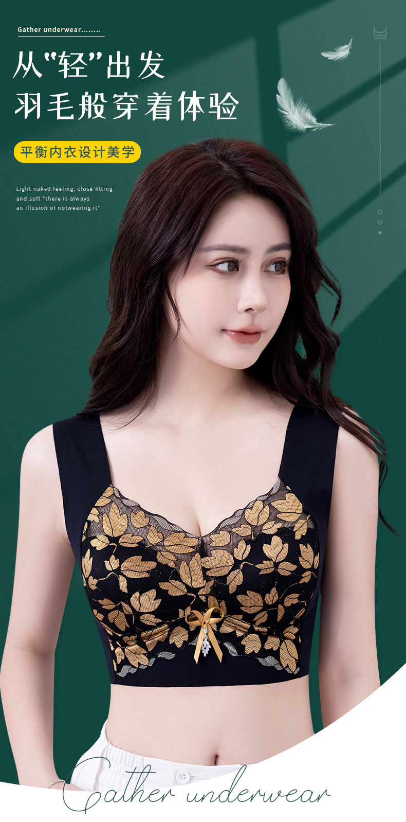 2024 속옷 여성의 아름다운 등 레이스 랩 가슴 조끼 고정 컵 큰 가슴 작은 붕괴 된 Paramax 모임 추적없는 브래지어