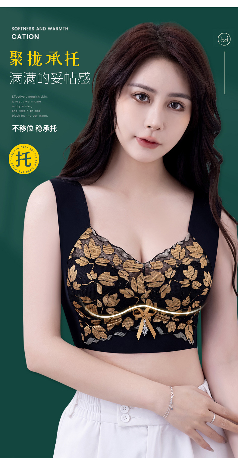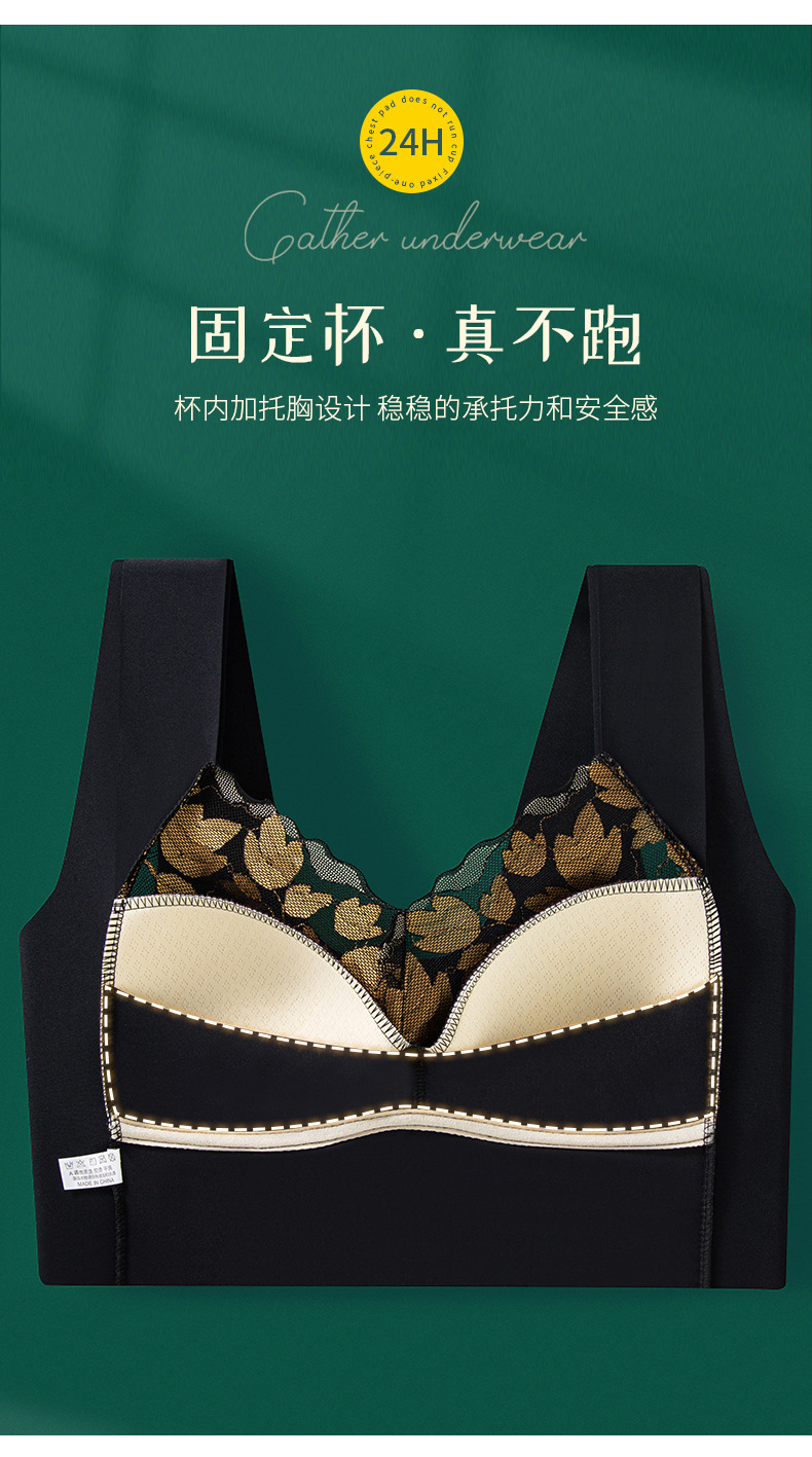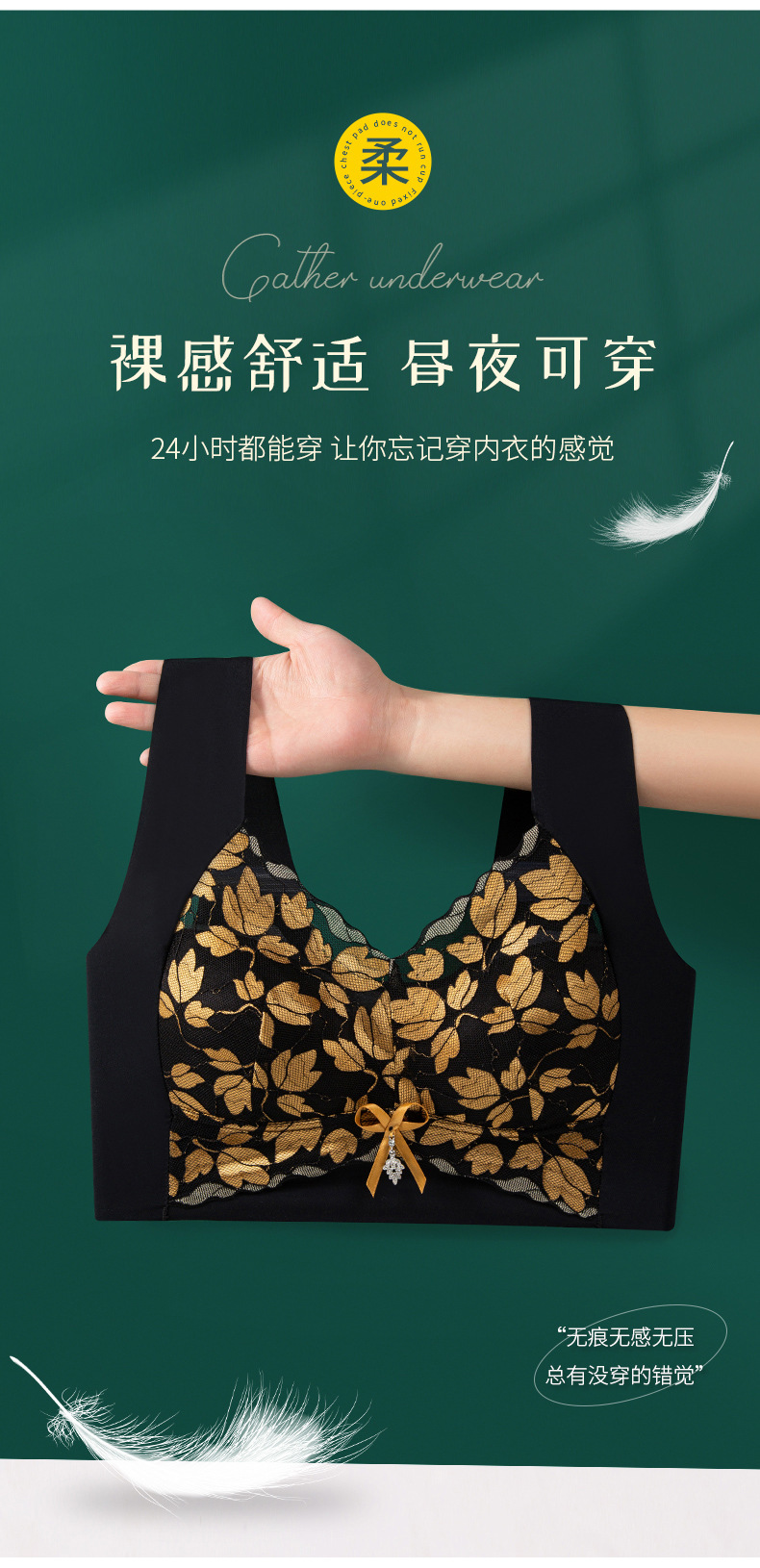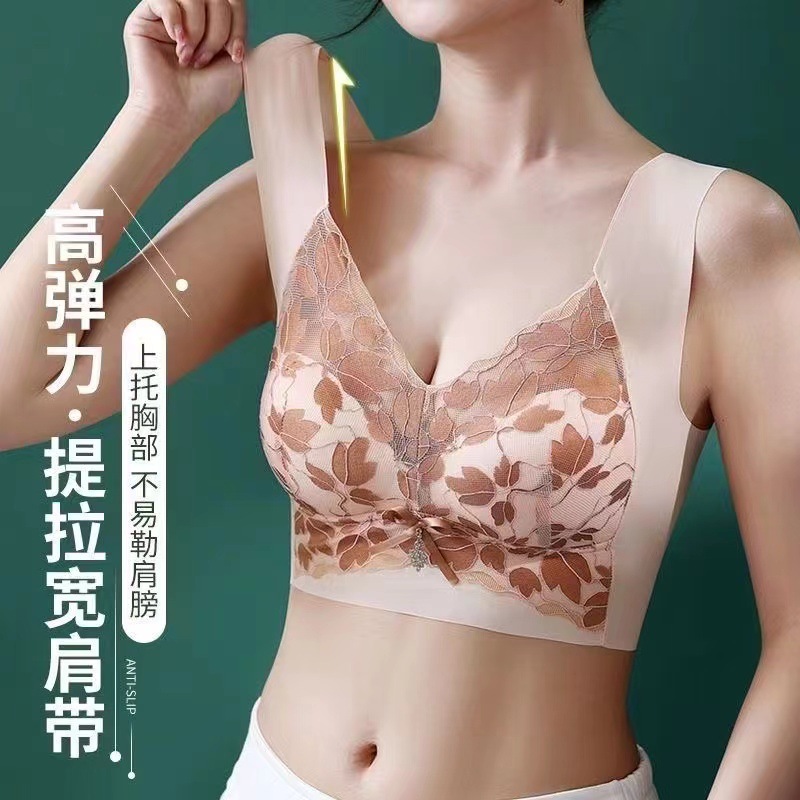 2024 속옷 여성의 아름다운 등 레이스 랩 가슴 조끼 고정 컵 큰 가슴 작은 붕괴 된 Paramax 모임 추적없는 브래지어
