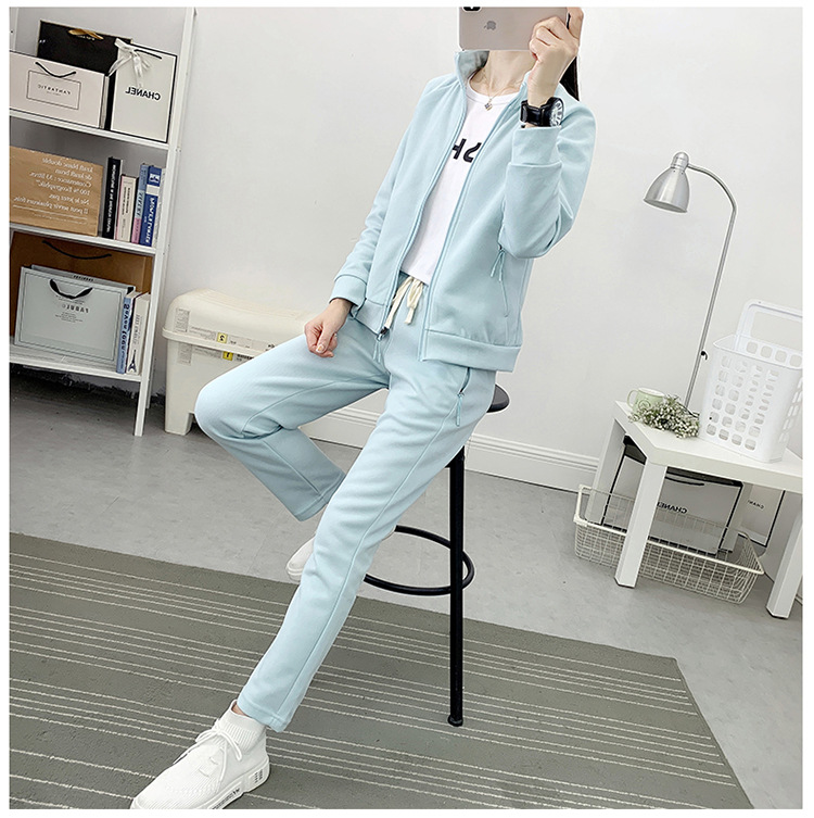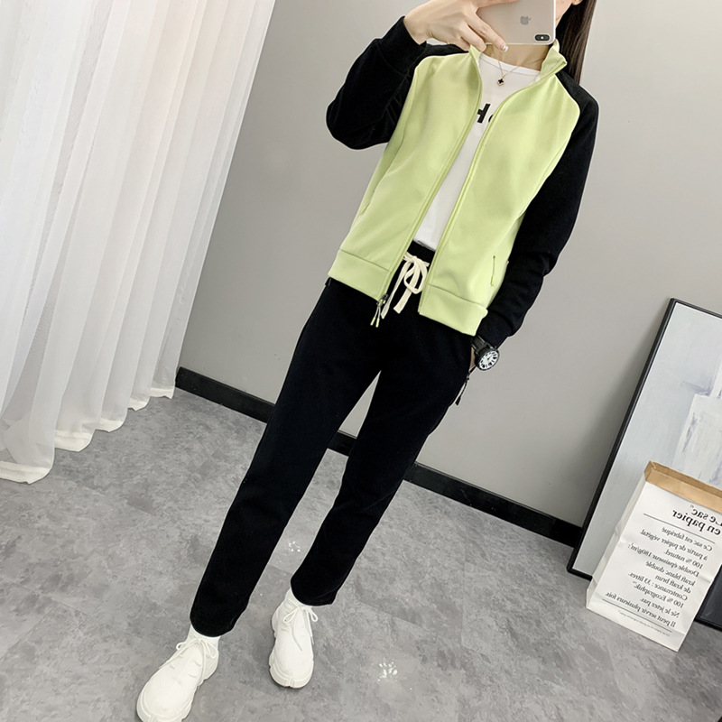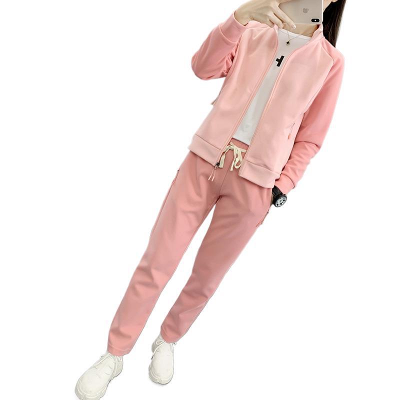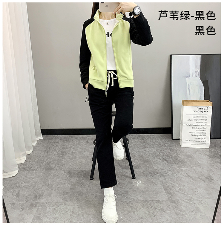 2024 봄과 가을 여성 슬리밍 캐주얼 스포츠웨어 세트 슬림 핏 바지 2 피스 세트 수직 칼라 카디건과 스웨터 바지