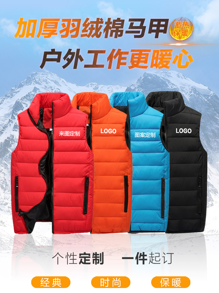 도매 다운 코튼 조끼 스탠드 칼라 후드 자원 봉사 작업복 인쇄 로고 그룹 활동 작업복