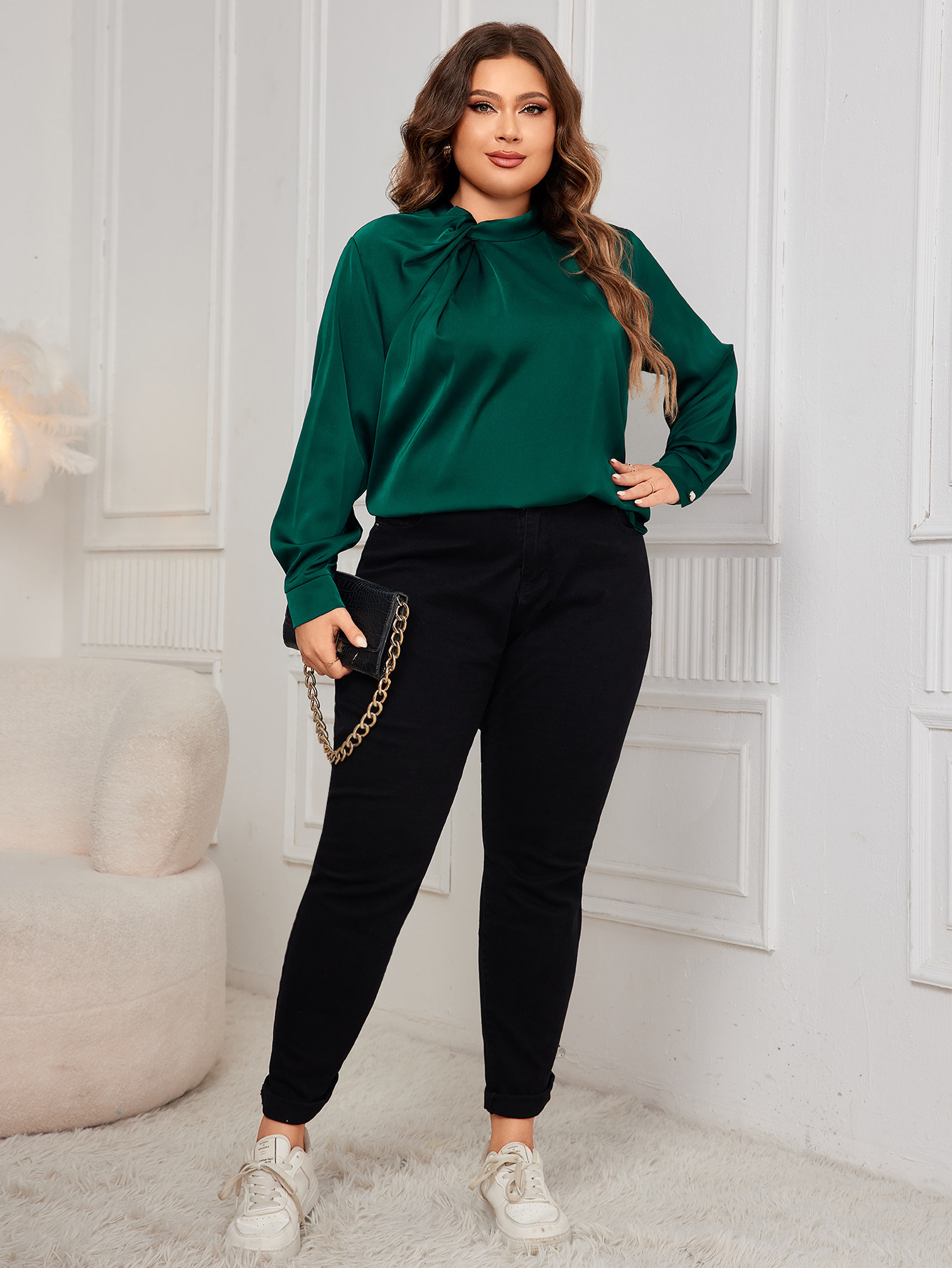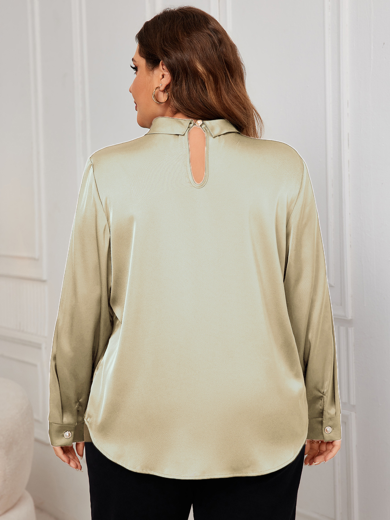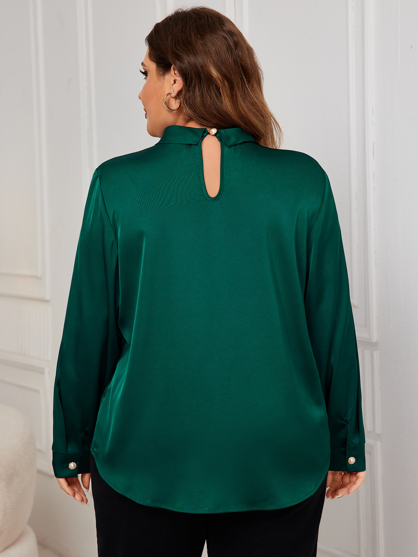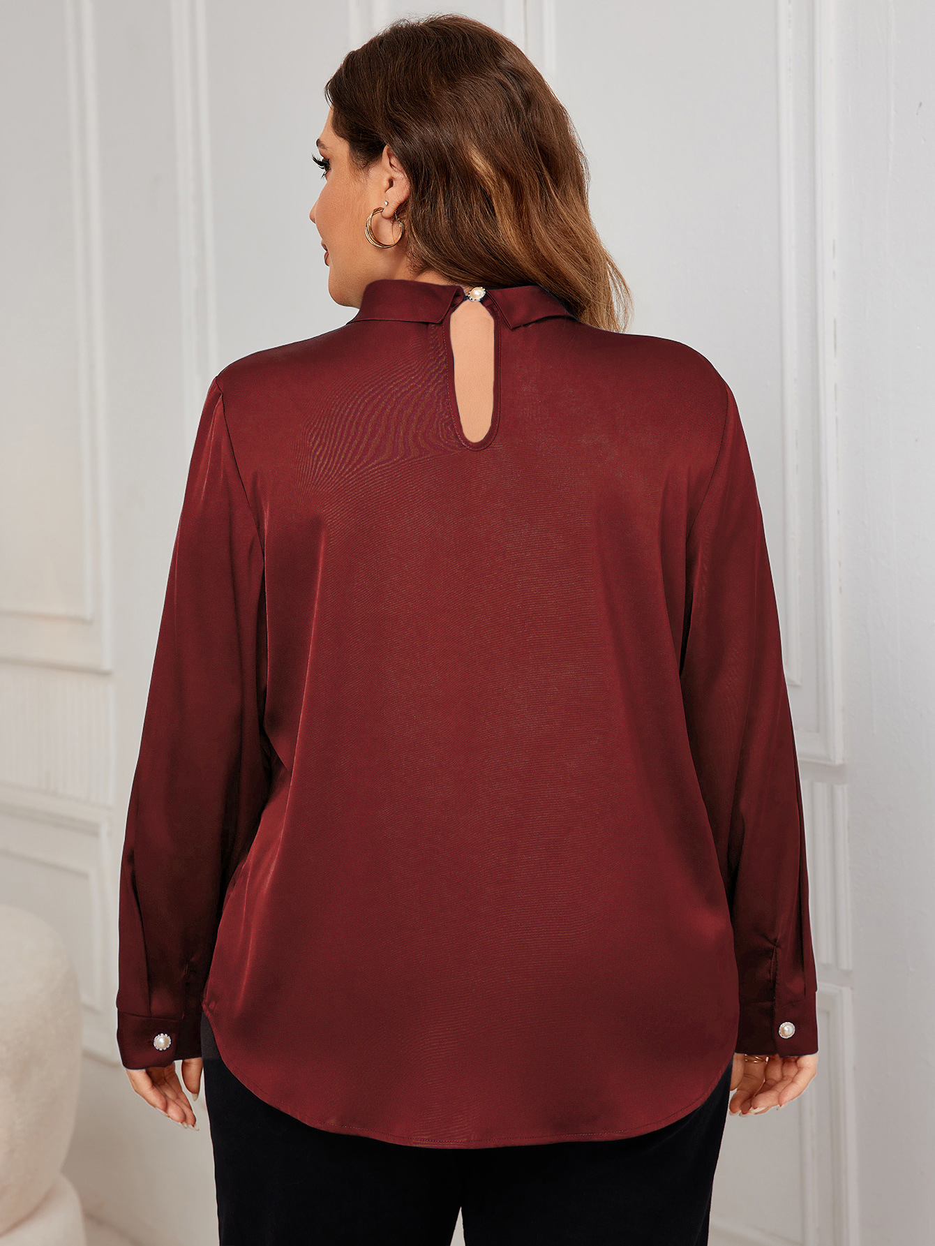 아마존 AliExpress 솔리드 컬러 셔츠 가을 새로운 올매치 탑 슬림핏 느슨한 긴팔 셔츠 여성용 플러스 사이즈
