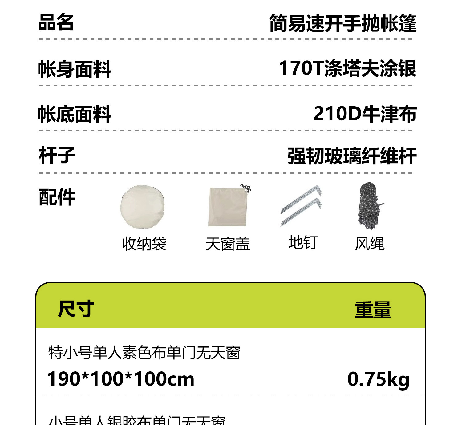특소형 1인용 *무지 천* 단문형 천창 없음 [다크 그린]