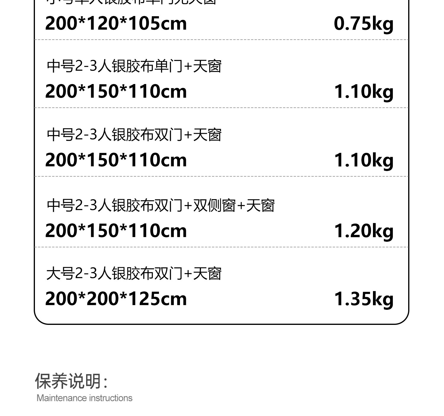 업그레이드된 중형 2-3인용 은박 테이프 + 양문형 도어 + 양쪽 측면 창문 + 천창 [다크 그린]