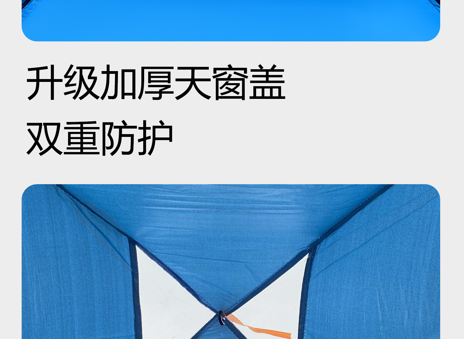 업그레이드된 중형 2-3인용 은박 테이프 + 양문형 + 양측면 창문 + 천창 [레이크 블루]