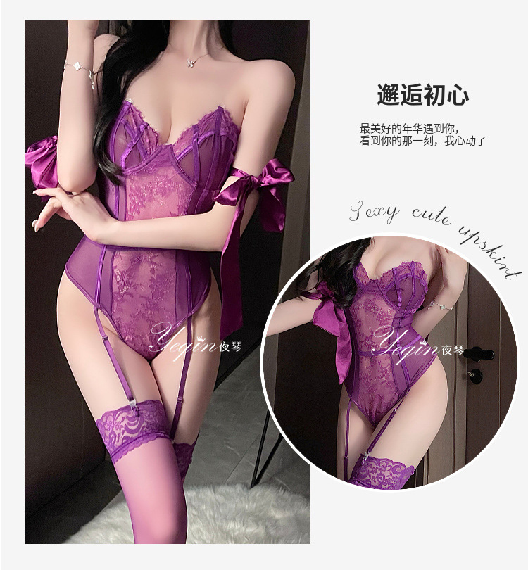나이트 피아노 섹시한 속옷 보라색 섹시한 여성 파자마 순수한 바람둥이 부끄러움 작은 가슴 쇼 큰 점프 수트 7452