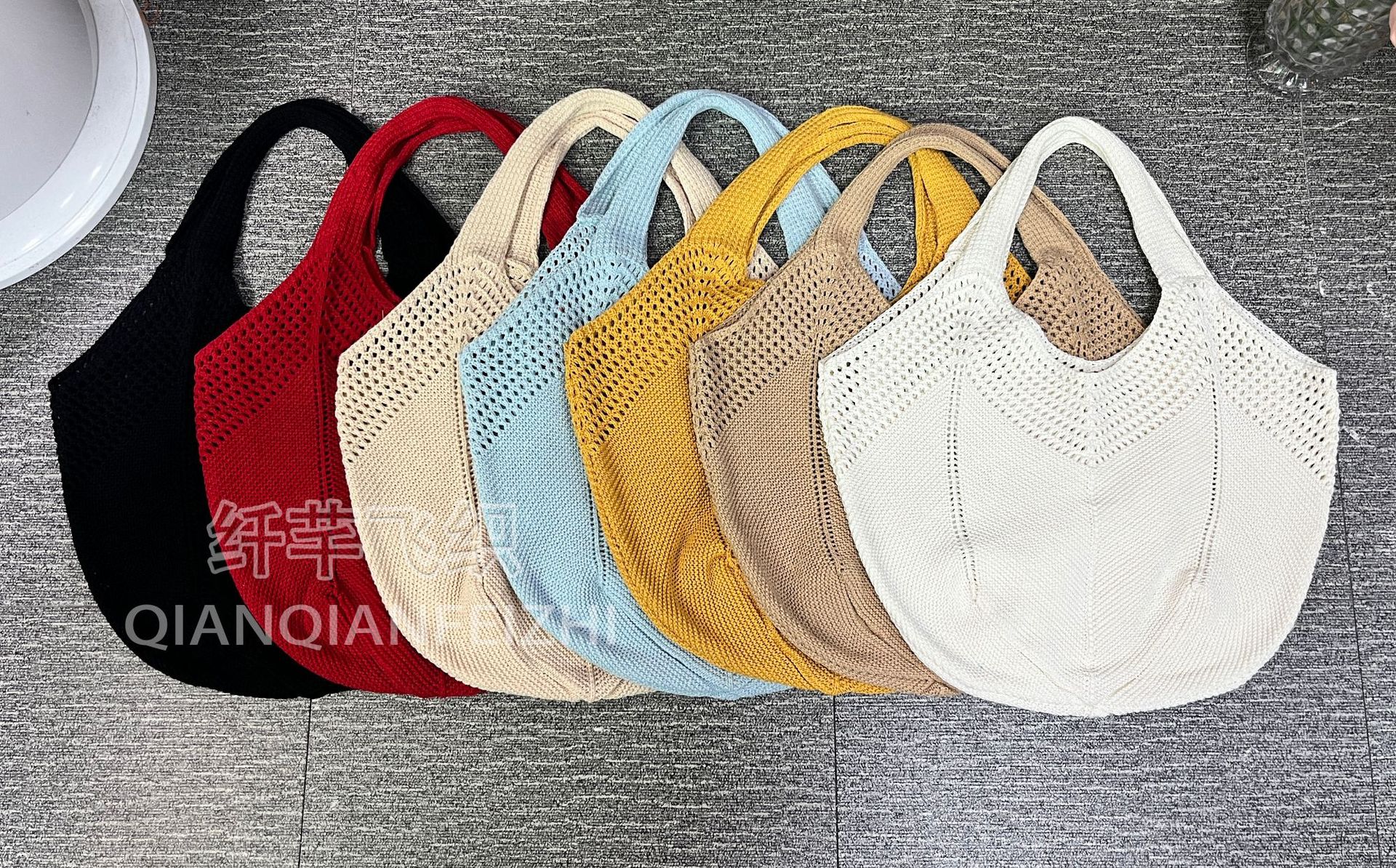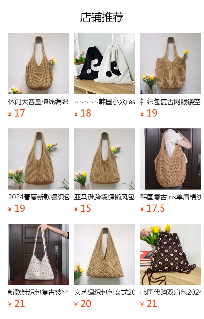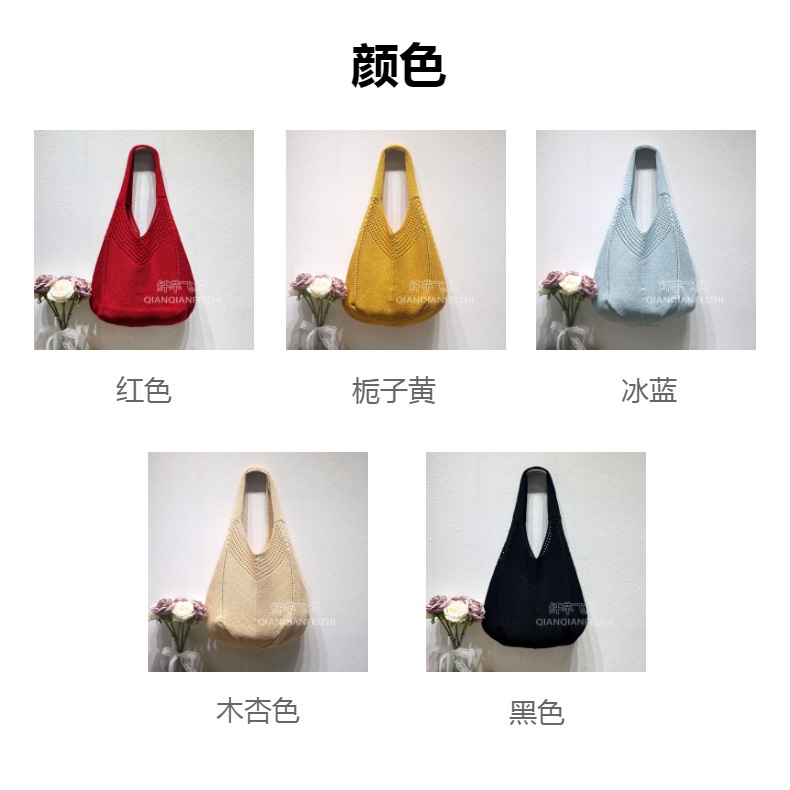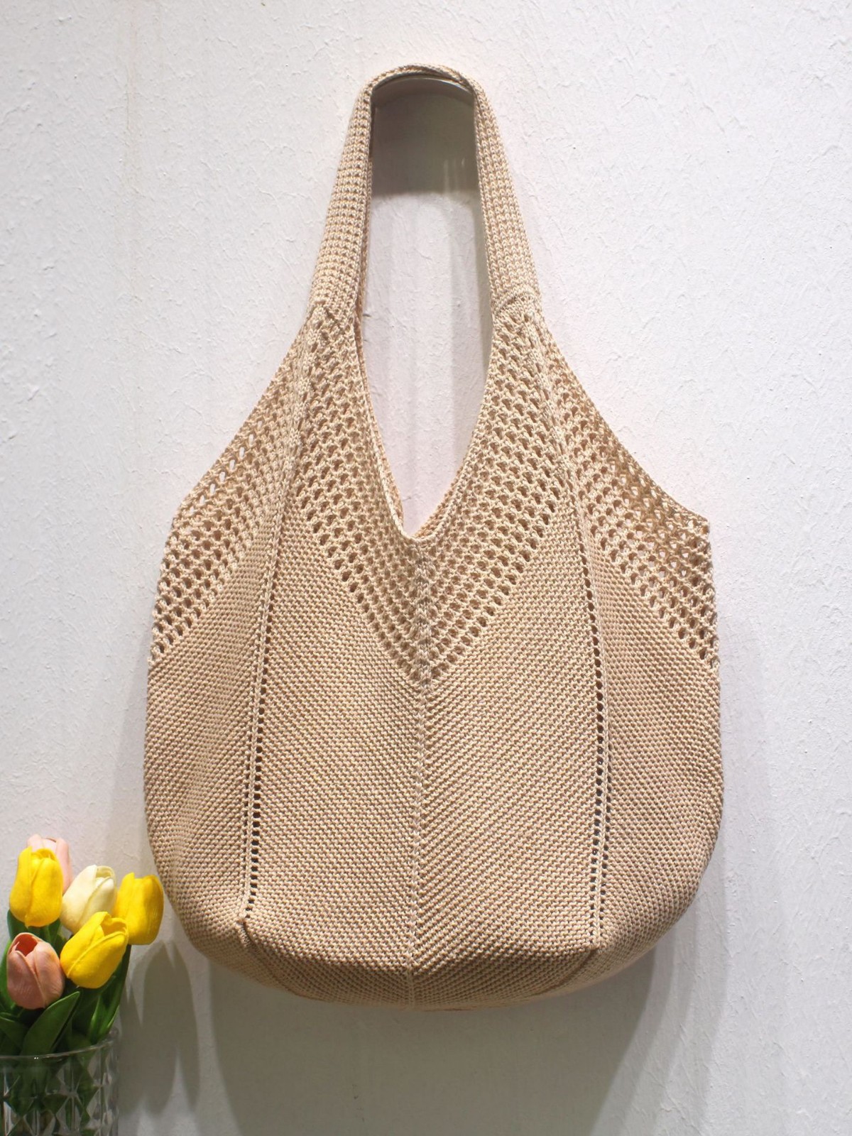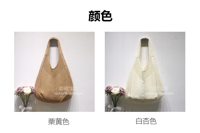 캐주얼 대용량 폴리 에스테르 니트 백 새로운 할로우 니트 백 스위트 스타일 숄더 백 홀리데이 비치 백 여성용 가방