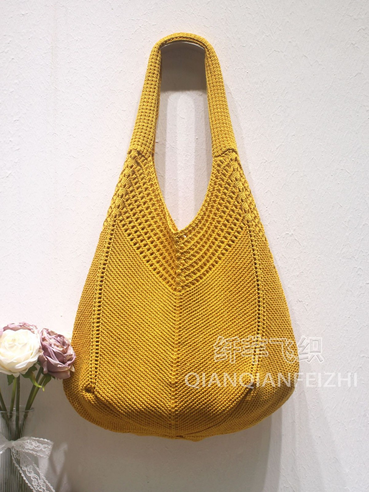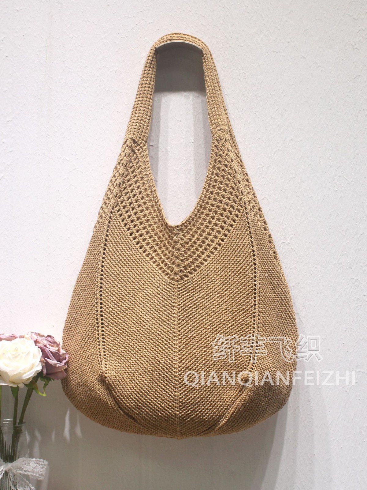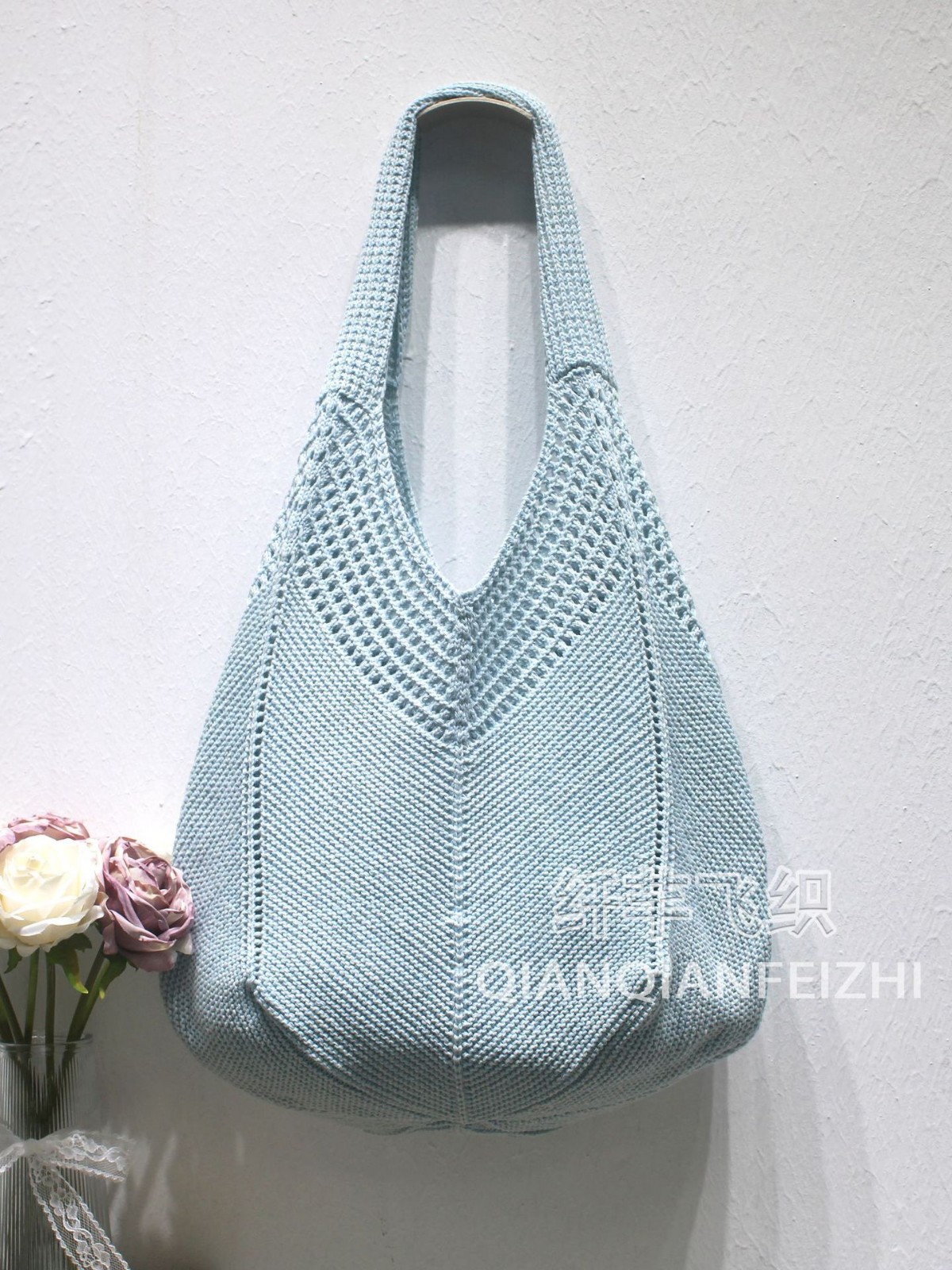 캐주얼 대용량 폴리 에스테르 니트 백 새로운 할로우 니트 백 스위트 스타일 숄더 백 홀리데이 비치 백 여성용 가방