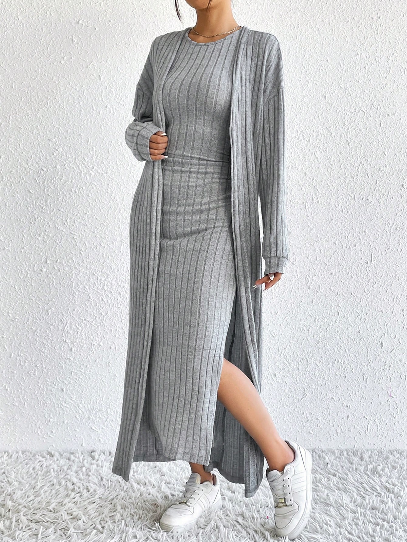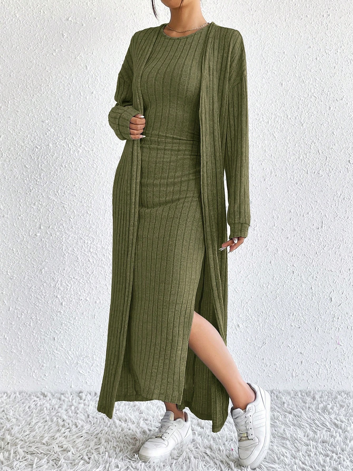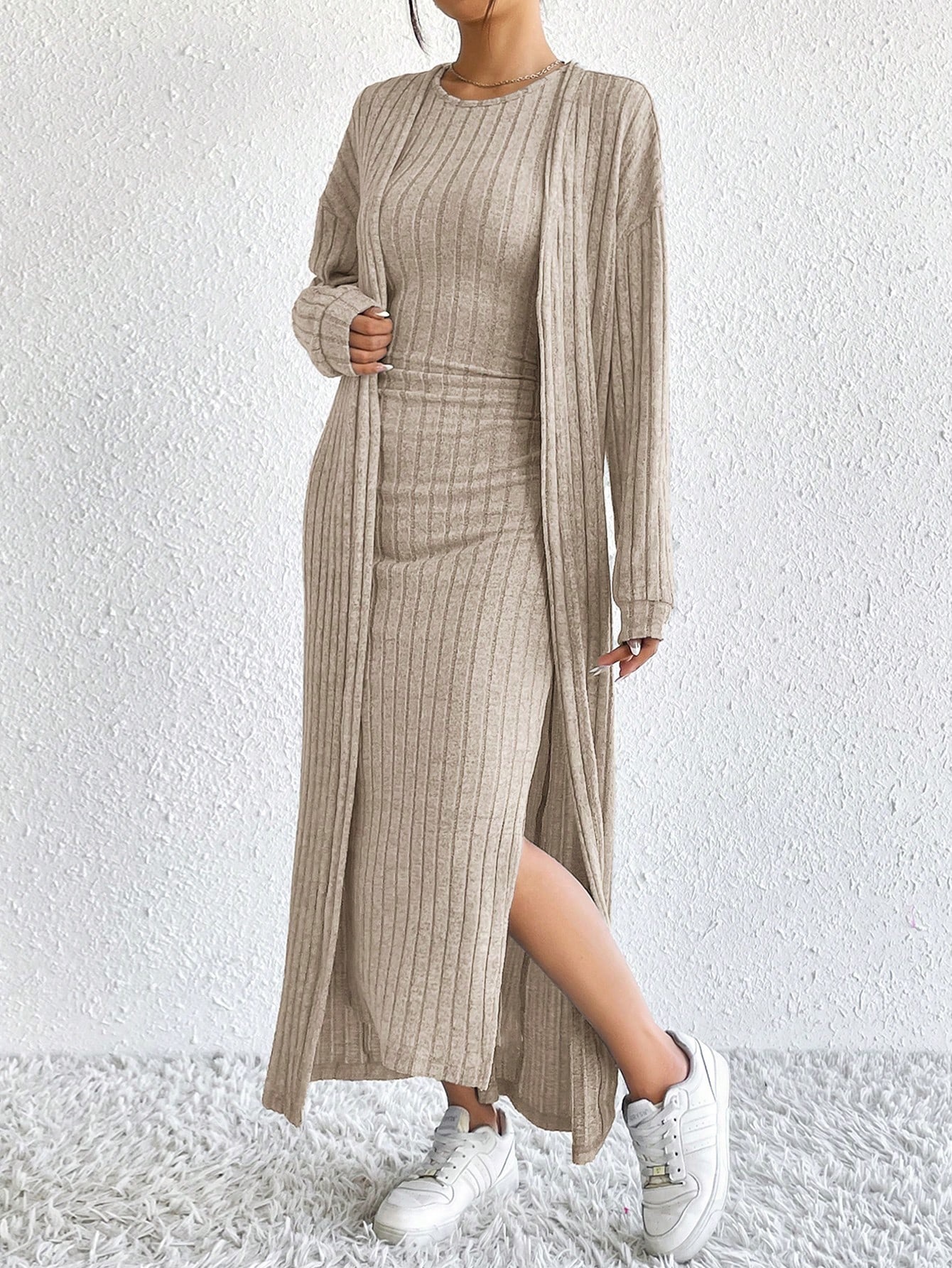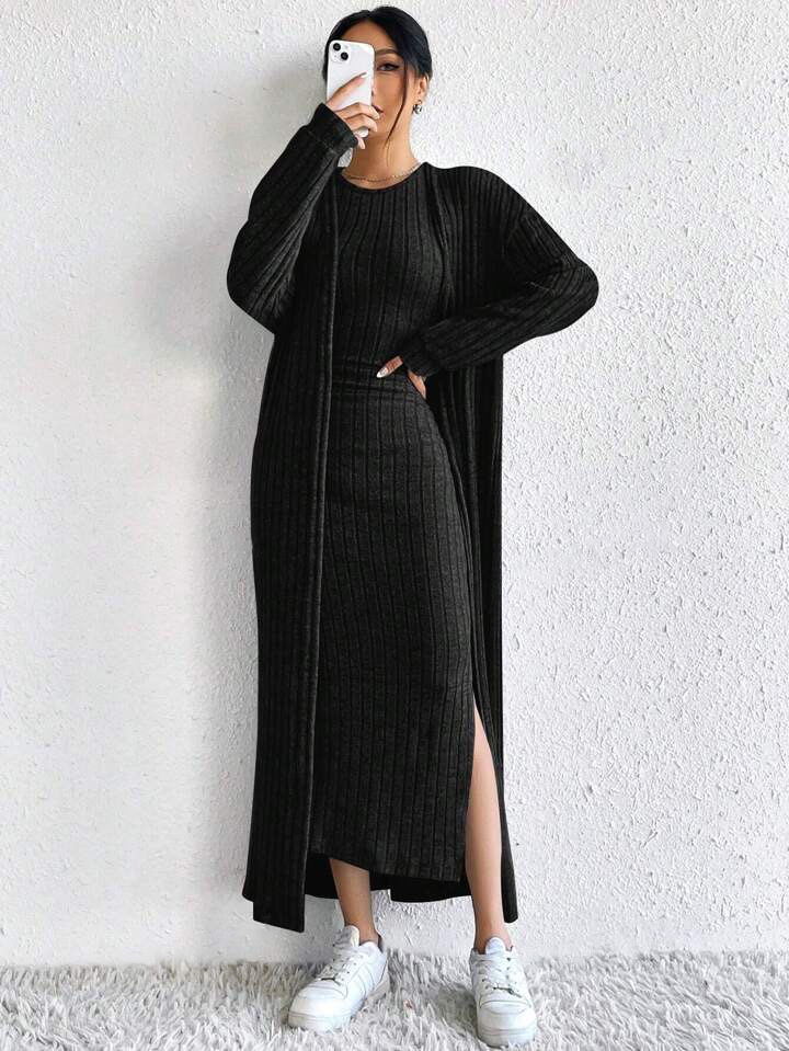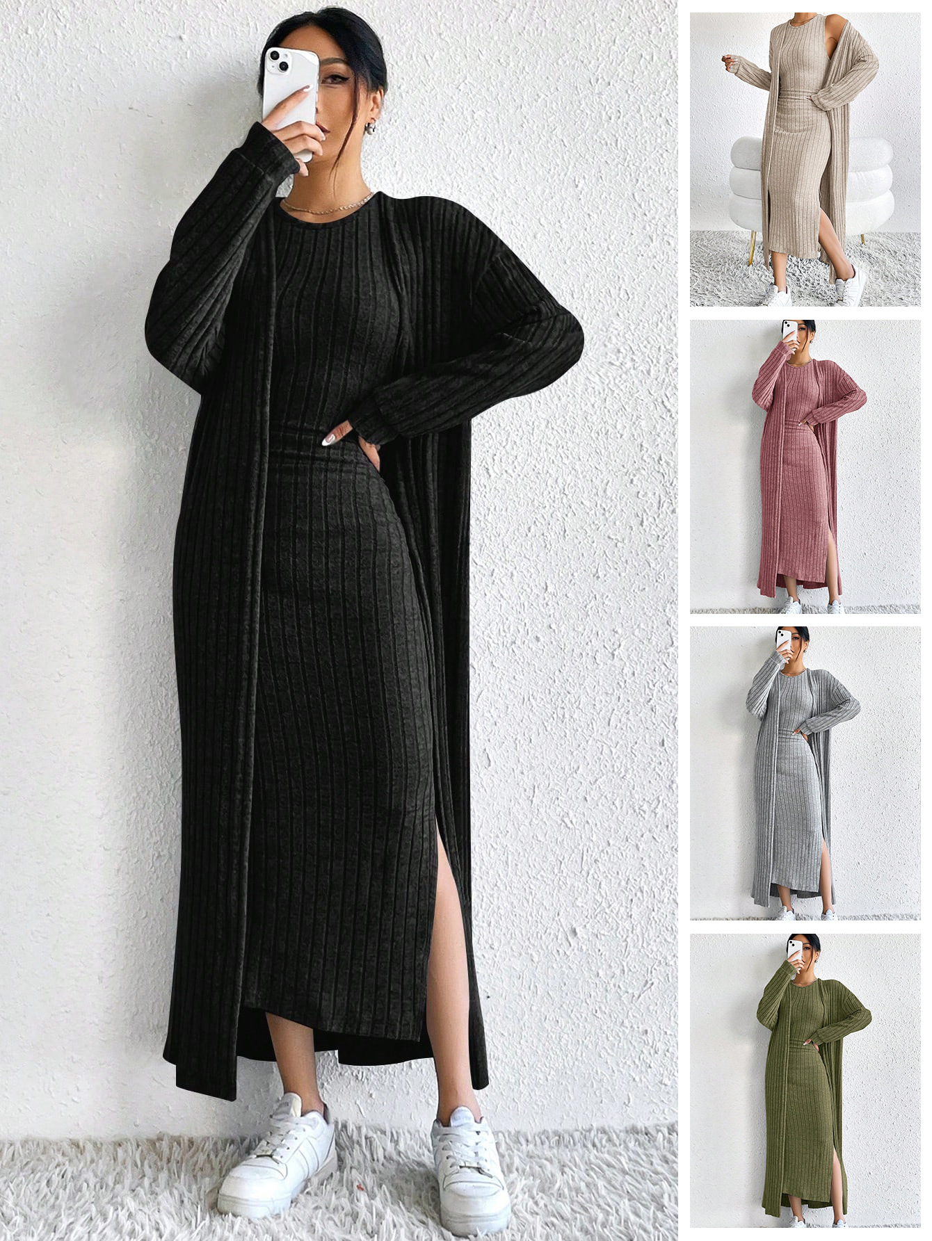 아마존 여성 의류 뜨거운 판매 유럽과 미국 여성의 가을 패션 조끼 원피스 긴 소매 긴 재킷 투피스 세트