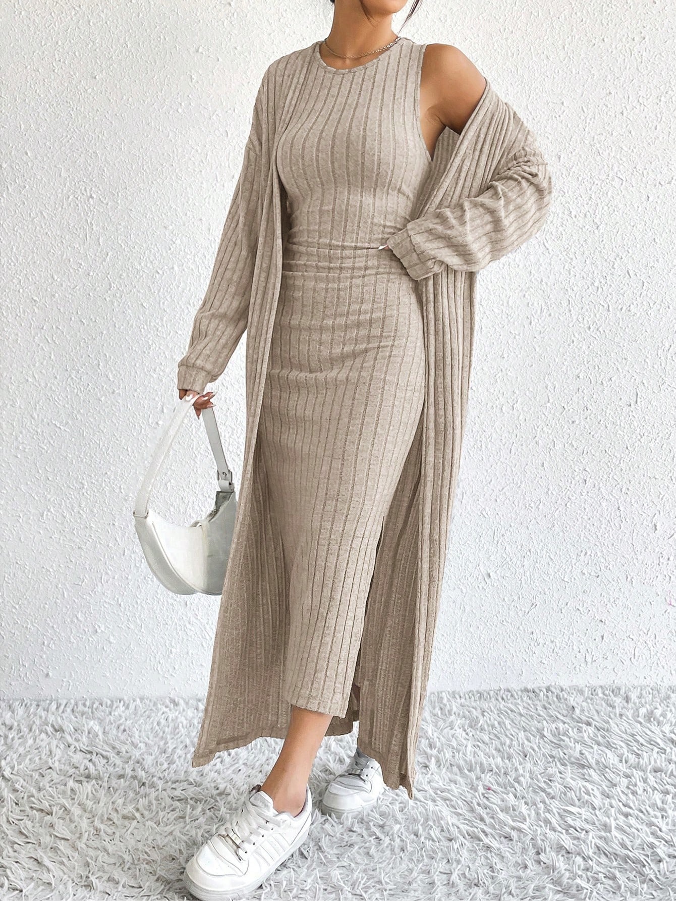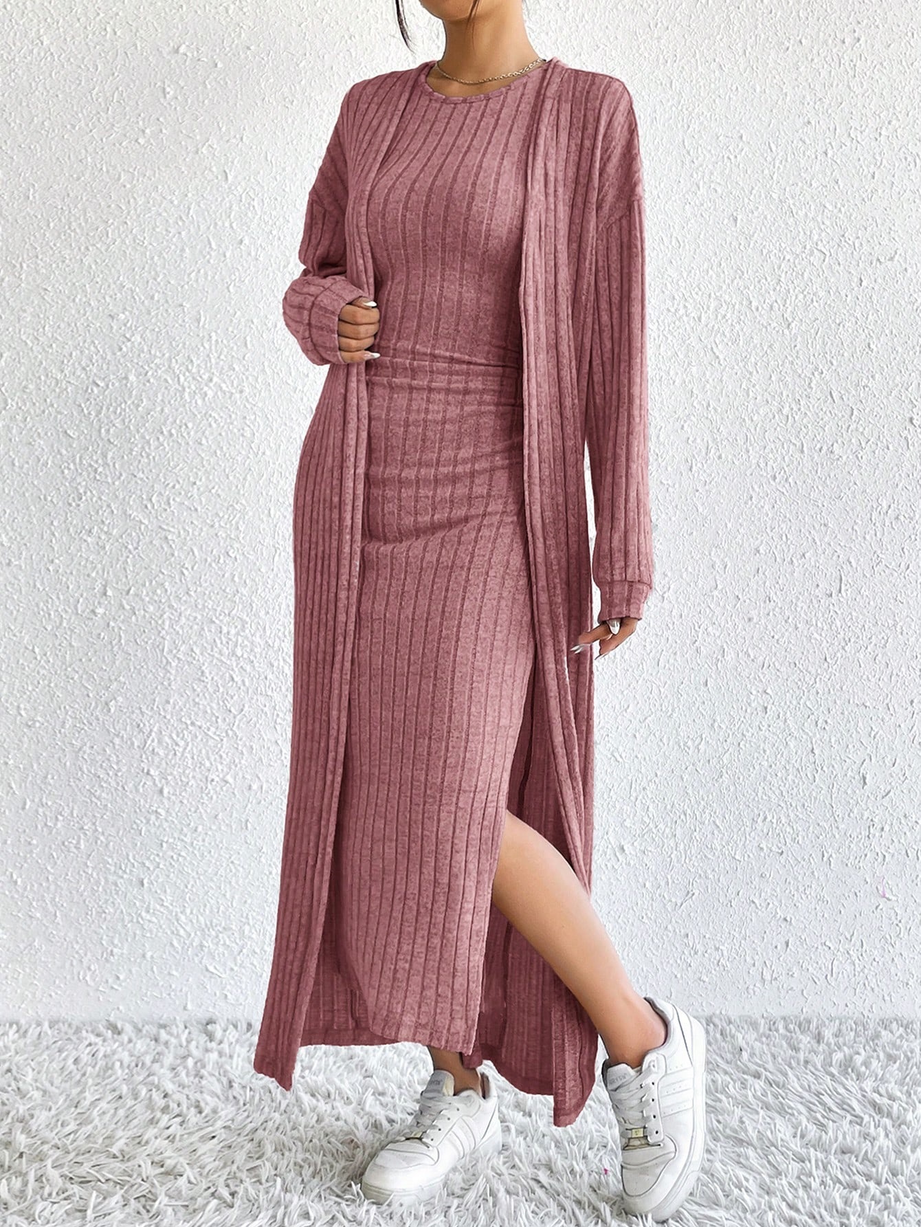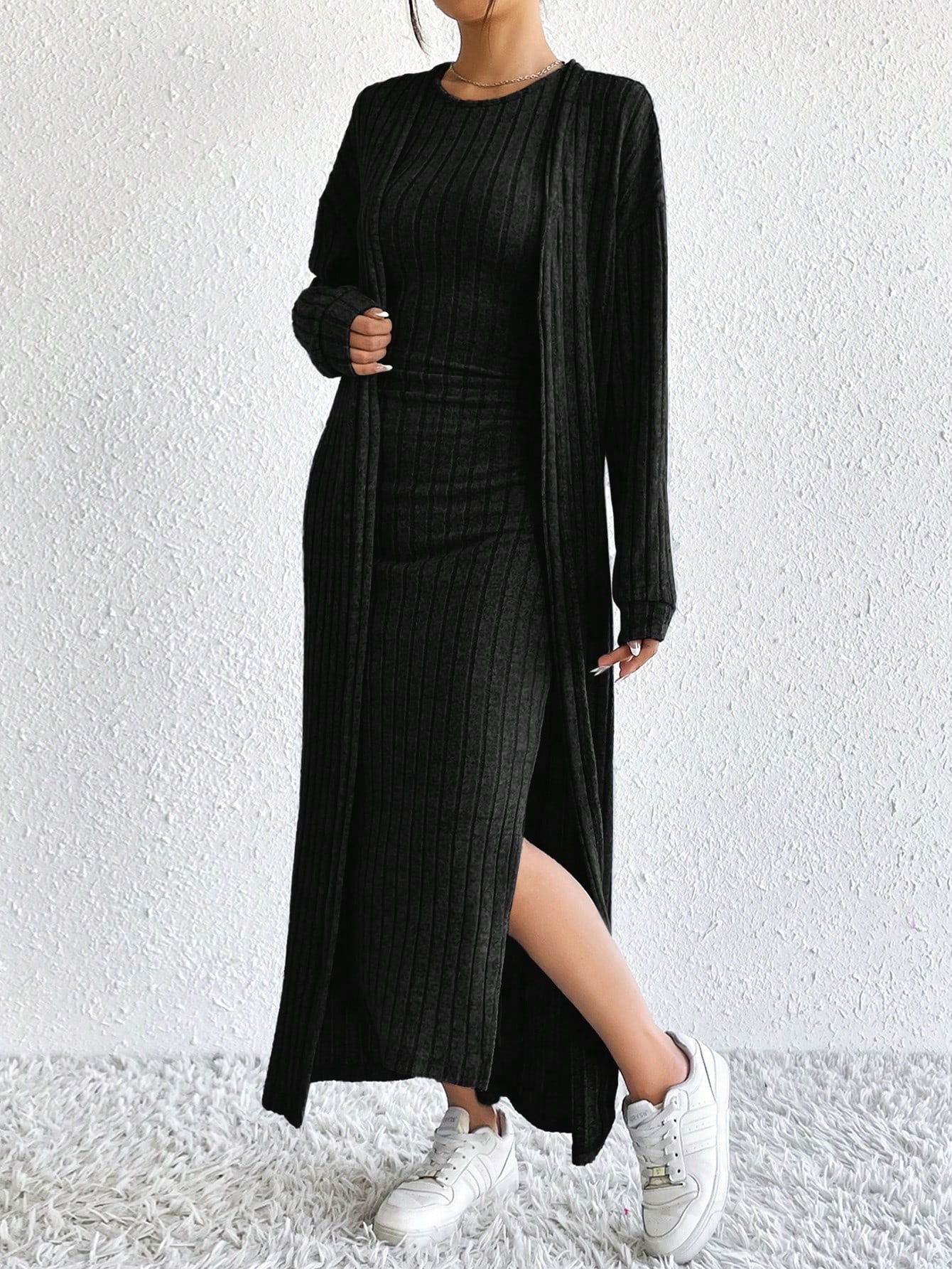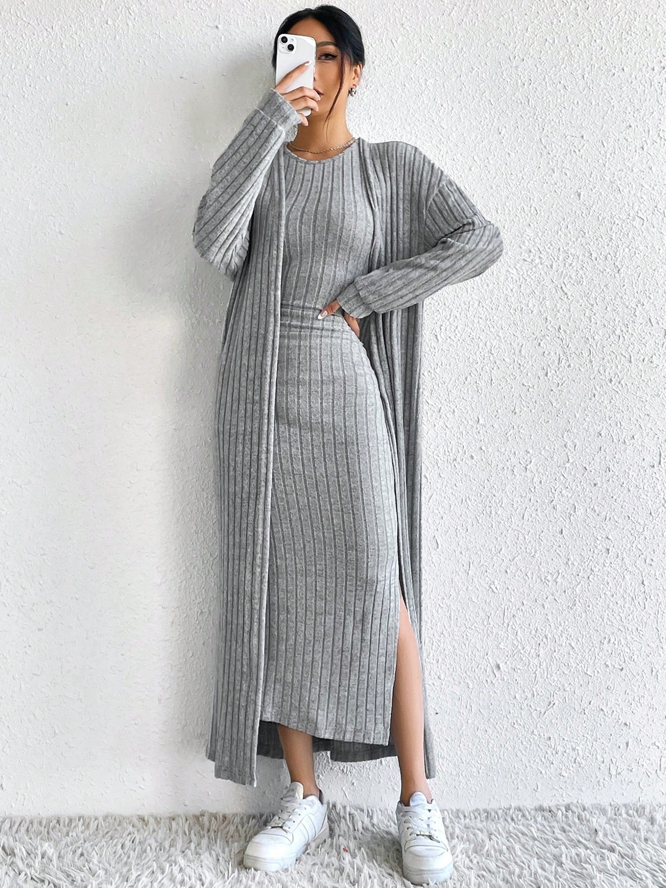 아마존 여성 의류 뜨거운 판매 유럽과 미국 여성의 가을 패션 조끼 원피스 긴 소매 긴 재킷 투피스 세트