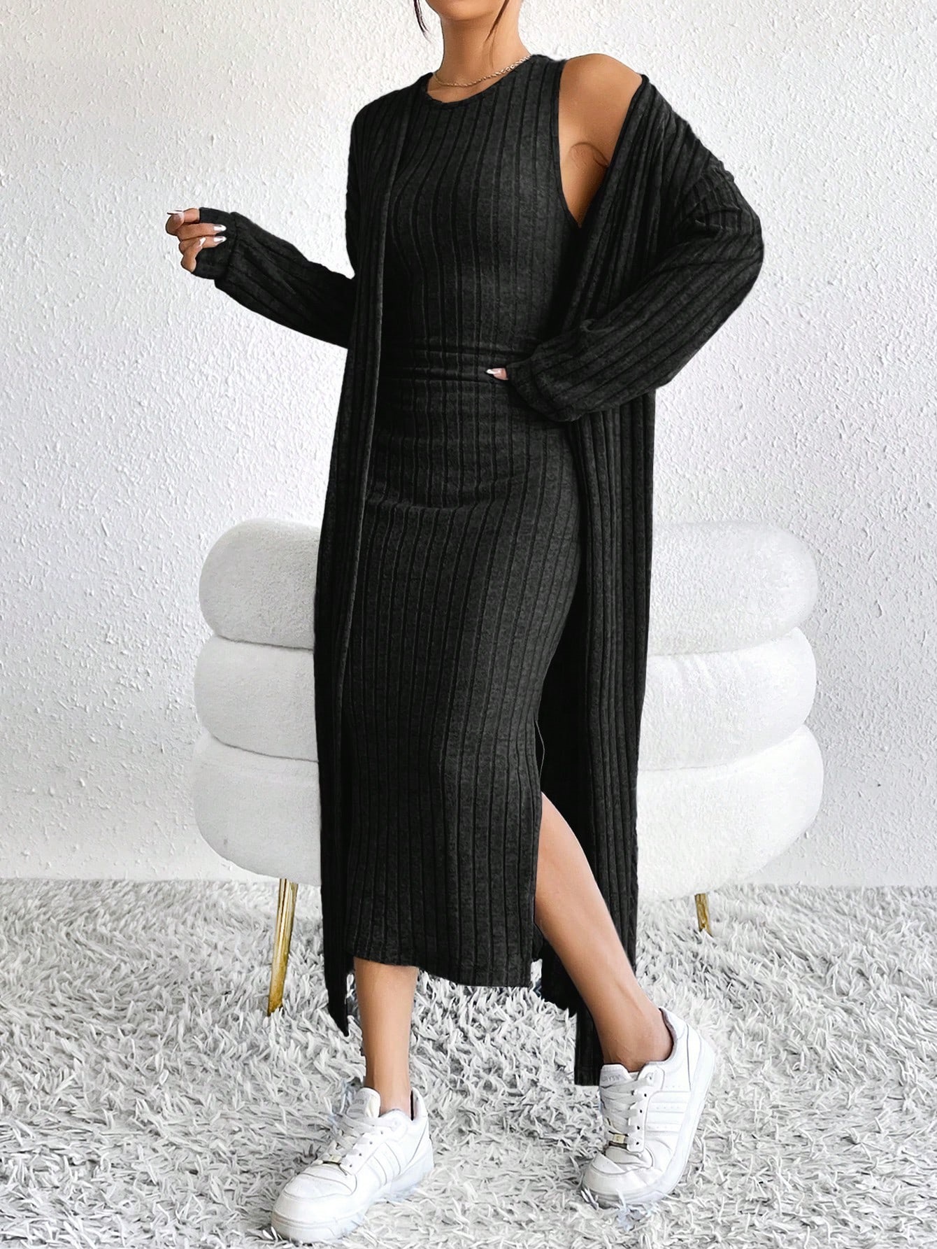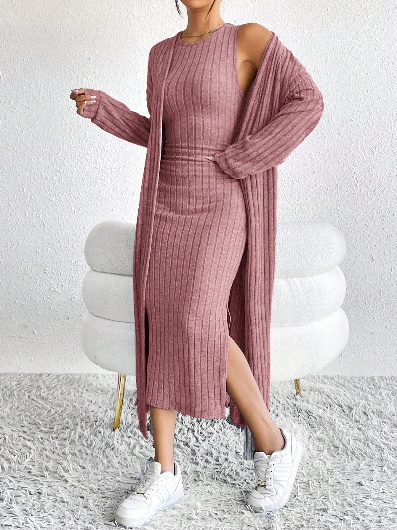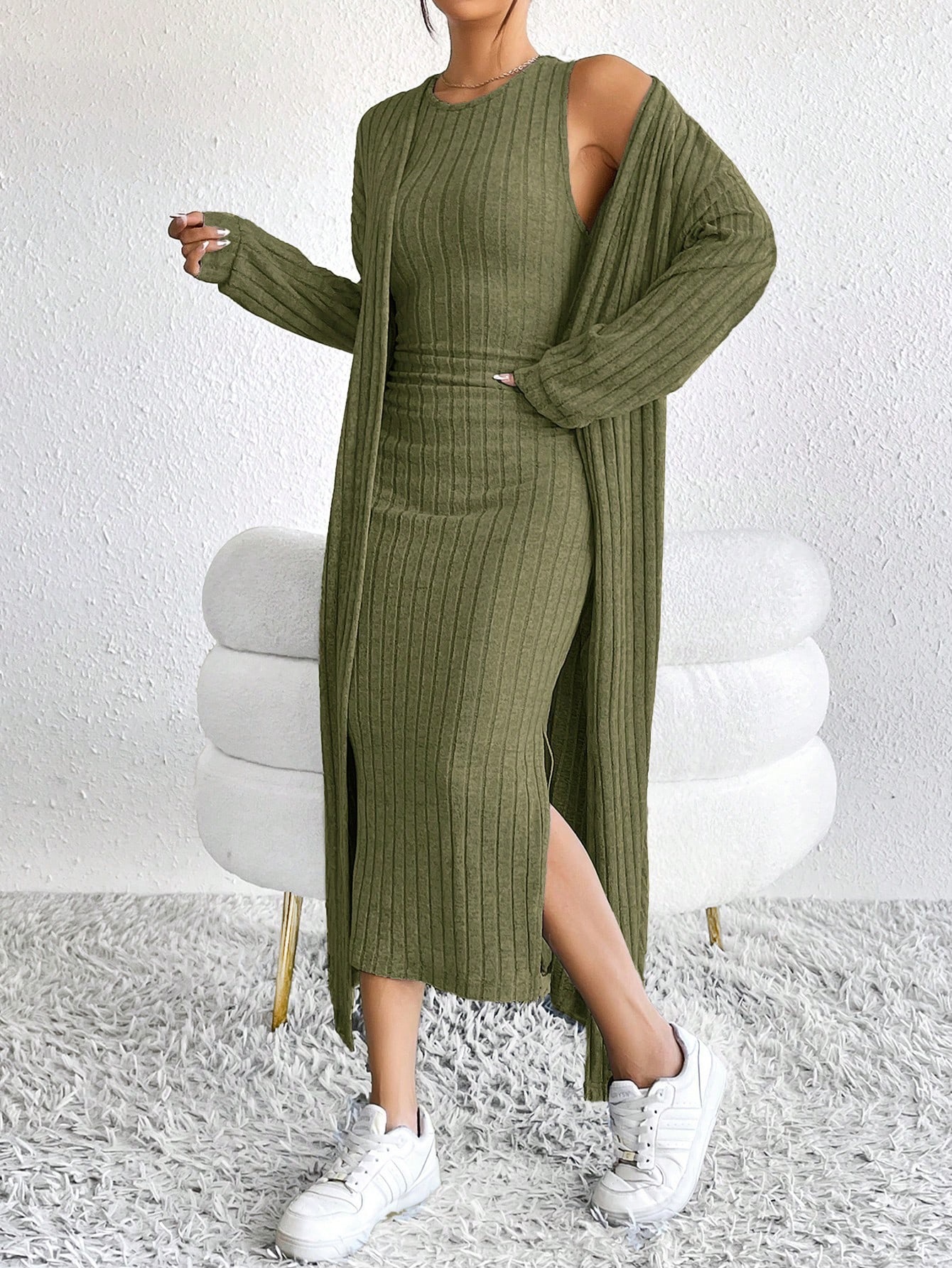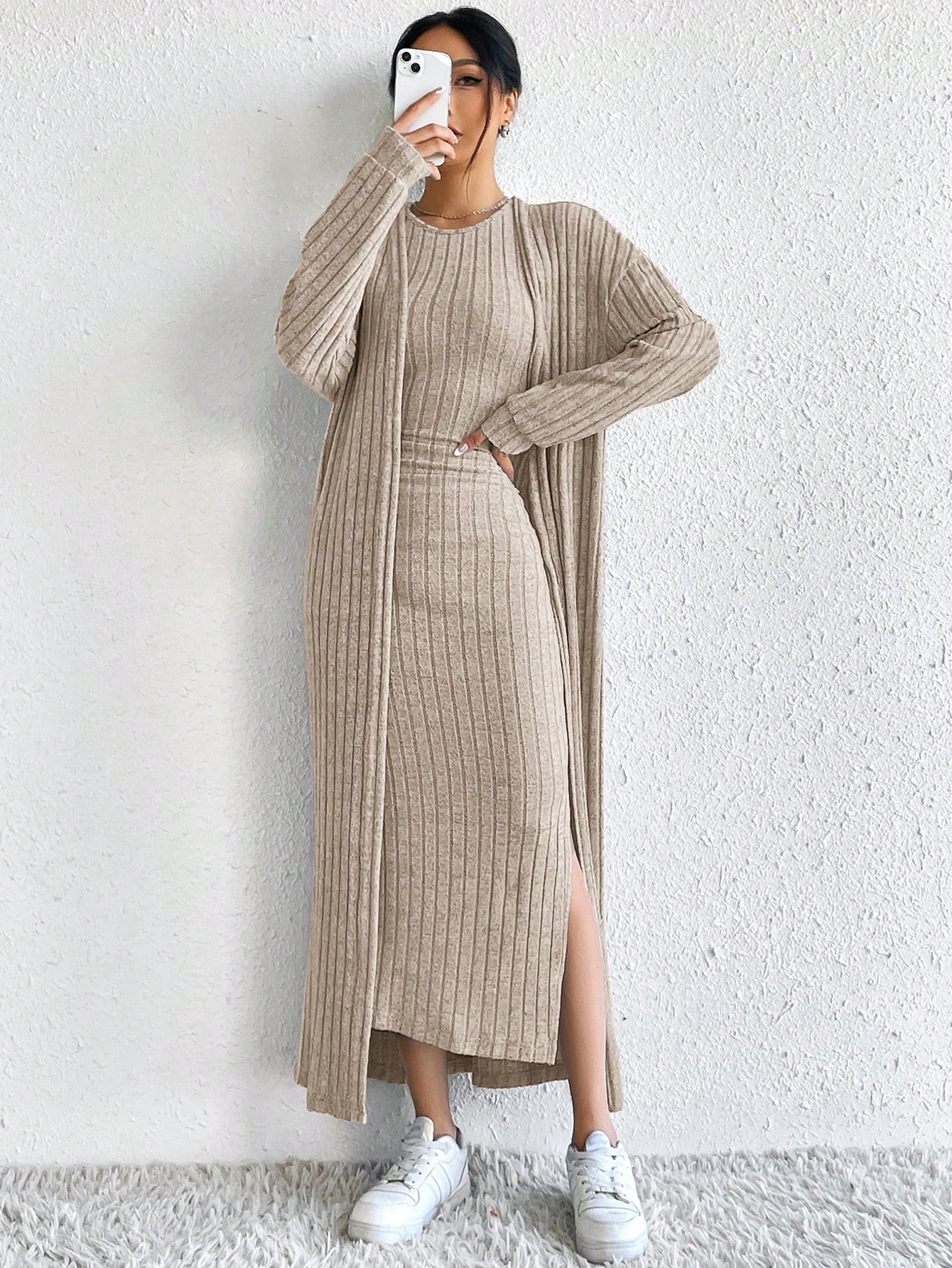아마존 여성 의류 뜨거운 판매 유럽과 미국 여성의 가을 패션 조끼 원피스 긴 소매 긴 재킷 투피스 세트