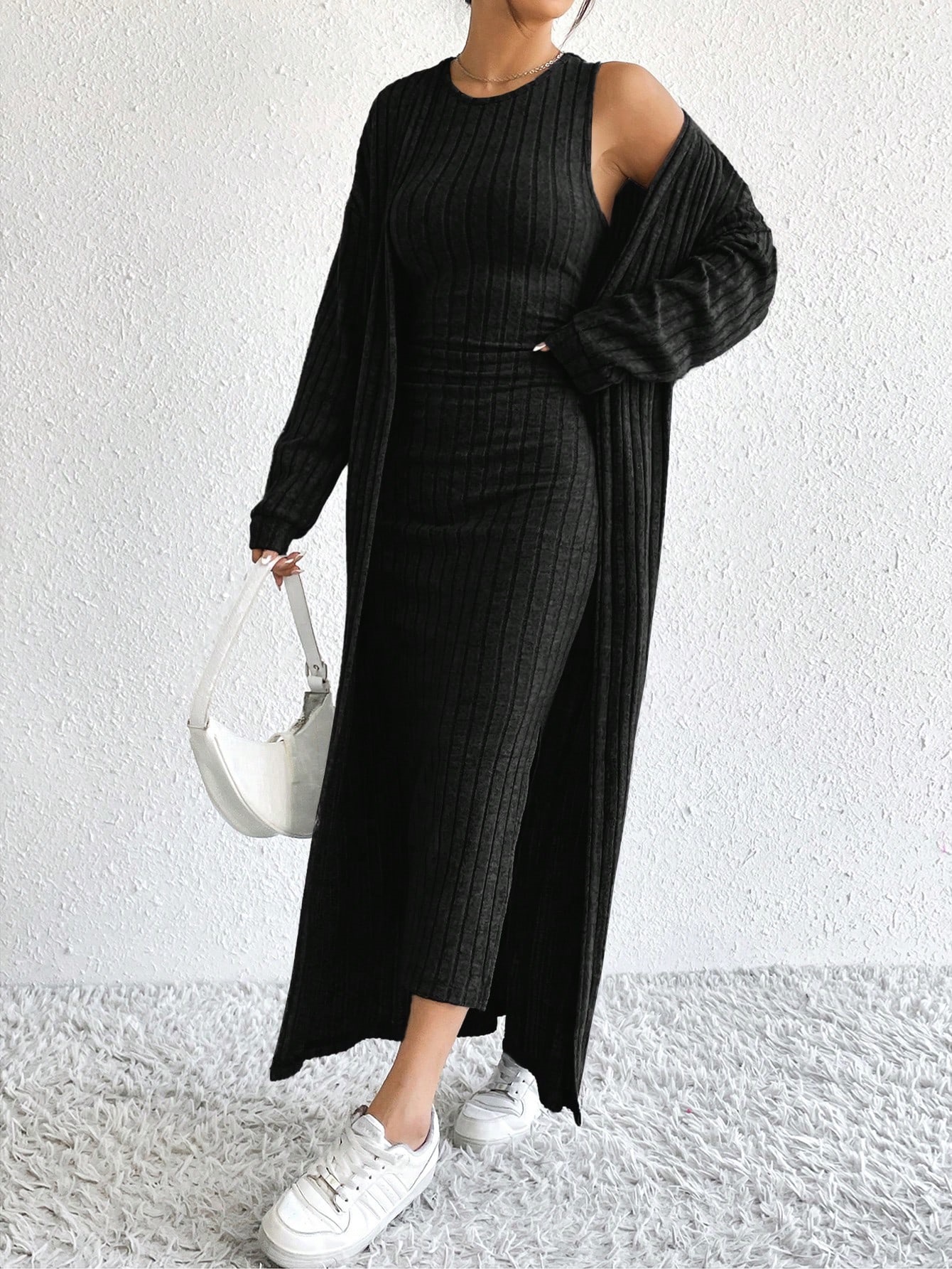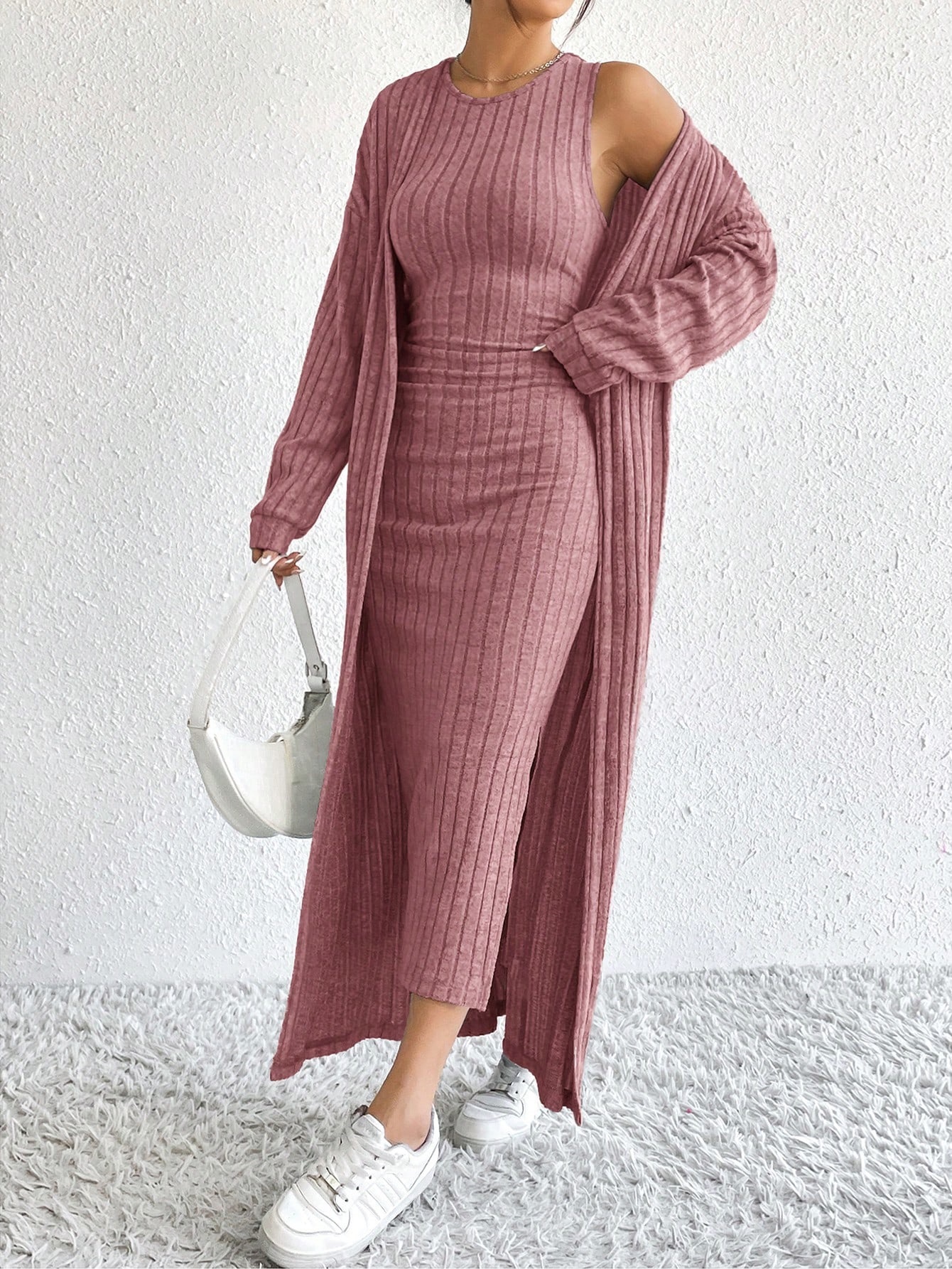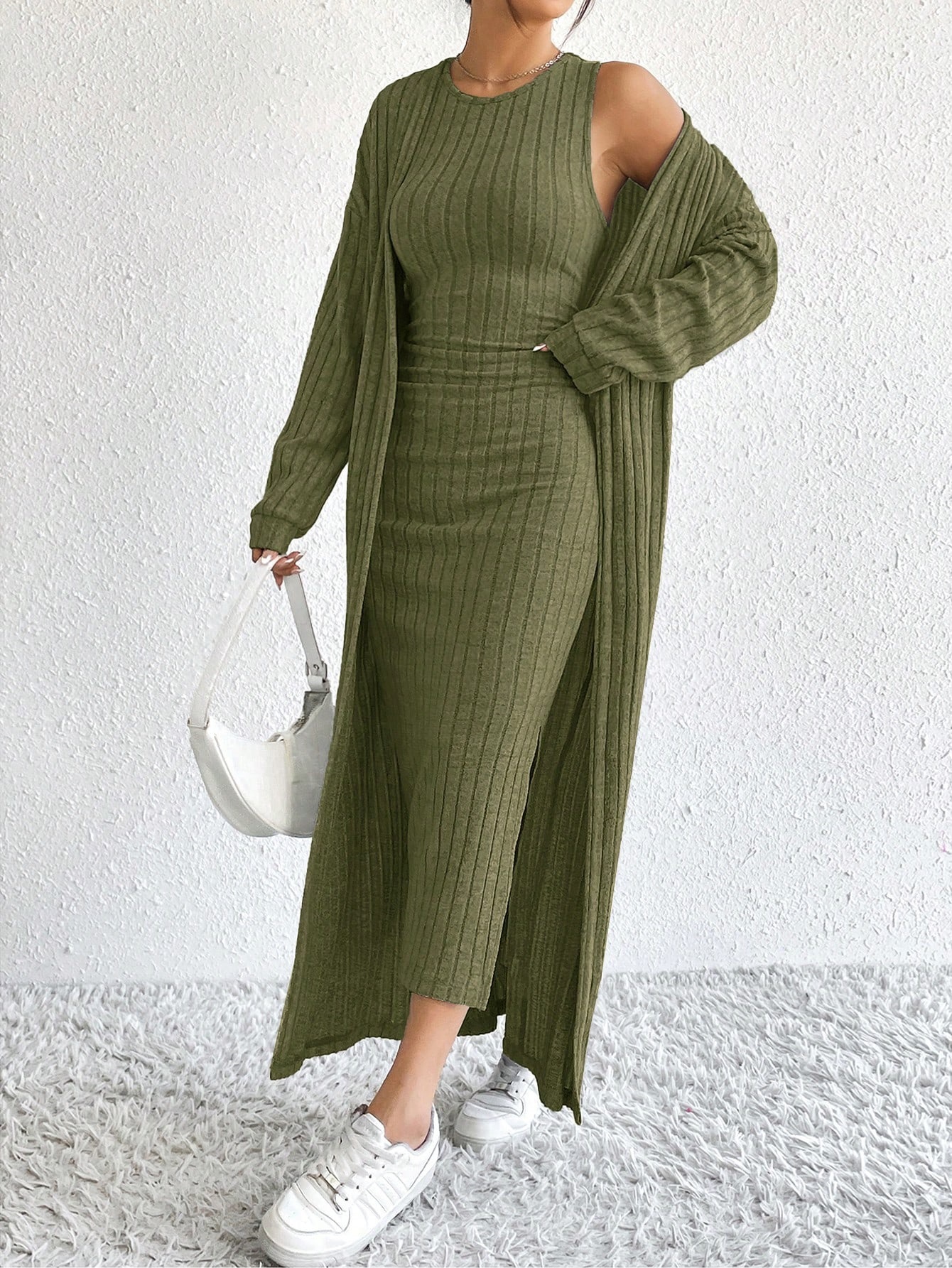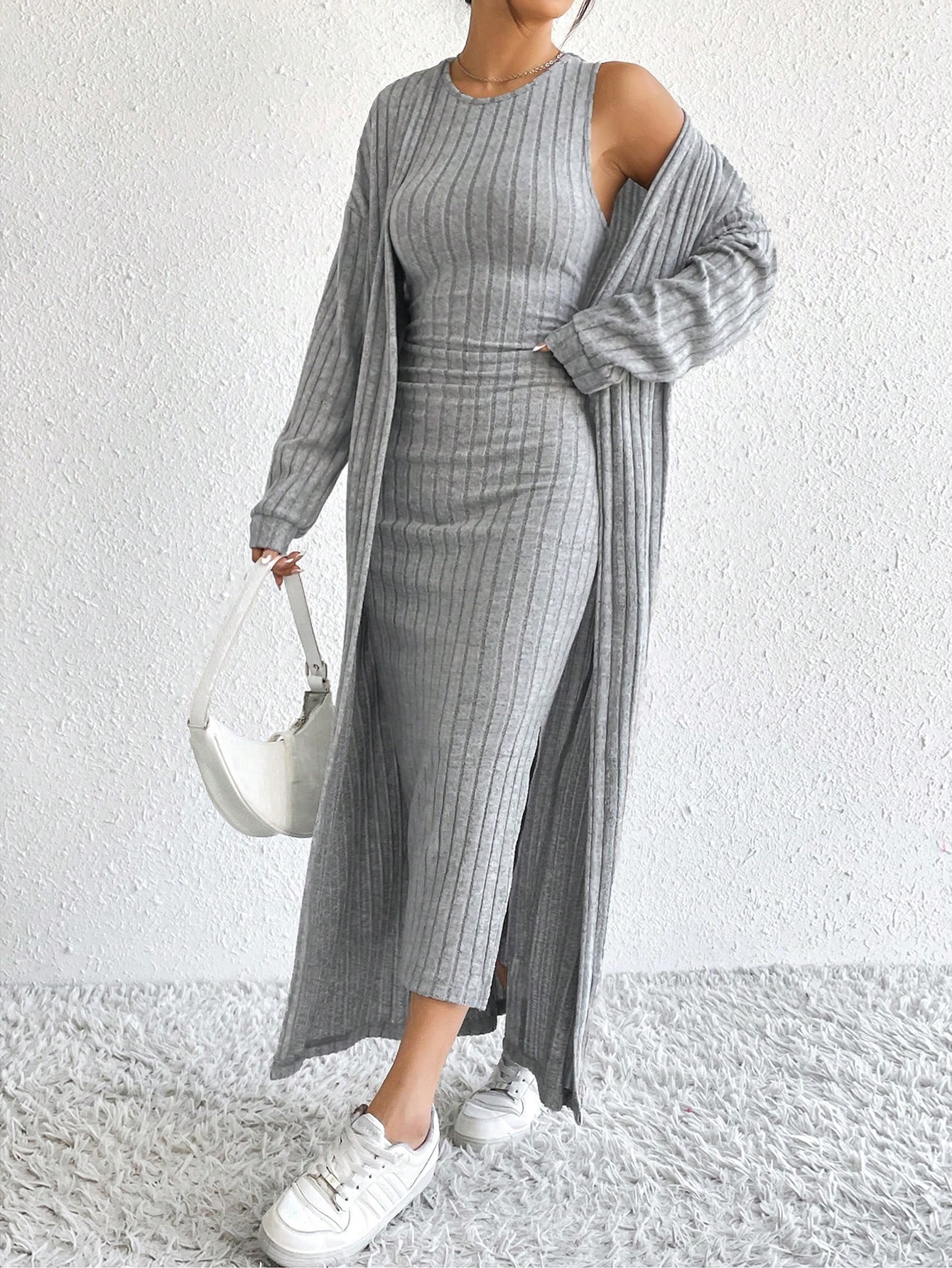 아마존 여성 의류 뜨거운 판매 유럽과 미국 여성의 가을 패션 조끼 원피스 긴 소매 긴 재킷 투피스 세트