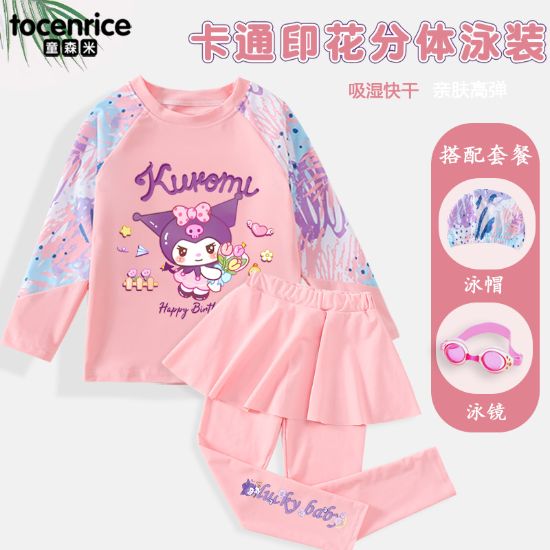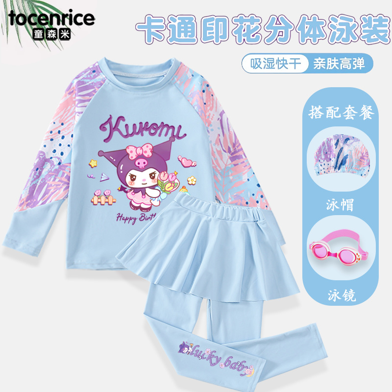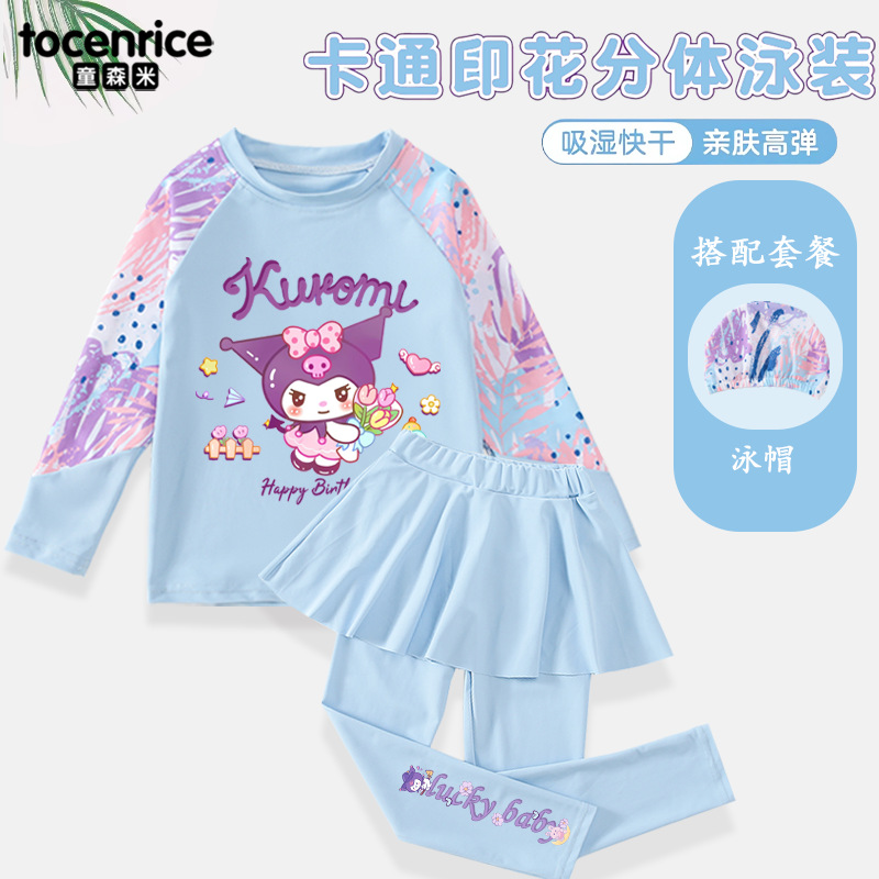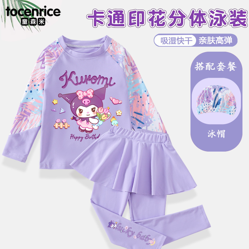 Kulomi Girls 수영복 긴팔 바지 분할 스커트 투피스 세트 온천을위한 빠른 건조 선 스크린 수영복