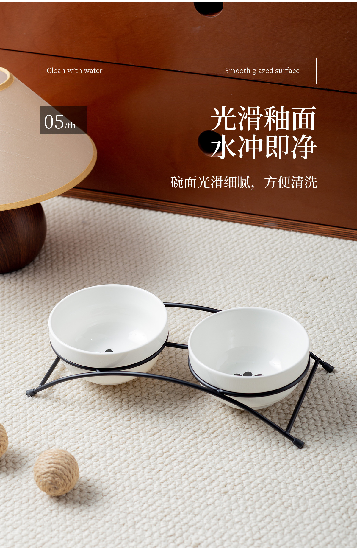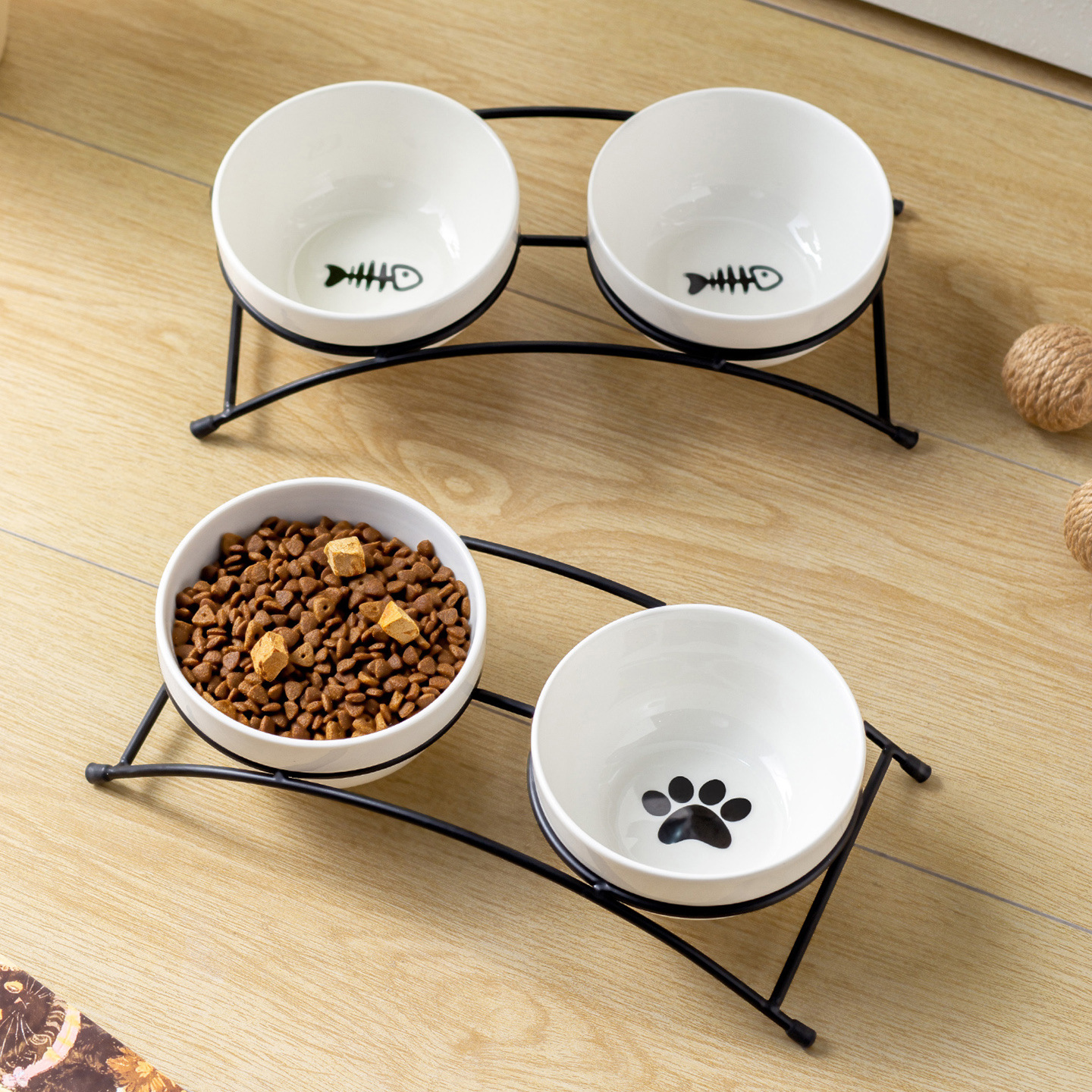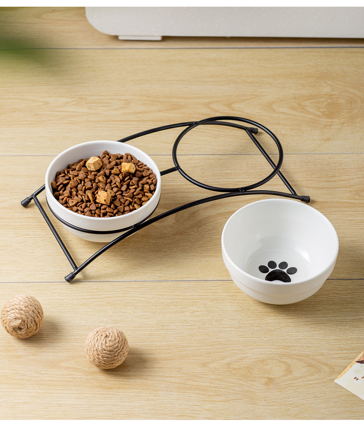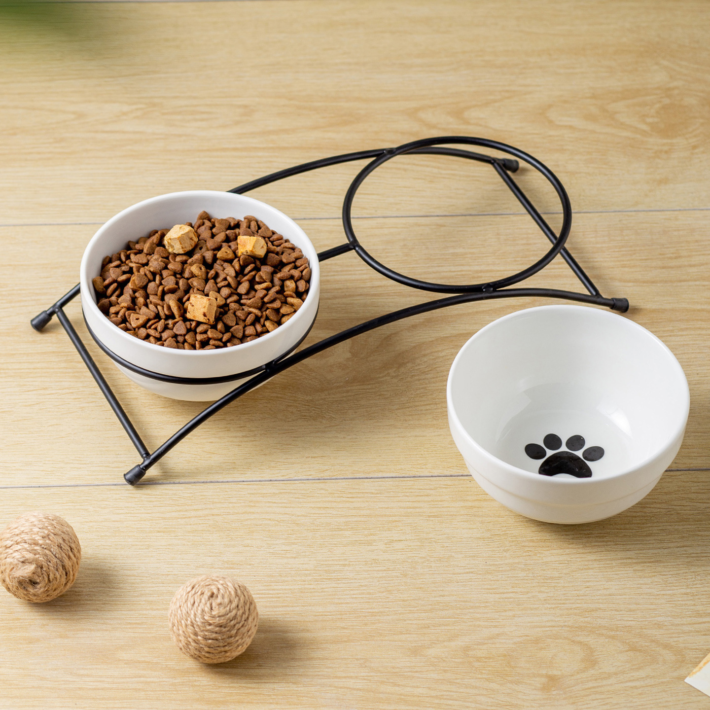철 프레임 고양이와 개 공급 그릇이있는 간단한 단색 애완 동물 그릇 세라믹 그릇 더블 그릇 고양이 그릇 개 그릇 고양이 먹이 개 분지