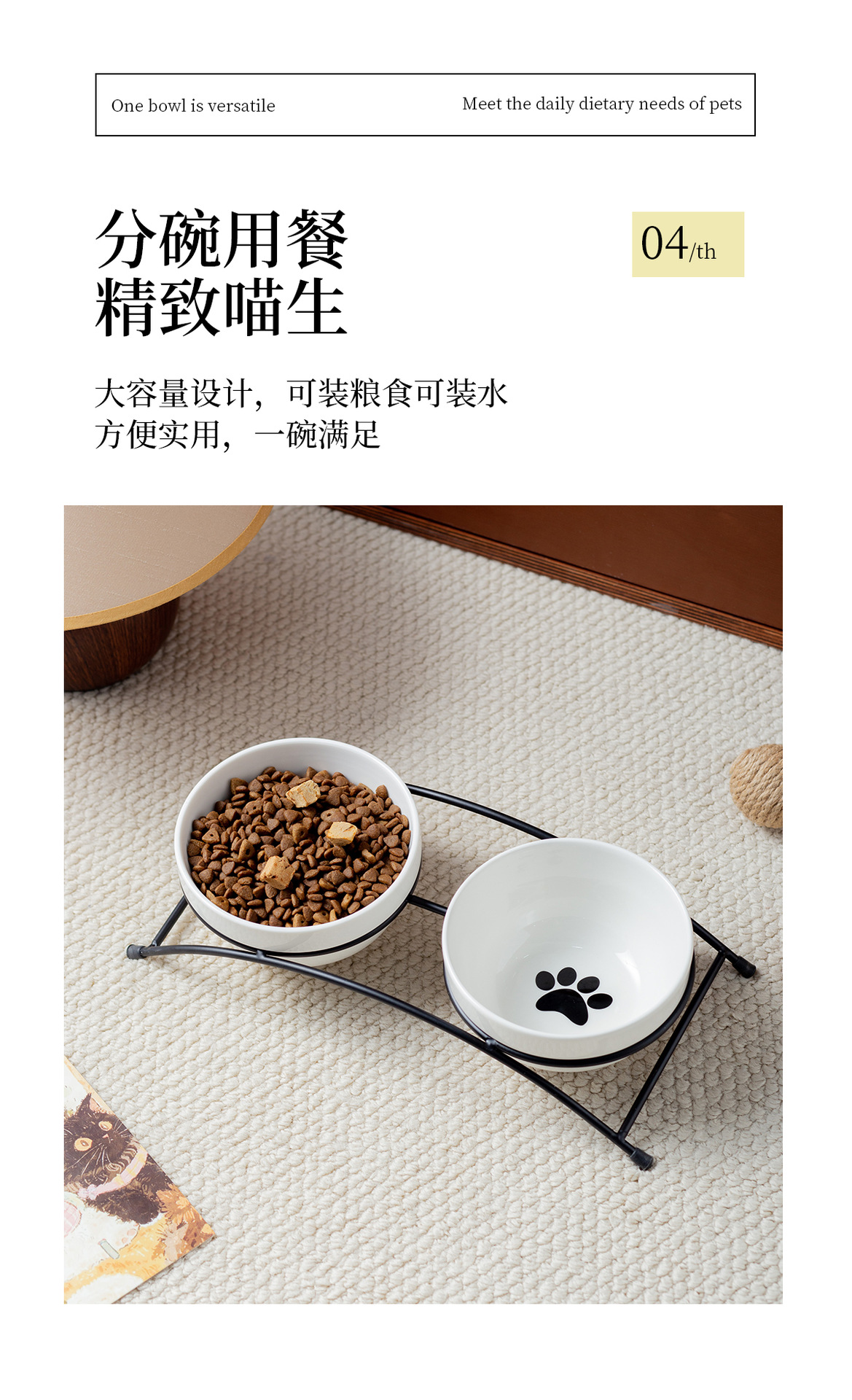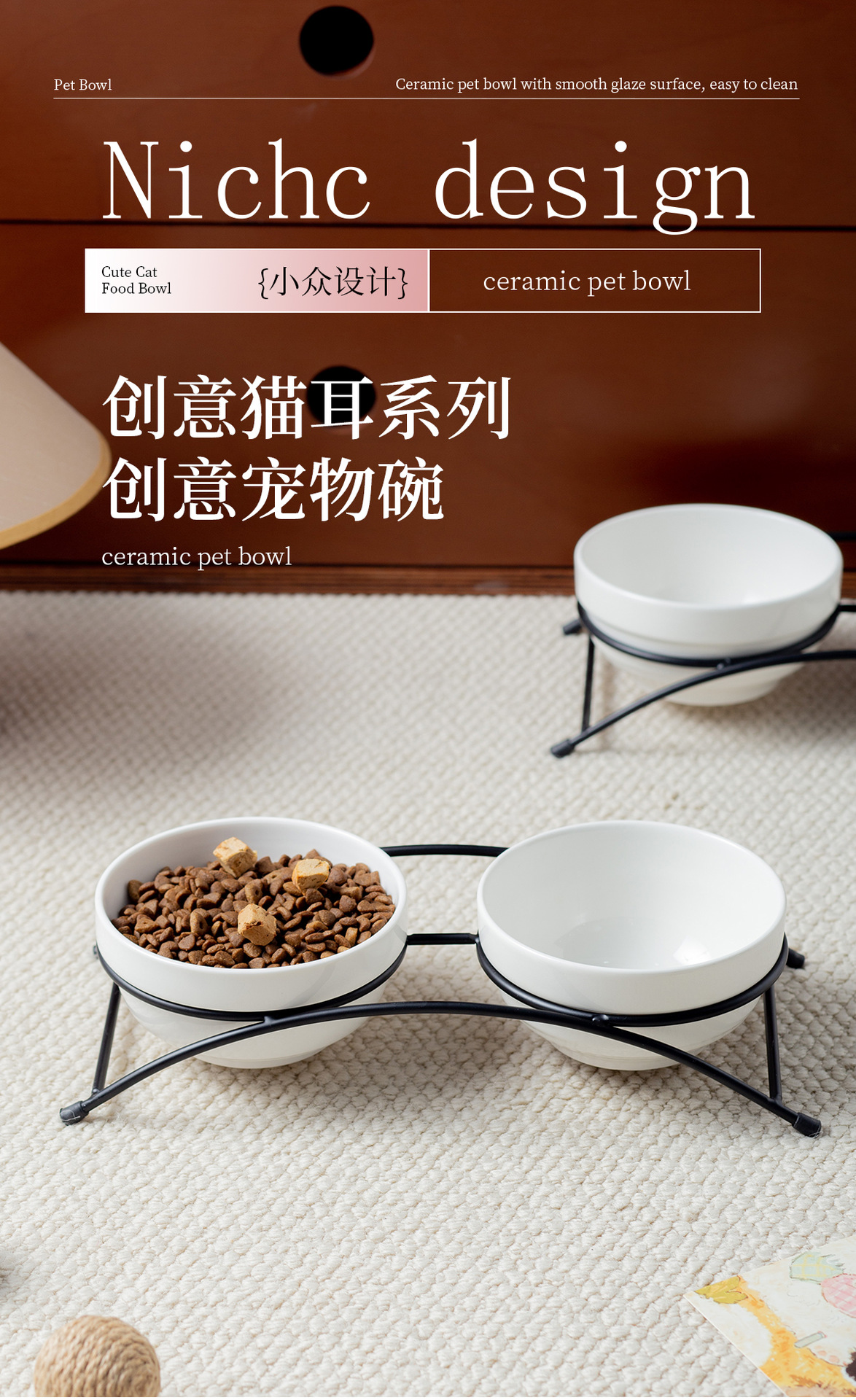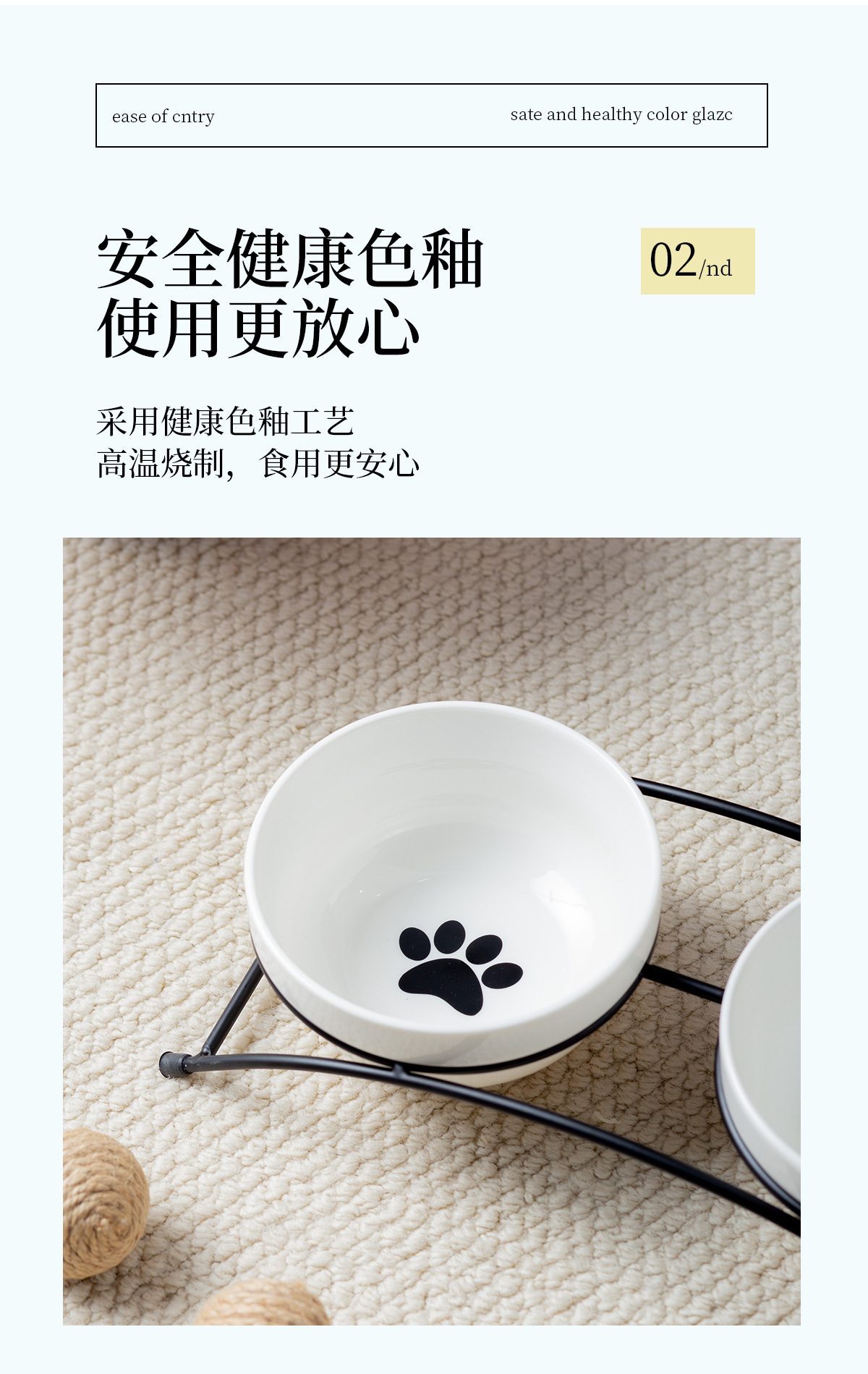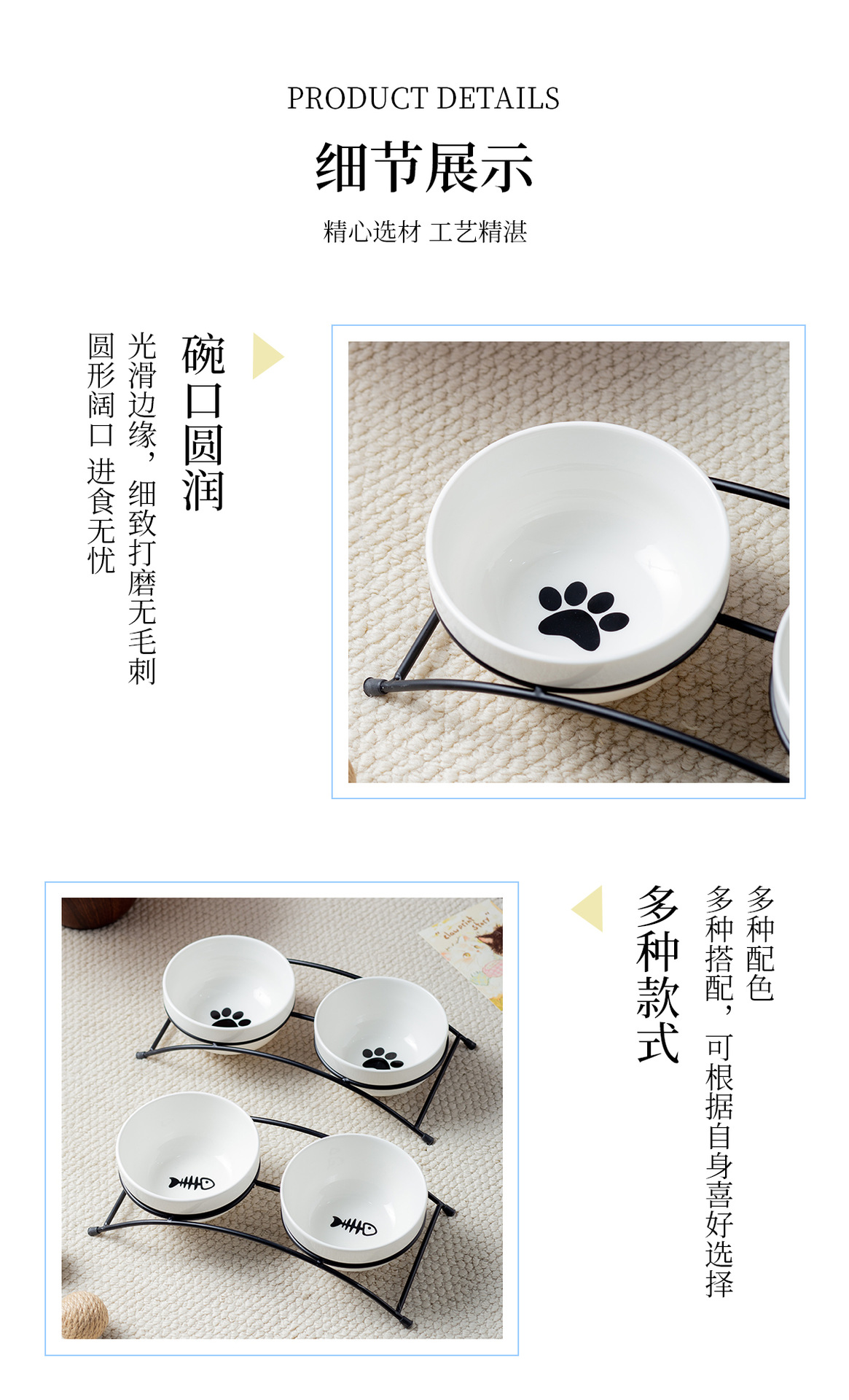 철 프레임 고양이와 개 공급 그릇이있는 간단한 단색 애완 동물 그릇 세라믹 그릇 더블 그릇 고양이 그릇 개 그릇 고양이 먹이 개 분지