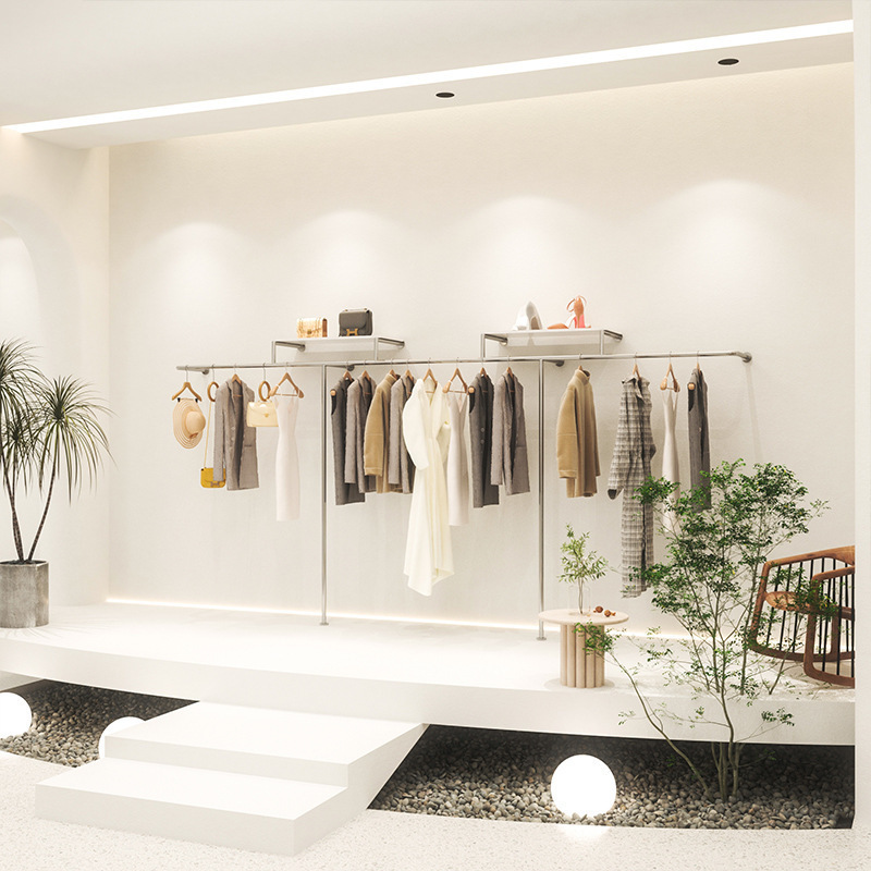 여성 의류 매장 벽 플레이트 의류 레일 스테인레스 스틸 선반 바닥 걸이 디스플레이 선반 의류 매장 디스플레이 랙