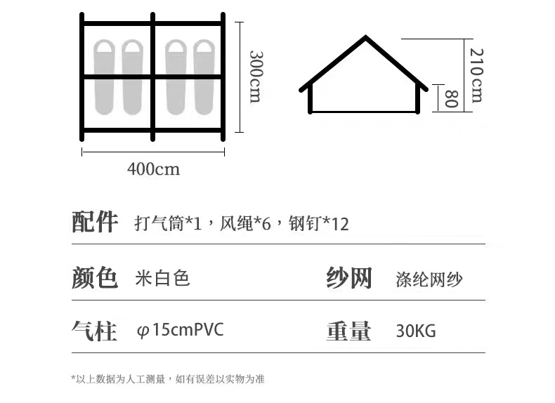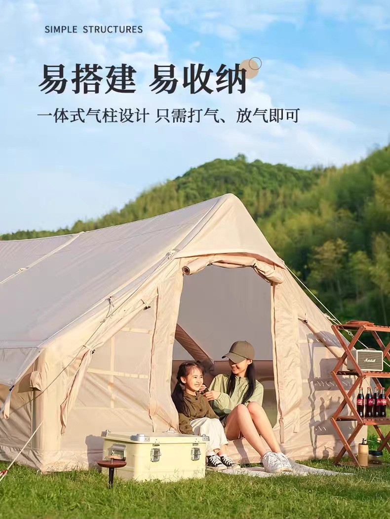 야외용 에어 텐트 12평 옥스포드 천 캠핑 텐트, 자외선 차단 및 방풍 기능, 사계절용, 가족 캠핑, 설치 불필요 텐트