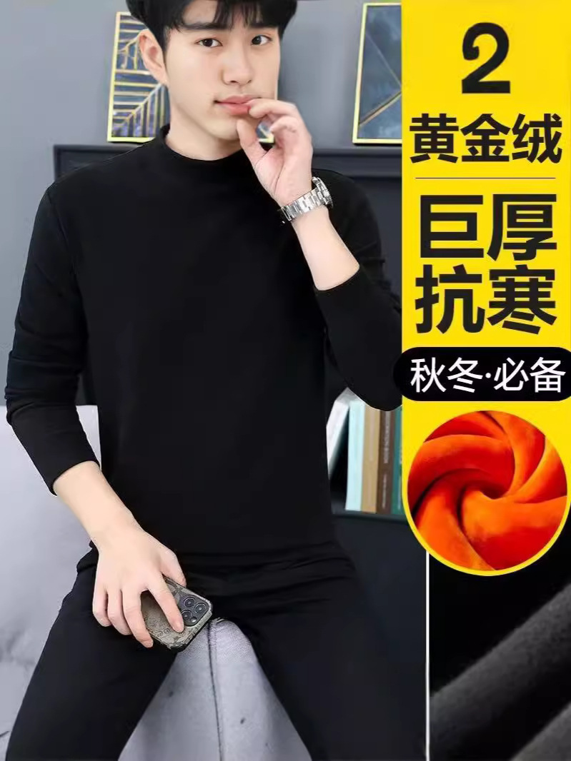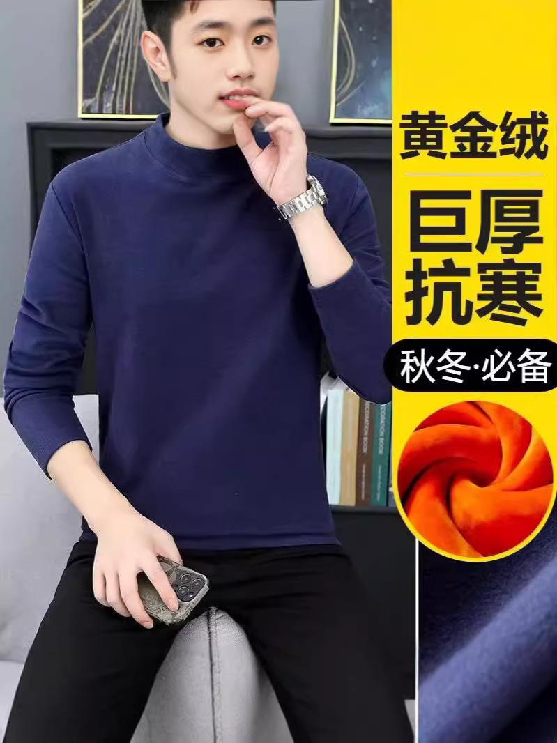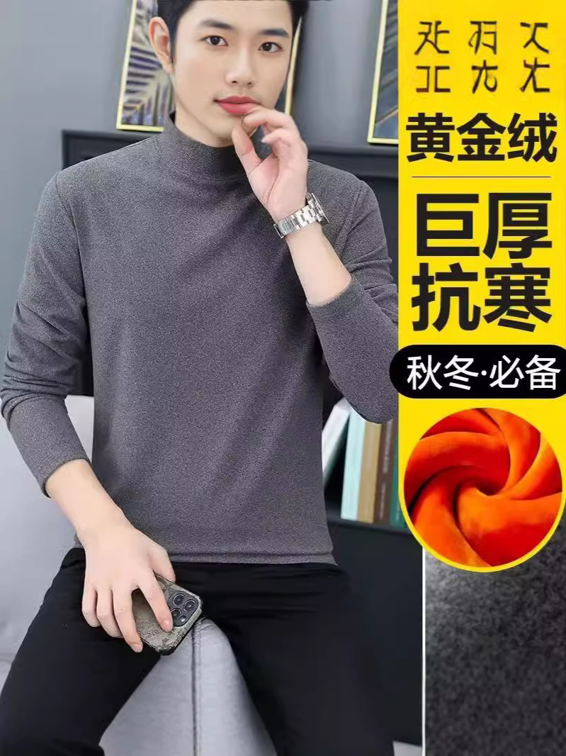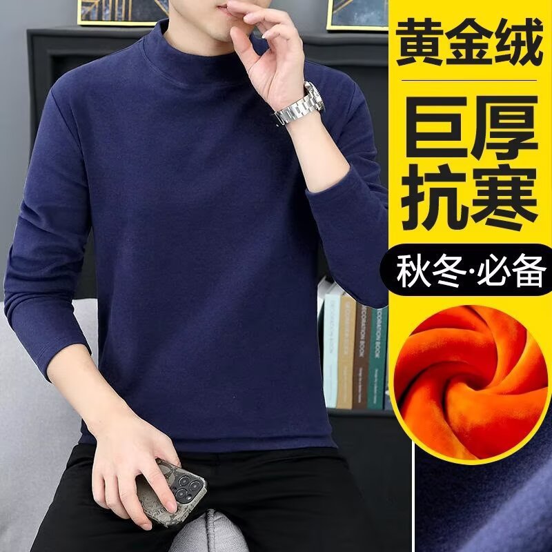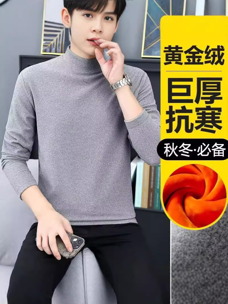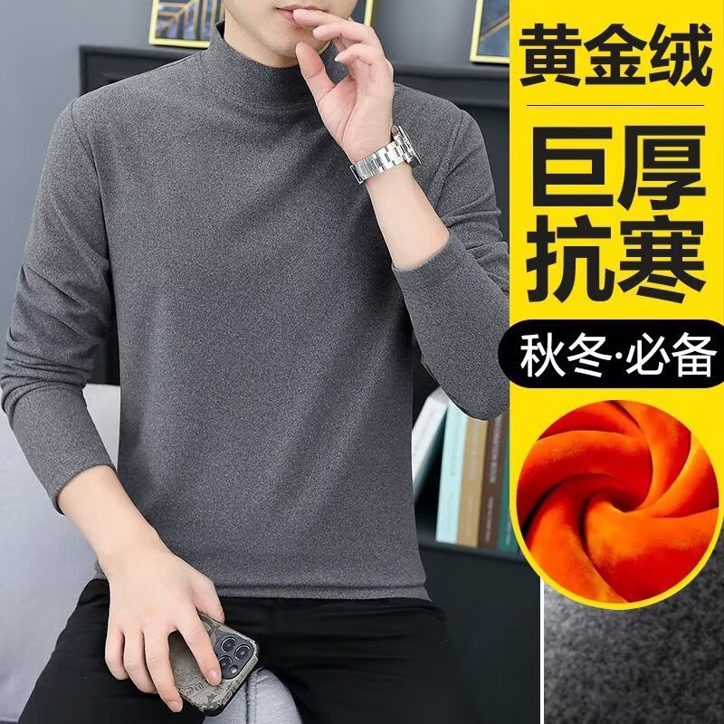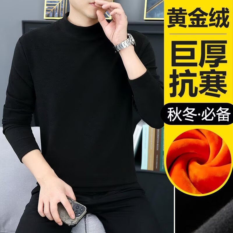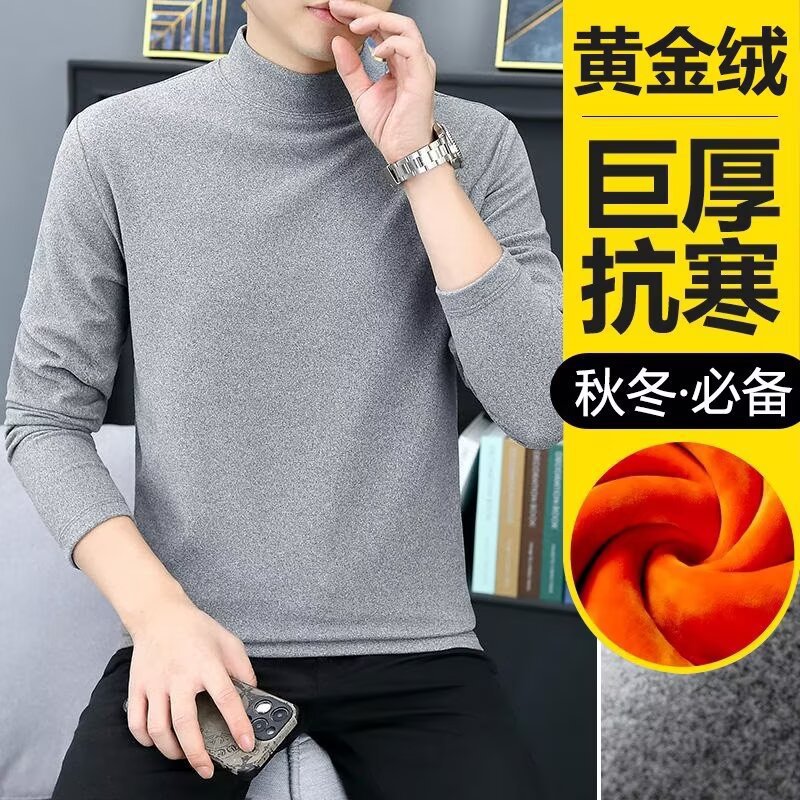 셀프 가열 양털 모의 칼라 티셔츠 남성용 긴팔 가을과 겨울 기모 두꺼운 베이스 셔츠 탑 따뜻한 내부