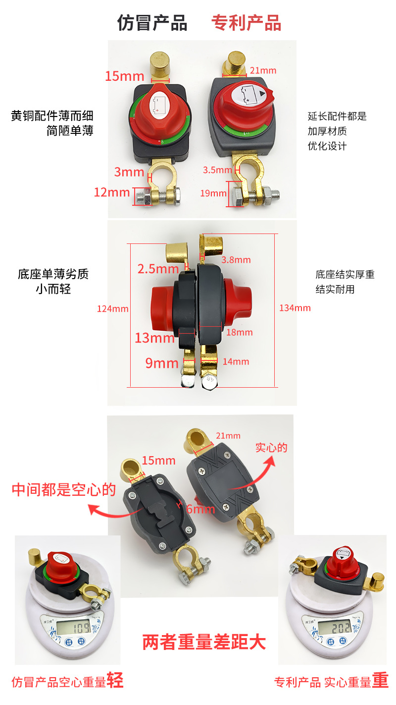 새로운 황동 배터리 극 전원 오프 결합 된 스위치 자동차 수정 확장 액세서리 높은 전류 전원 스위치
