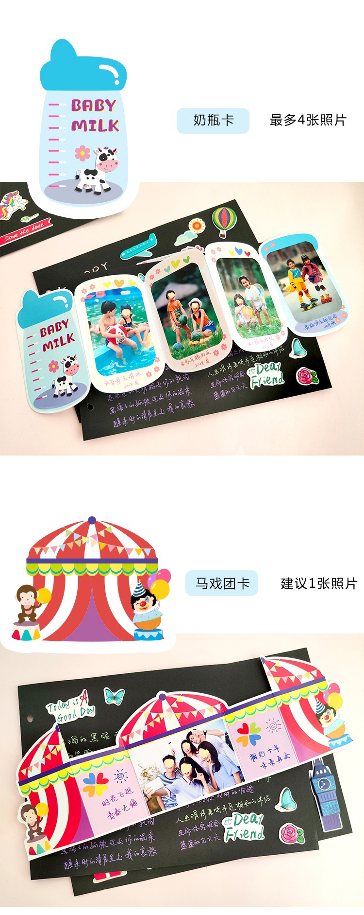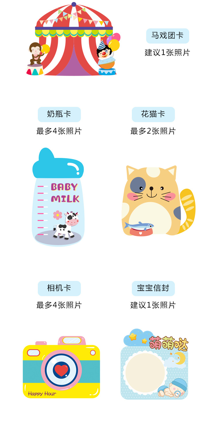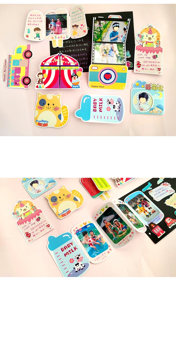 3 차원 재미있는 카드 유치원 성장 매뉴얼 어린이 아기 사진 앨범 장식 재료의 8 조각 세트