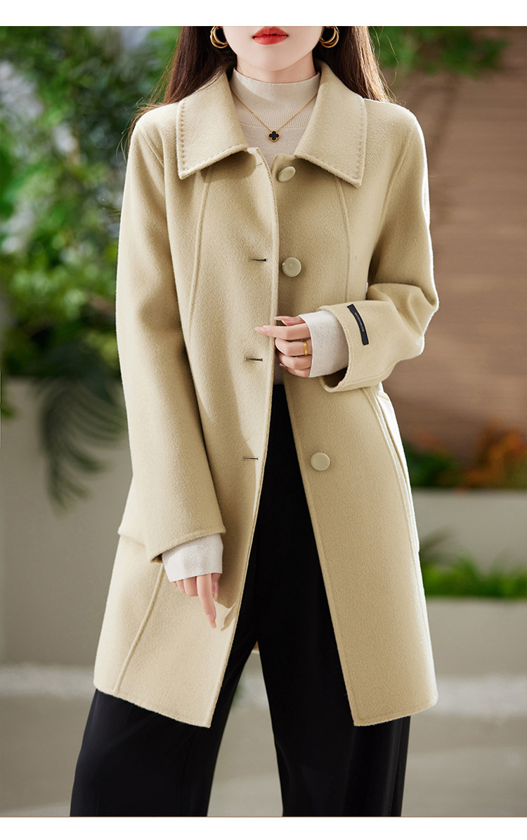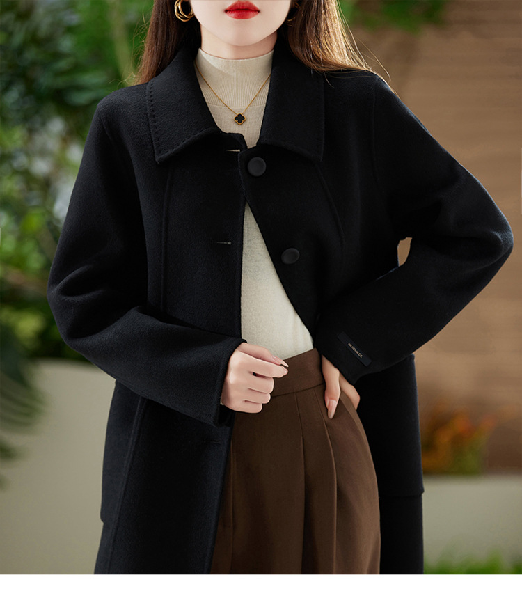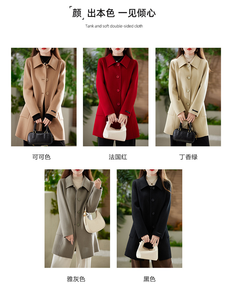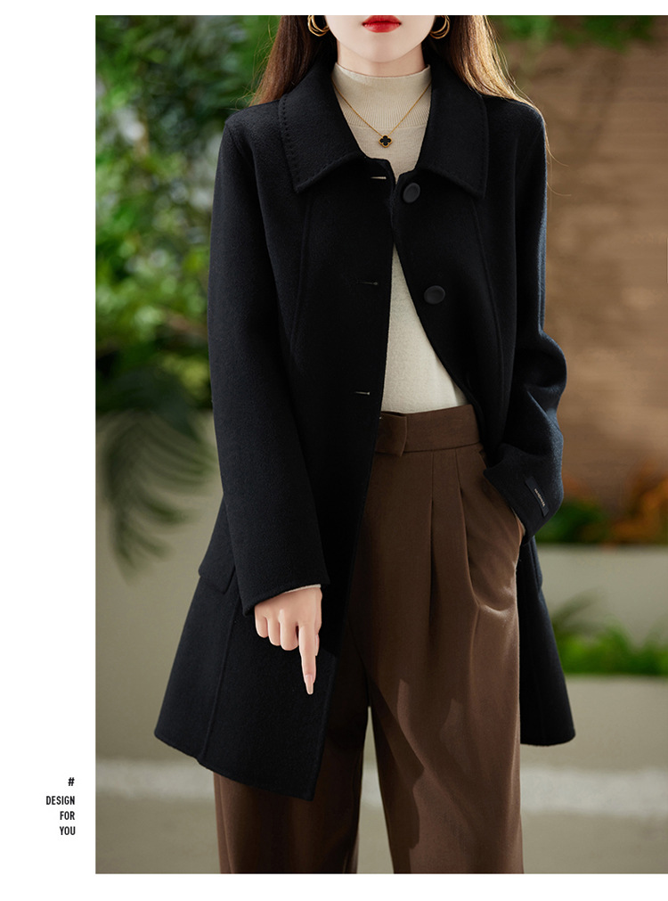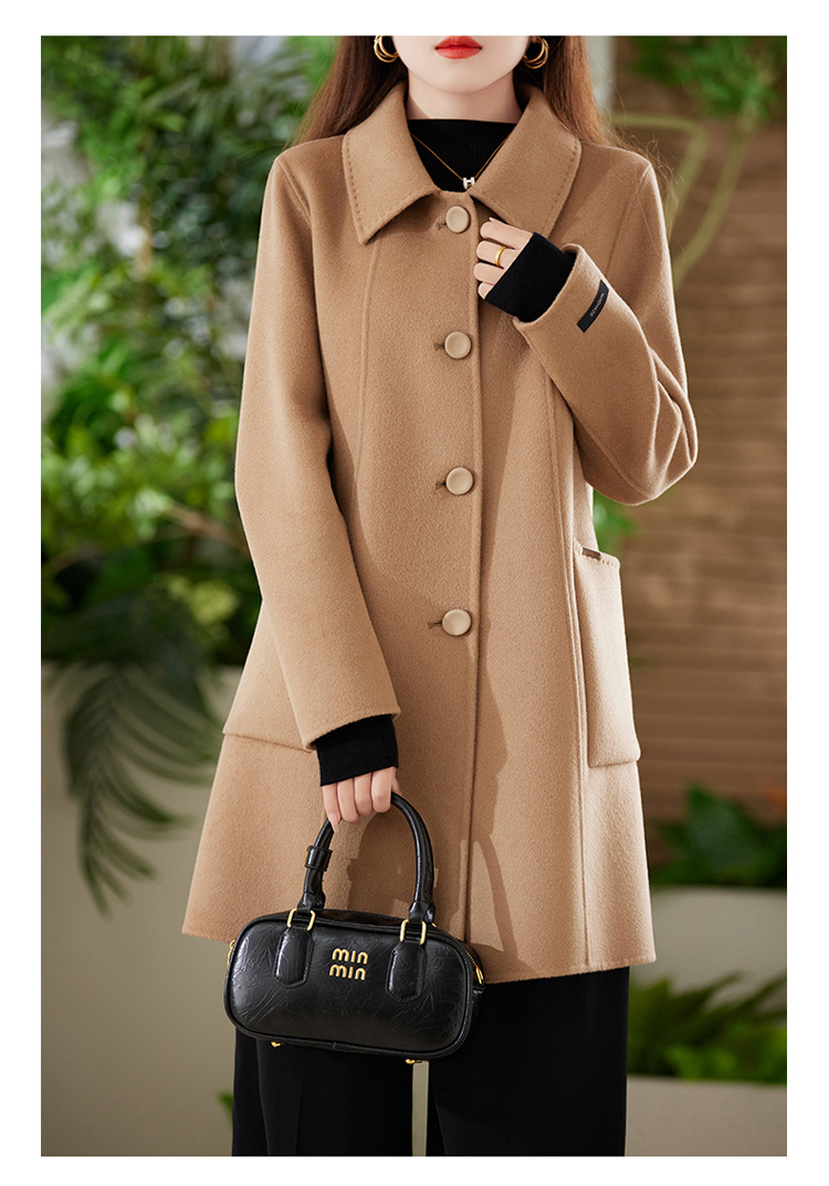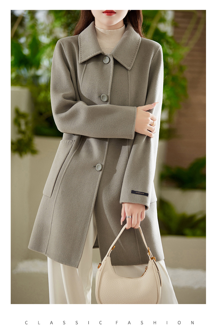 가을 겨울용 베이비 칼라 여성 모직 코트, 우아한 중간 길이 캐주얼 루즈핏 양면 울 코트, 가을 겨울용 두꺼운 모델