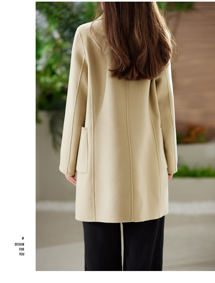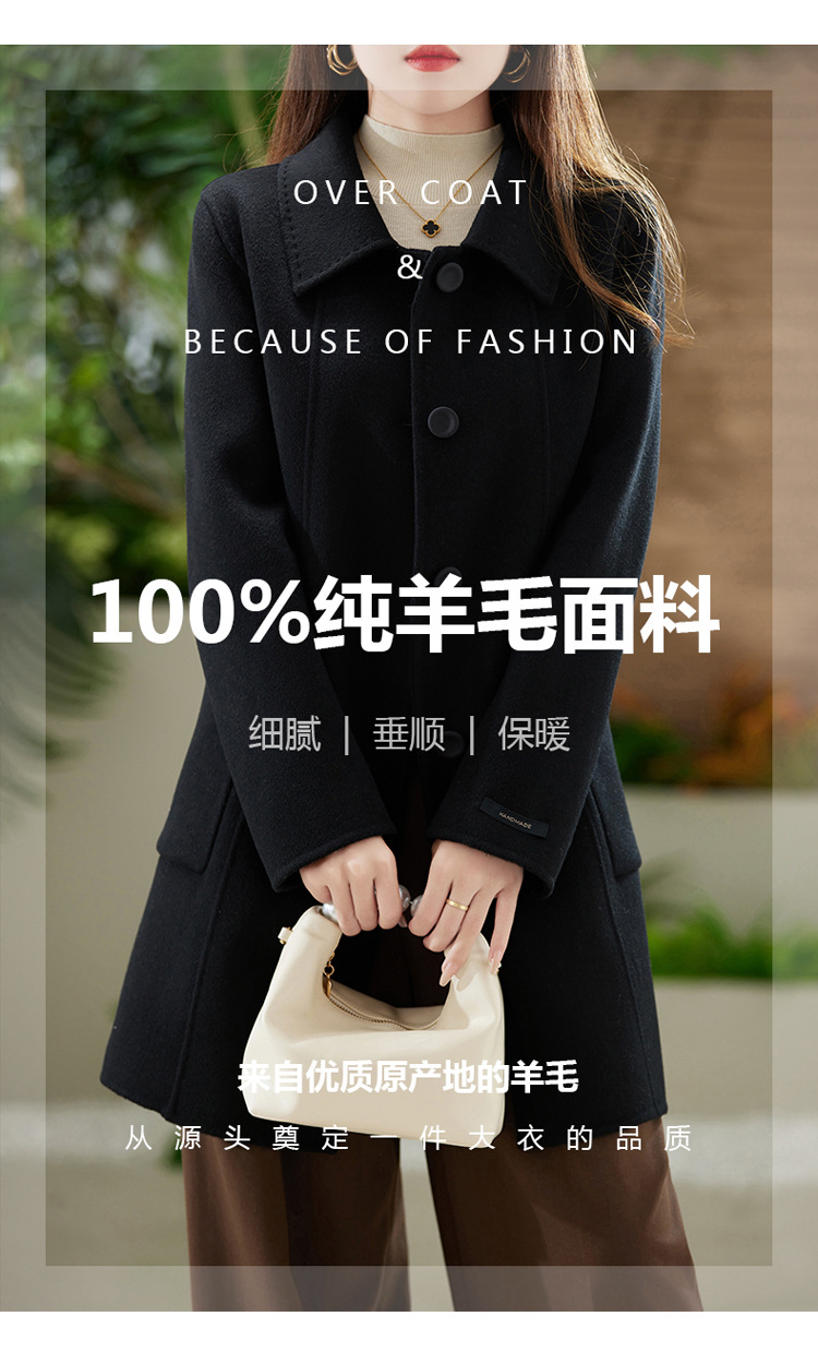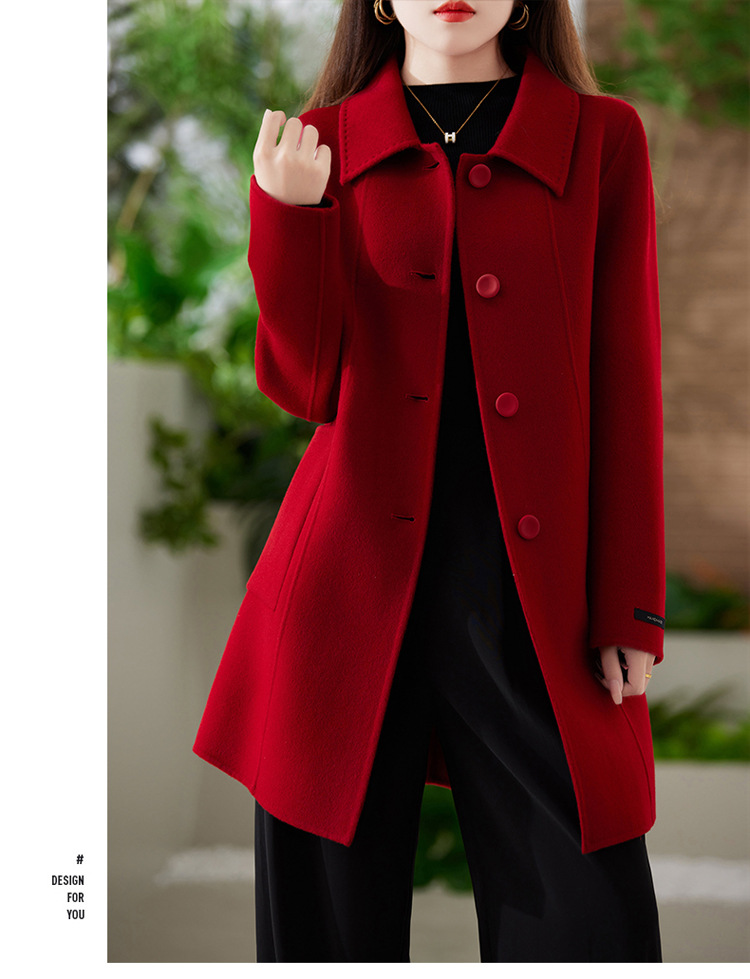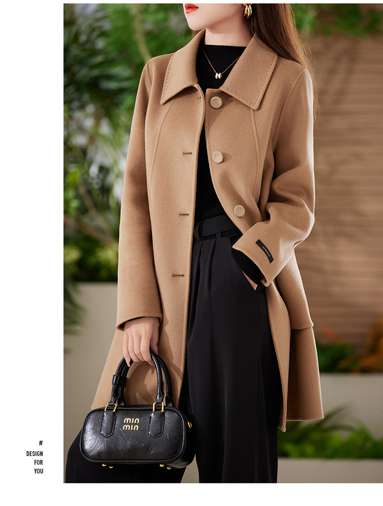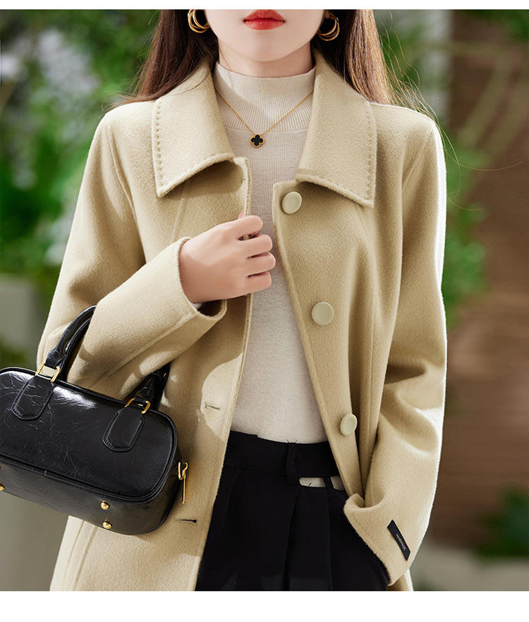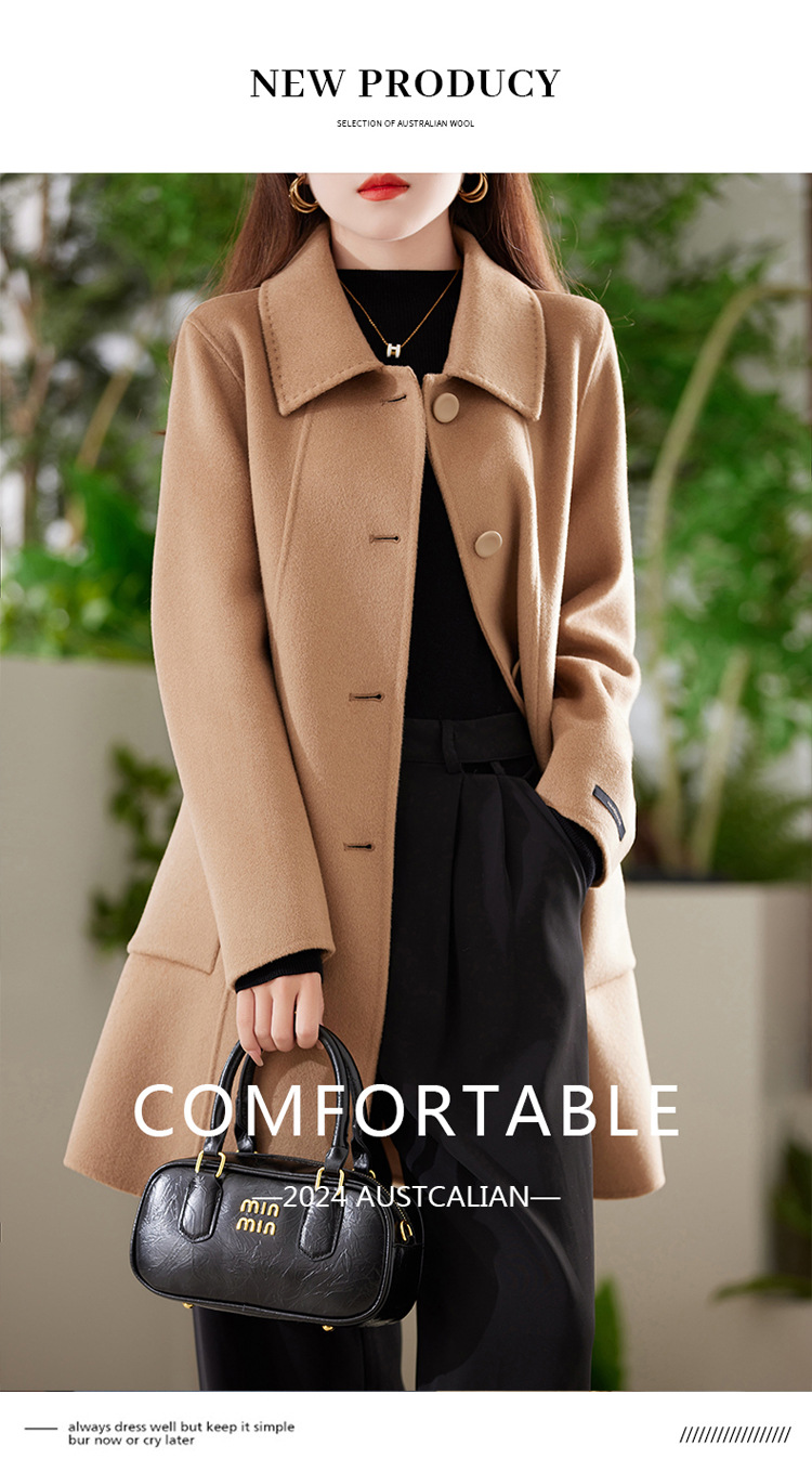 가을 겨울용 베이비 칼라 여성 모직 코트, 우아한 중간 길이 캐주얼 루즈핏 양면 울 코트, 가을 겨울용 두꺼운 모델