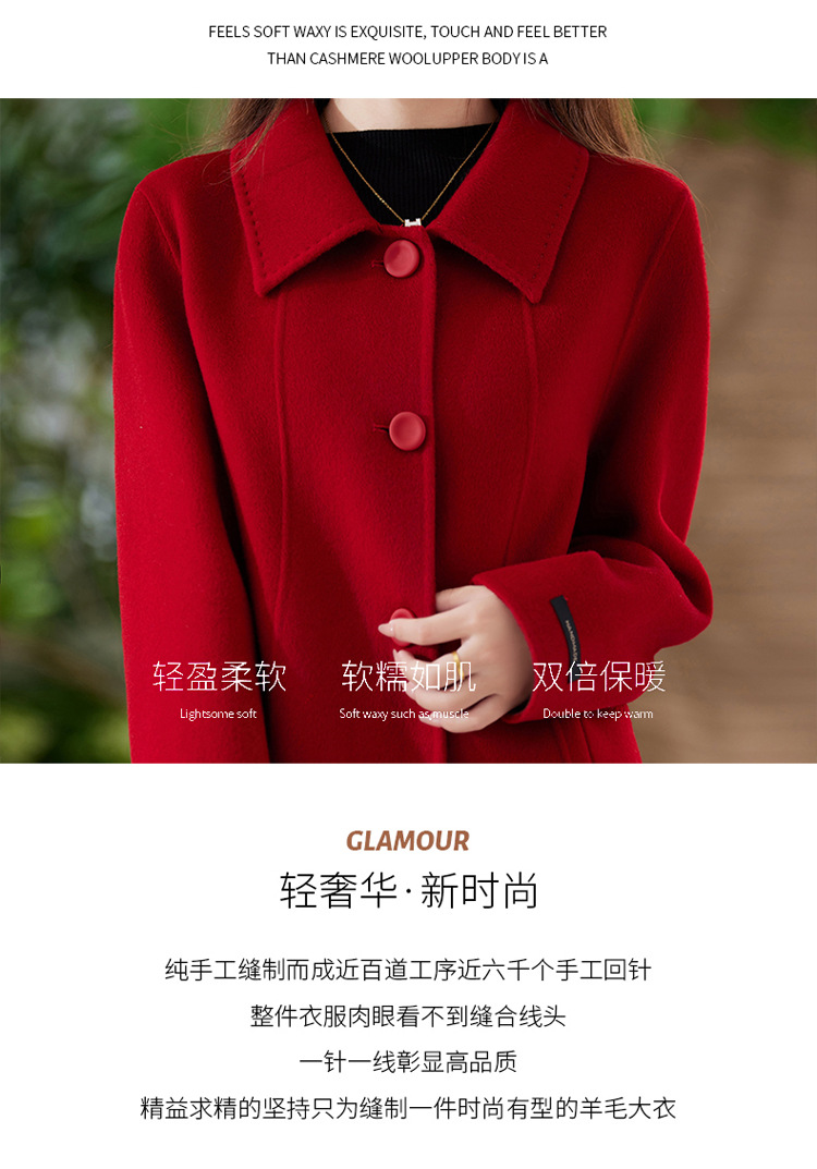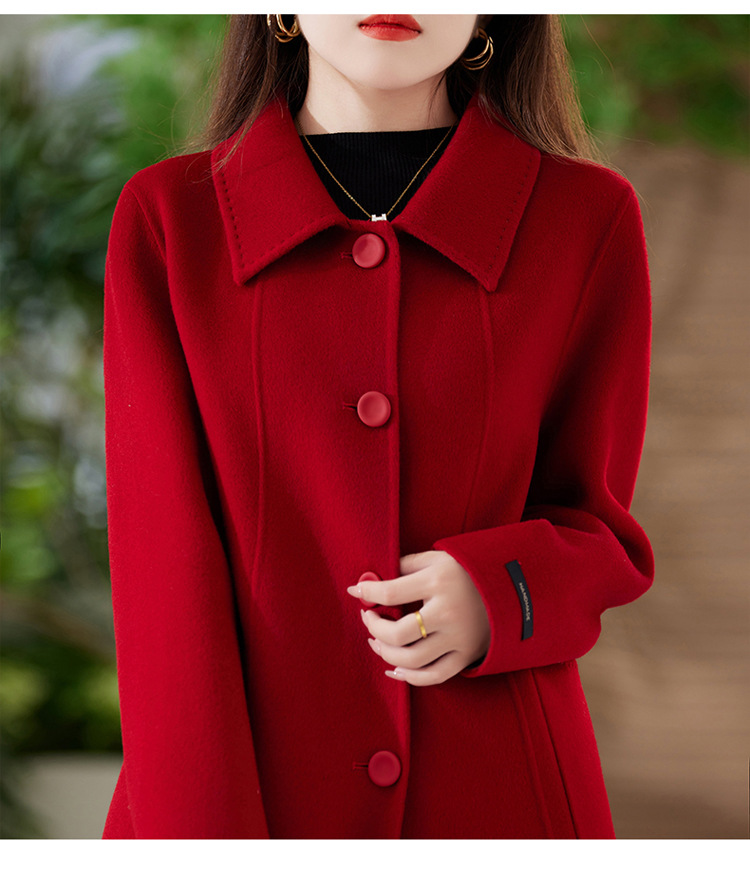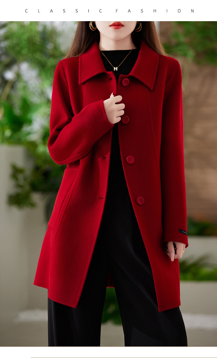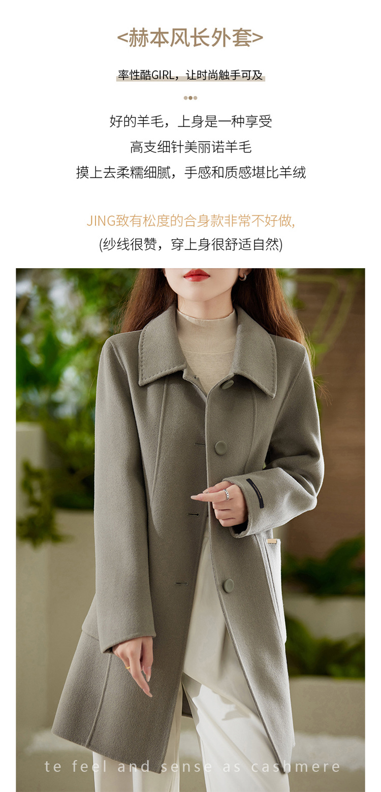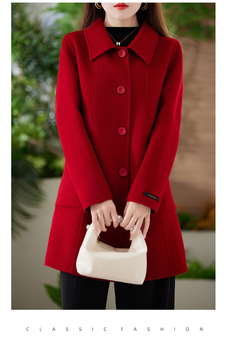 가을 겨울용 베이비 칼라 여성 모직 코트, 우아한 중간 길이 캐주얼 루즈핏 양면 울 코트, 가을 겨울용 두꺼운 모델