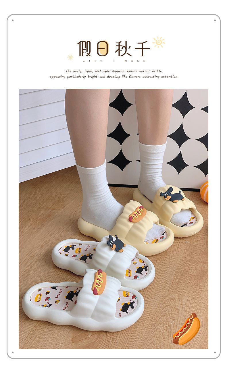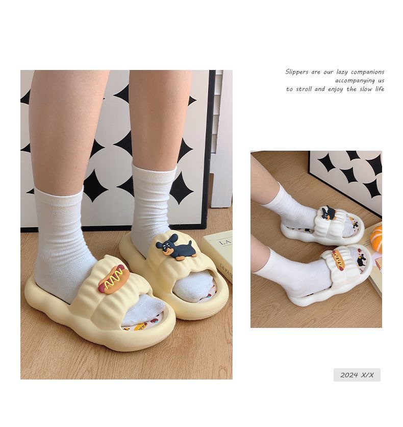 스톰프 느낌 2024 새로운 만화 핫도그 슬리퍼 여성의 여름 의상 인터넷 기념 두꺼운 바닥 홈 미끄럼 샌들