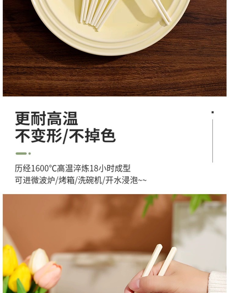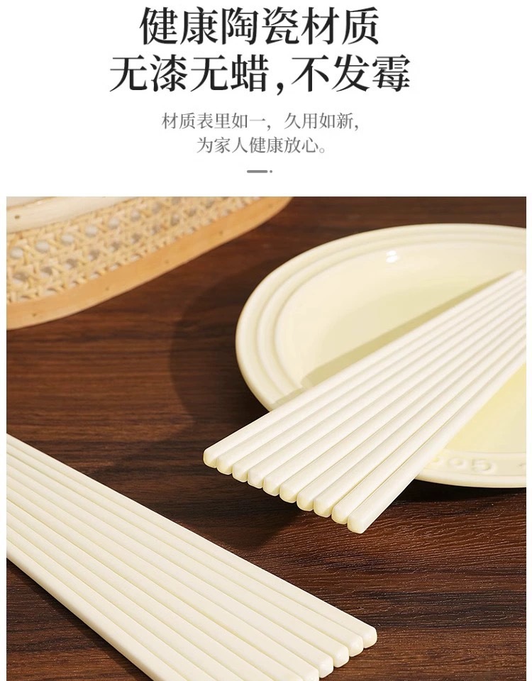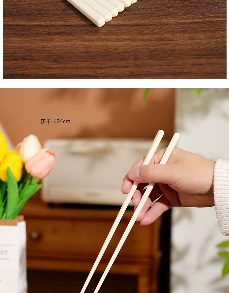 새로운 크림 스타일 세라믹 젓가락 창조적 인 가정용 젓가락 고온 내성 비 곰팡이 쉬운 세라믹 식기 청소