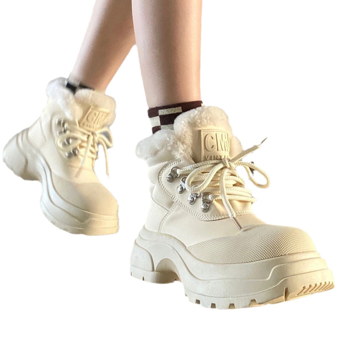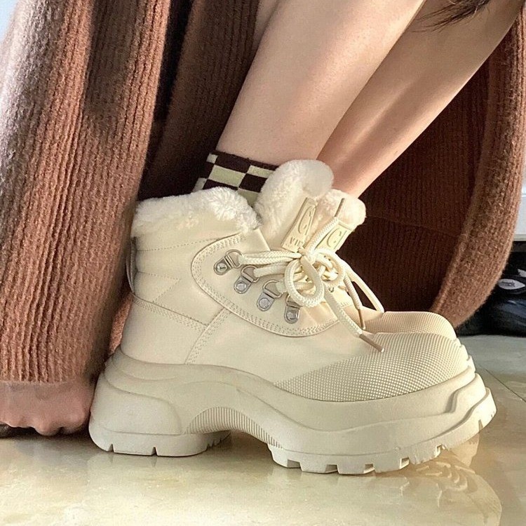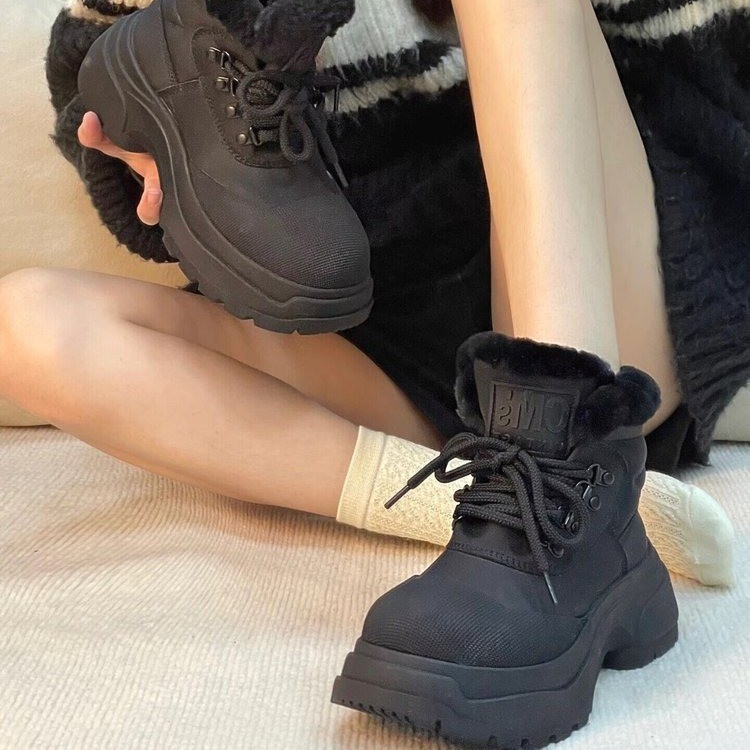 두꺼운 바닥 북동쪽 스노우 부츠 여성의 2023 겨울 새로운 기모 두꺼운 따뜻한 패션 화이트 마틴 부츠 면화 신발