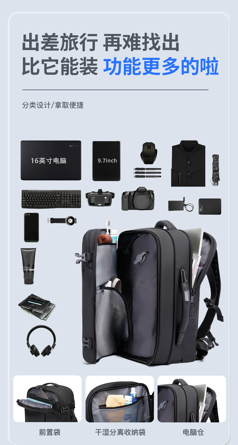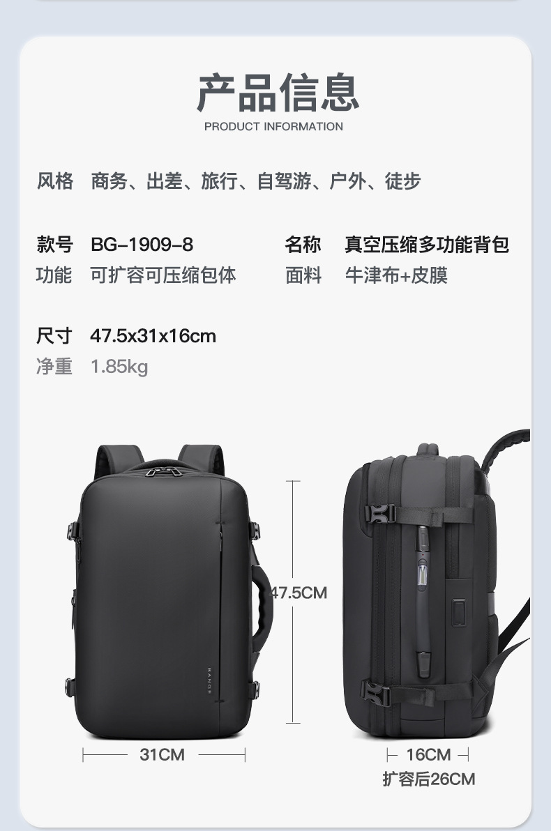 Ge 새로운 진공 압축 배낭 다기능 컴퓨터 가방 남성 캐주얼 대용량 저장 무게 여행 가방