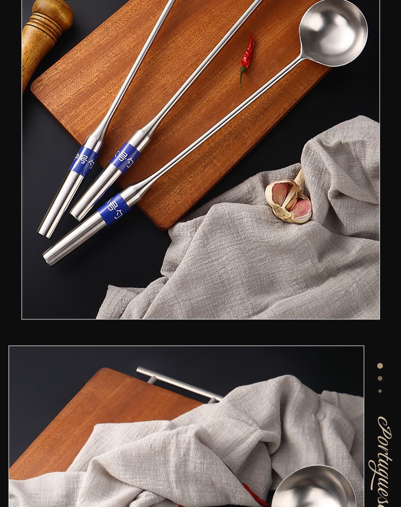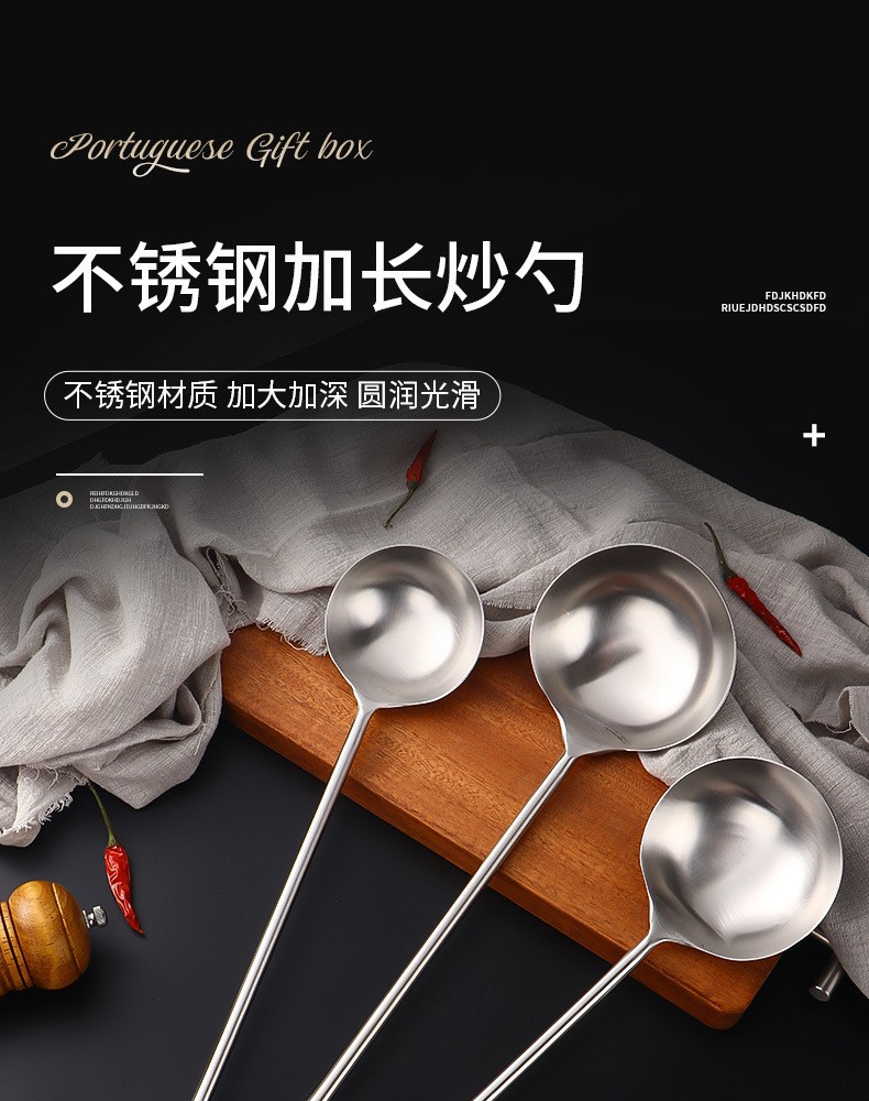 스테인레스 스틸 볶음 팬케이크 과일 특별 주방 매점 분할 긴 손잡이 요리사 볶음 숟가락 굵은 시리얼 반죽 스푼