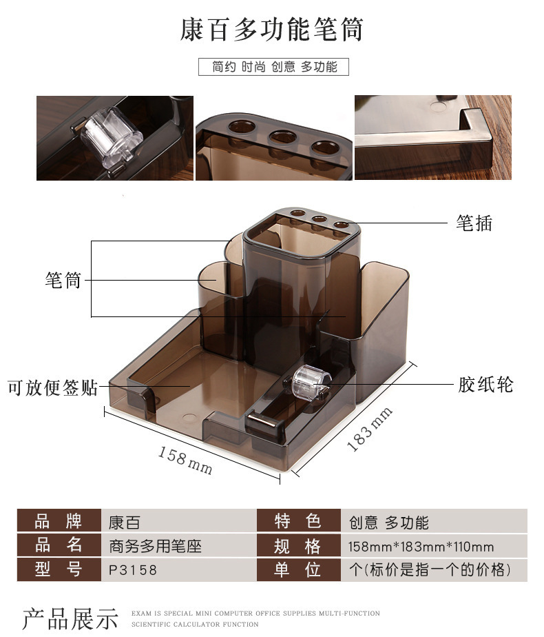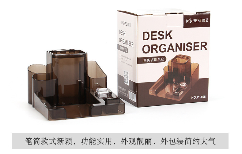 Kangbai 학생 창조적 인 문구 펜 홀더 다기능 데스크탑 저장 상자 사무실 간단한 투명한 펜 박스 랙