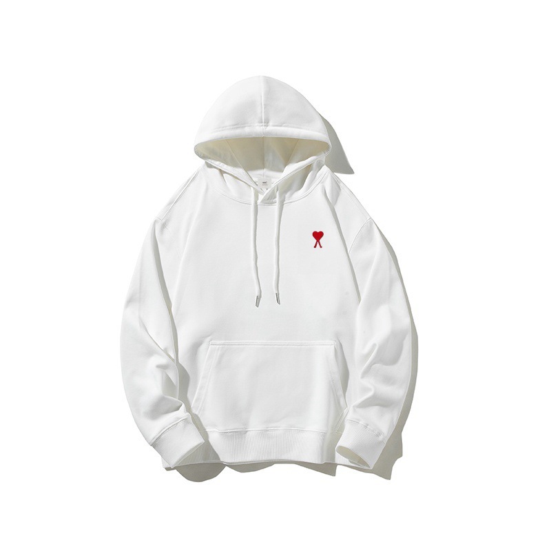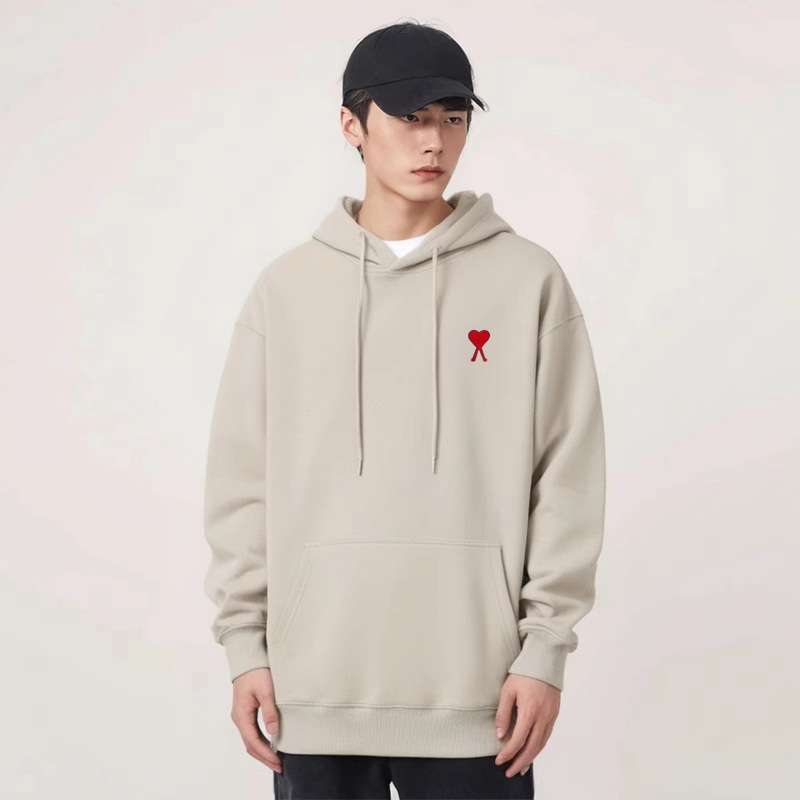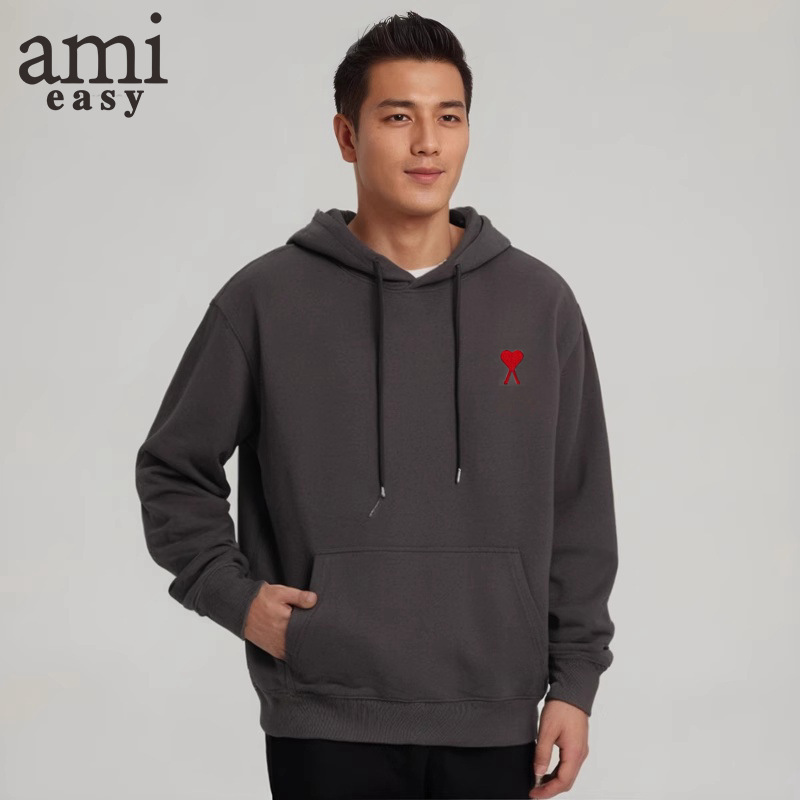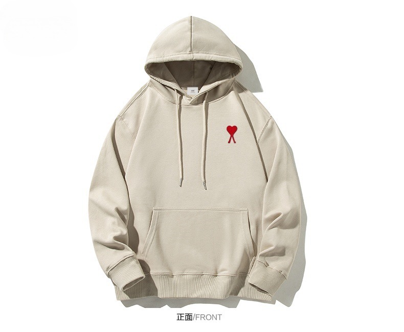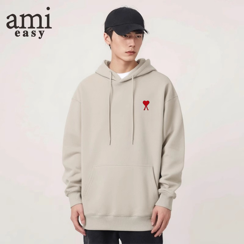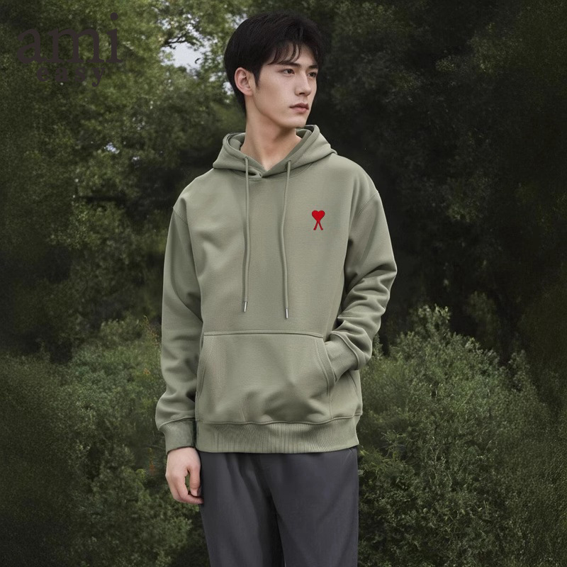 AMI&EASY 올바른 버전 후드티 남성용 자수 작은 하트 루즈 캐주얼 패션 심플 탑 가을용