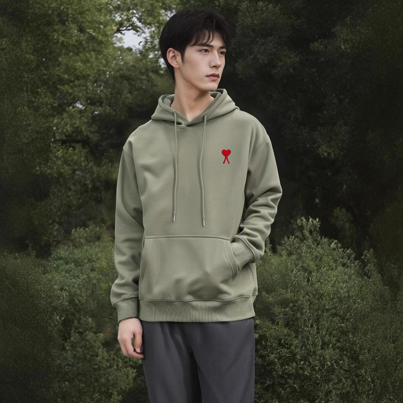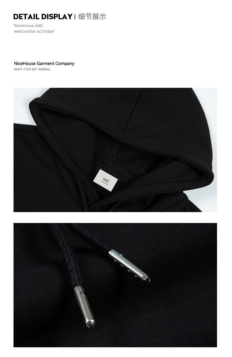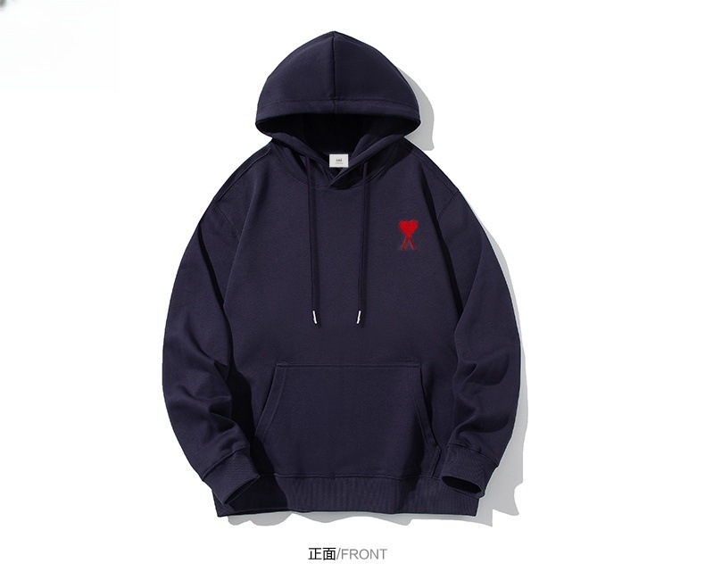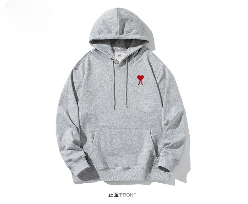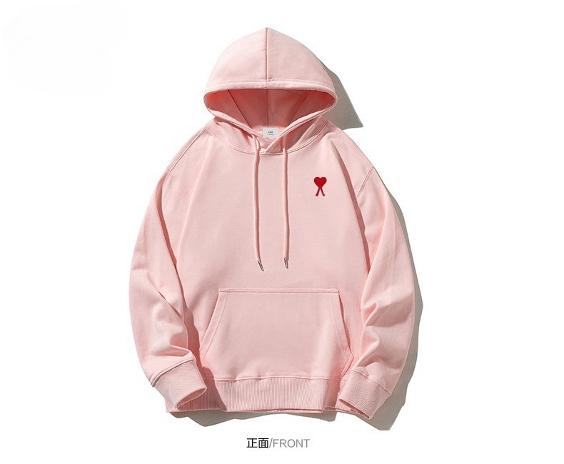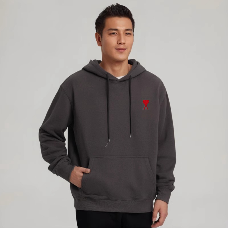 AMI&EASY 올바른 버전 후드티 남성용 자수 작은 하트 루즈 캐주얼 패션 심플 탑 가을용