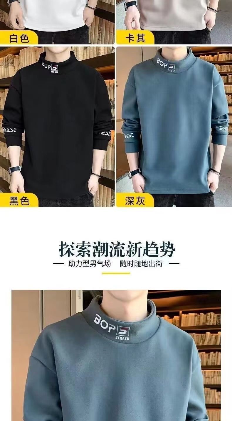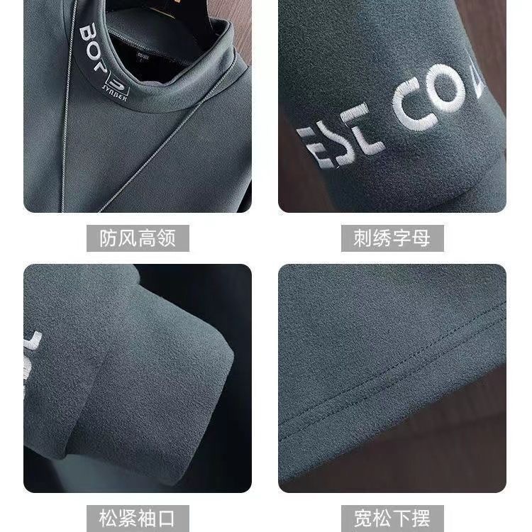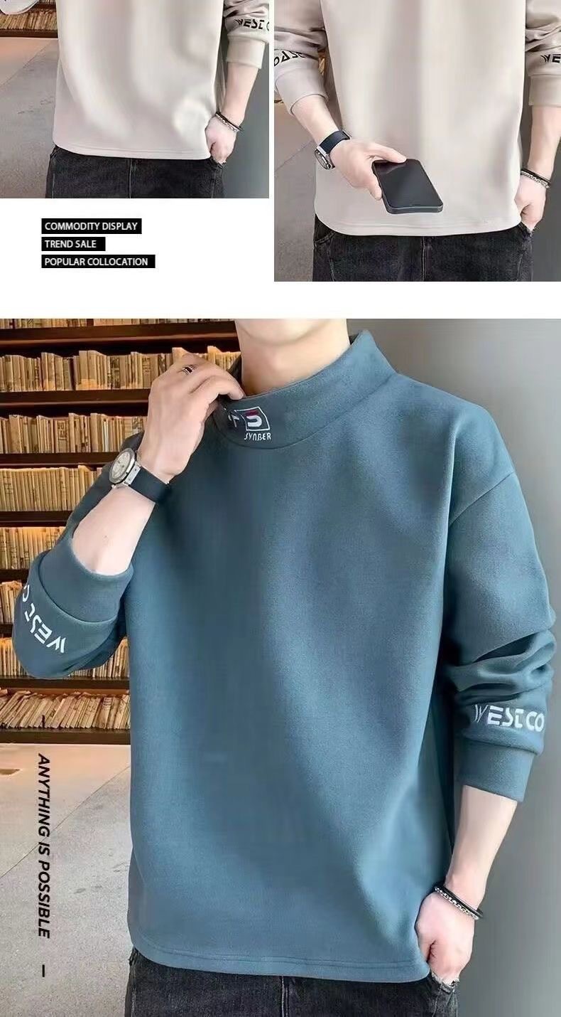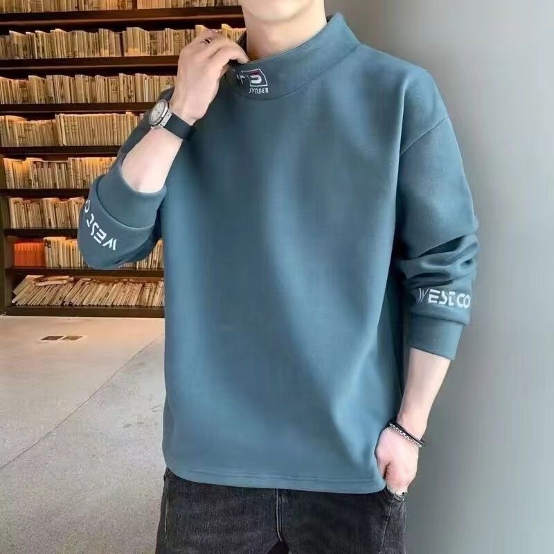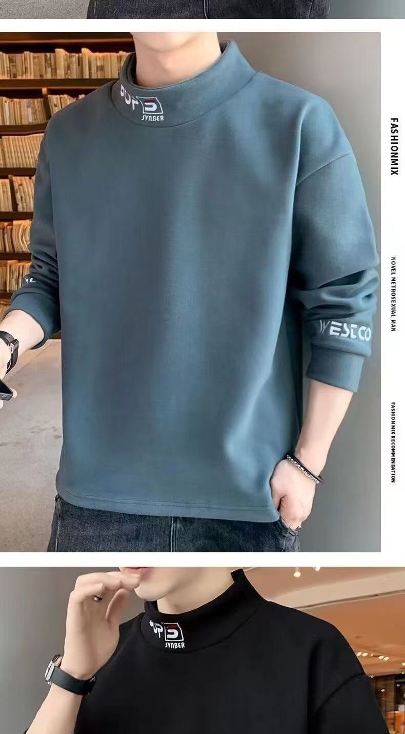 가을 겨울 남성용 하프 터틀넥 스웨트셔츠, 기모 안감, 루즈핏, 다용도 이너웨어, 양면 독일산 기모, 스탠드 칼라 긴팔 티셔츠