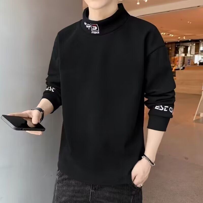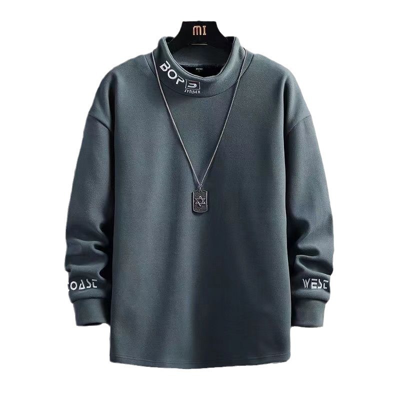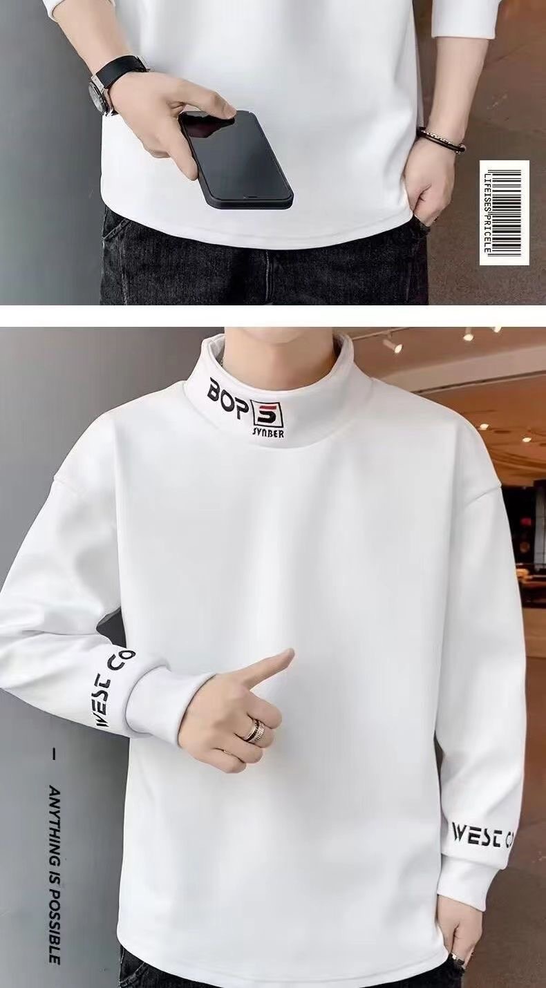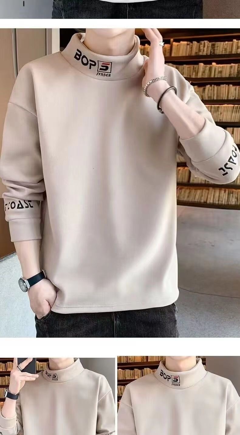 가을 겨울 남성용 하프 터틀넥 스웨트셔츠, 기모 안감, 루즈핏, 다용도 이너웨어, 양면 독일산 기모, 스탠드 칼라 긴팔 티셔츠