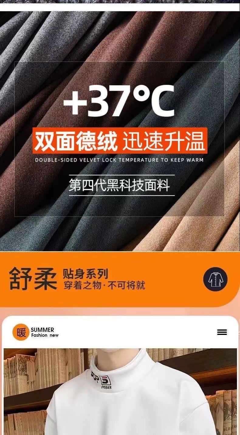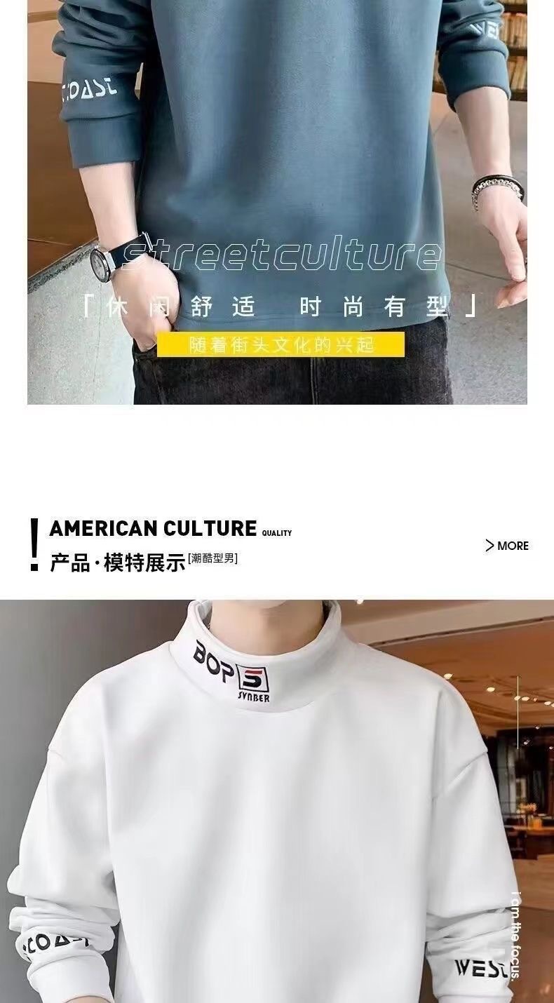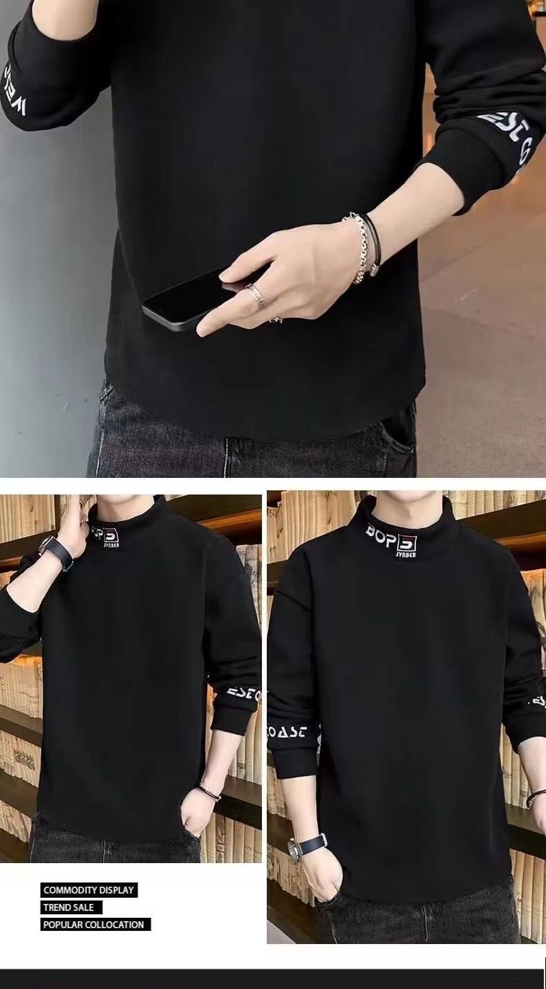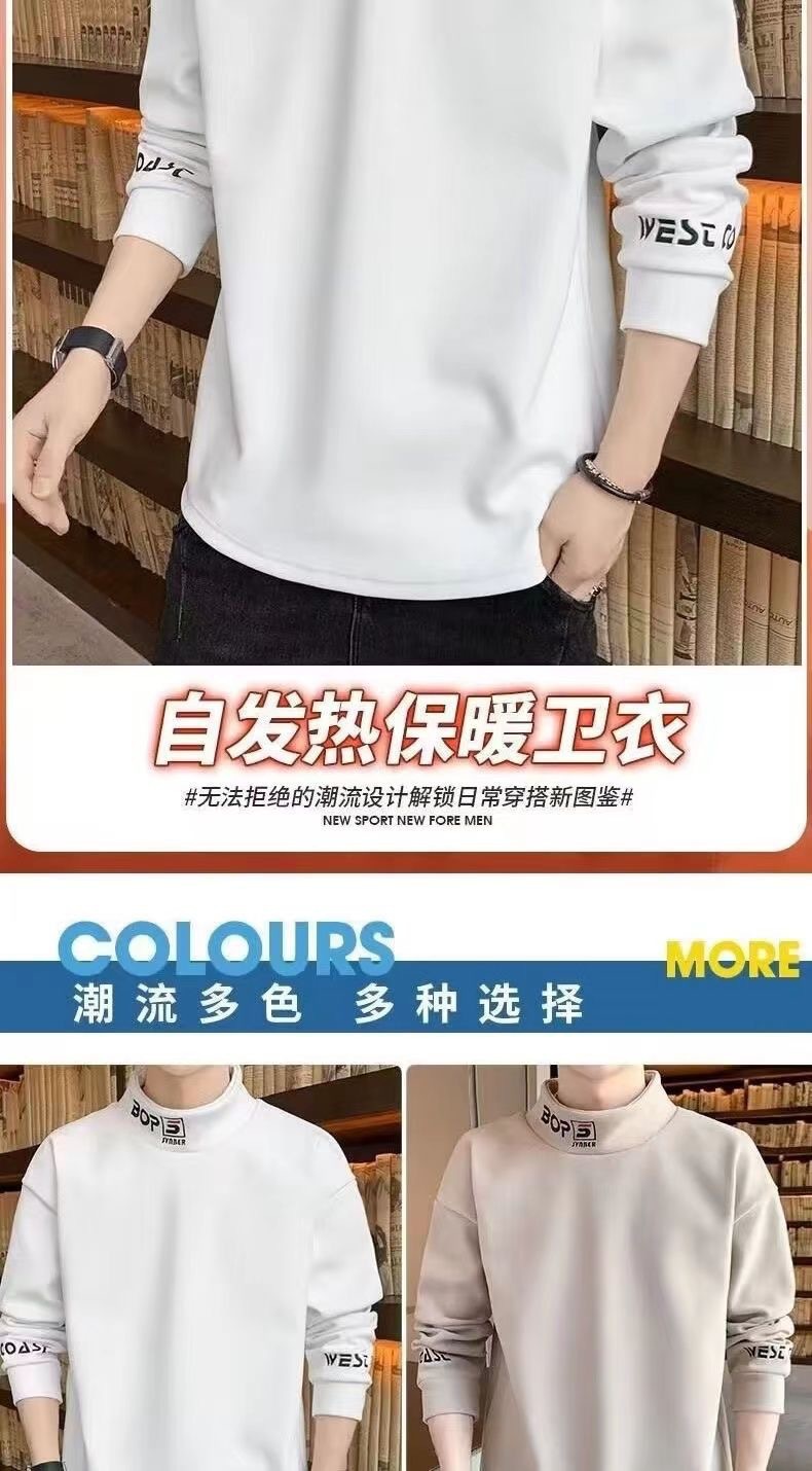 가을 겨울 남성용 하프 터틀넥 스웨트셔츠, 기모 안감, 루즈핏, 다용도 이너웨어, 양면 독일산 기모, 스탠드 칼라 긴팔 티셔츠