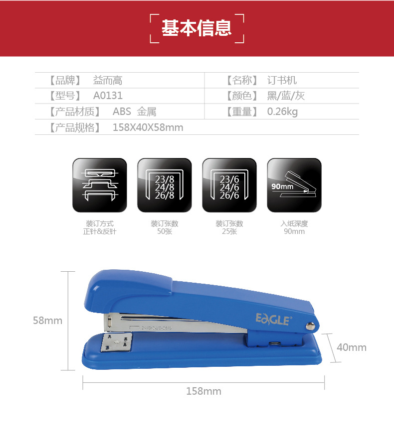 철제 끈 50매용 스테이플러 대형 두꺼운 스테이플러 제본 용품 제본기 학생 사무용
