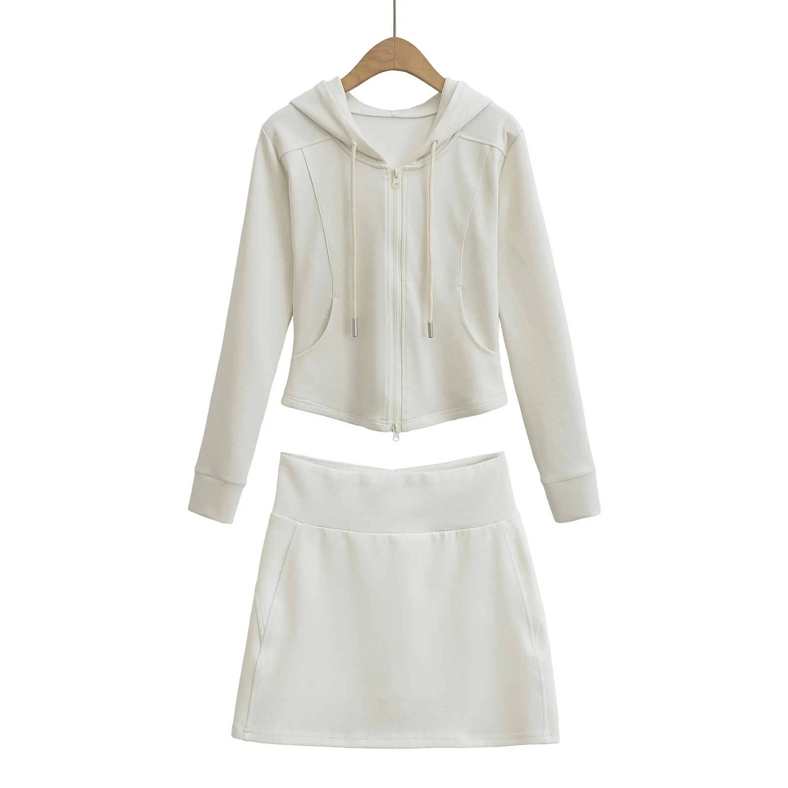 캐주얼 스포츠 스커트와 함께 후드 스포츠 땀 순수 슬림 플레어 바지 바지 세트 여성
