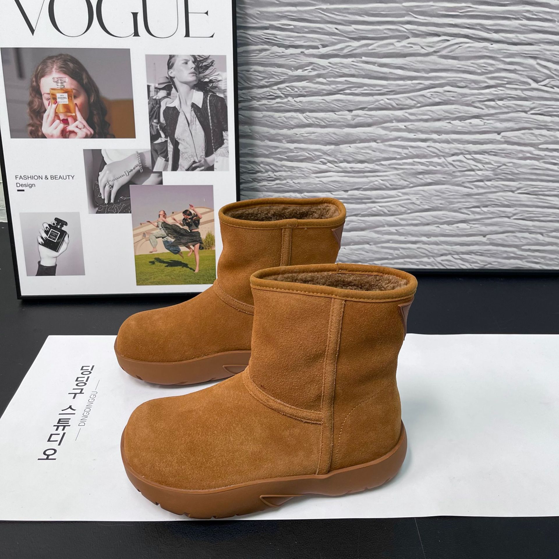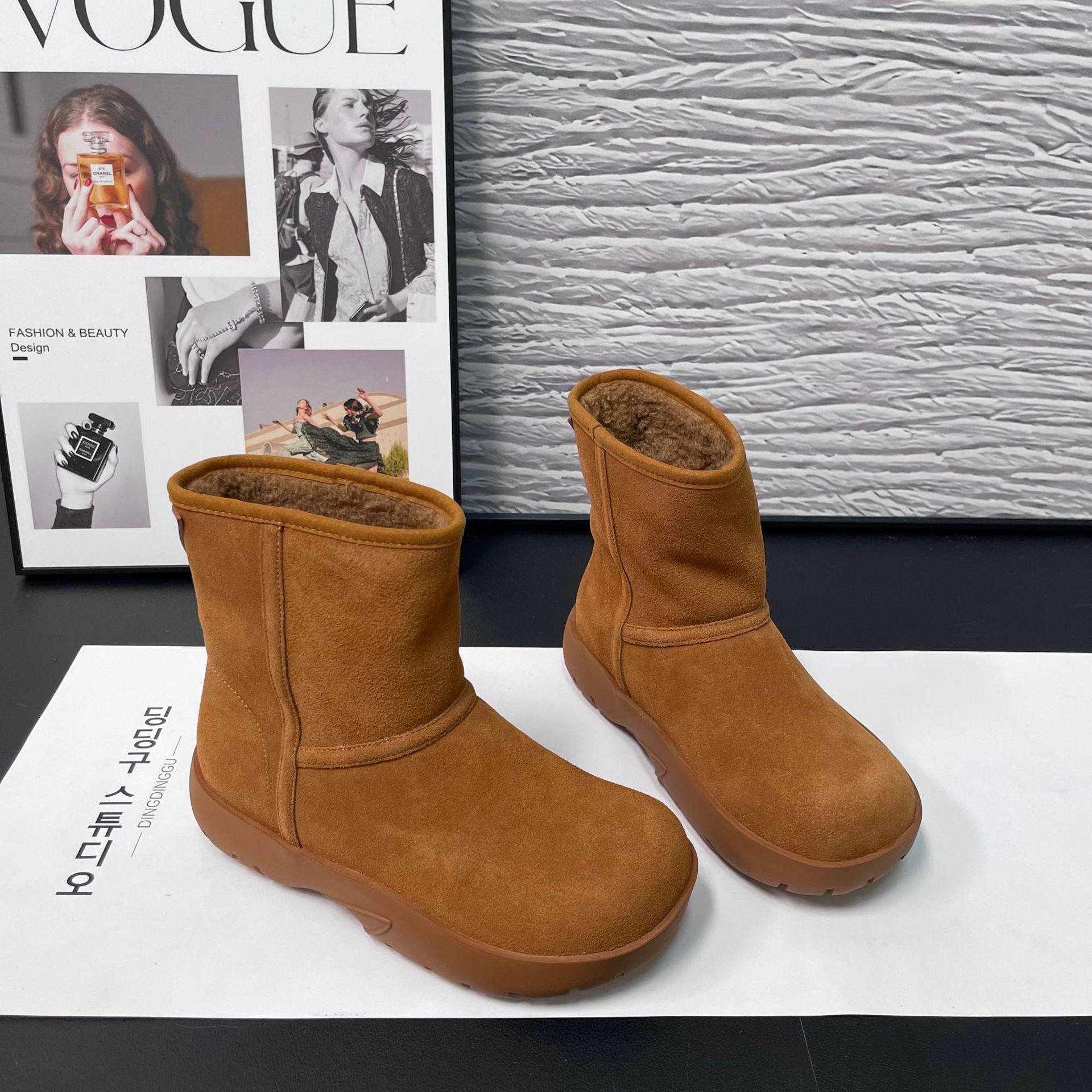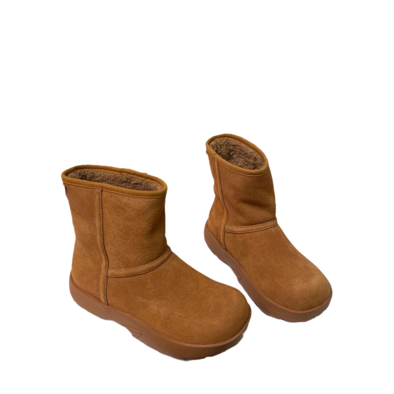 2025 겨울 신상 두꺼운 밑창 중간 길이 스노우 부츠 여성용 플러스 벨벳 두꺼운 보온 부츠 양가죽 모피 일체형 면화 신발 여성용