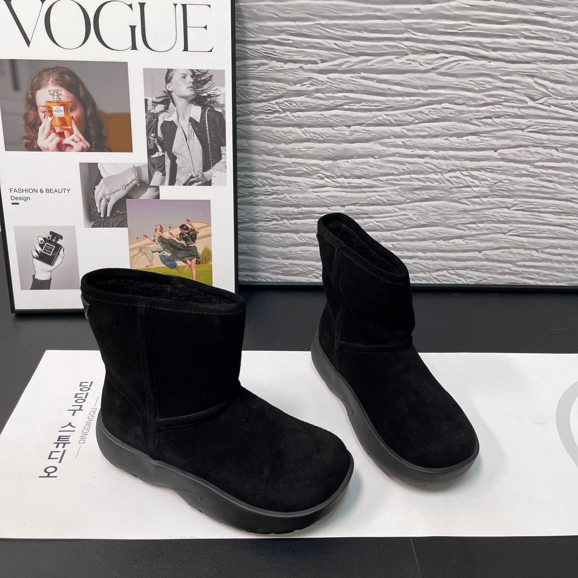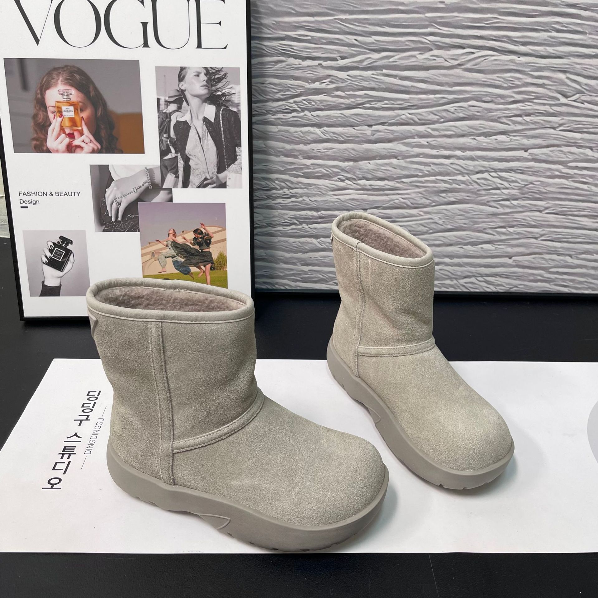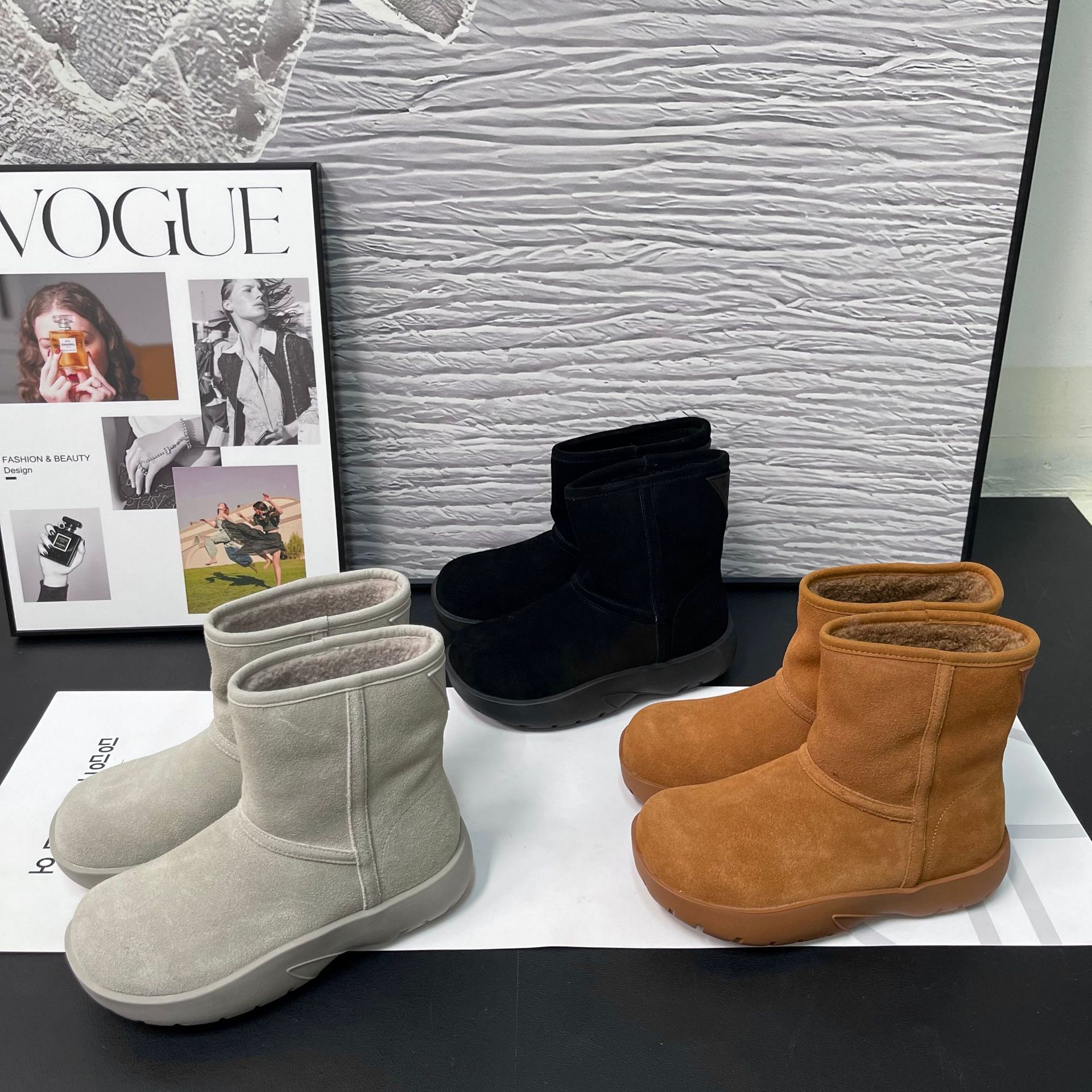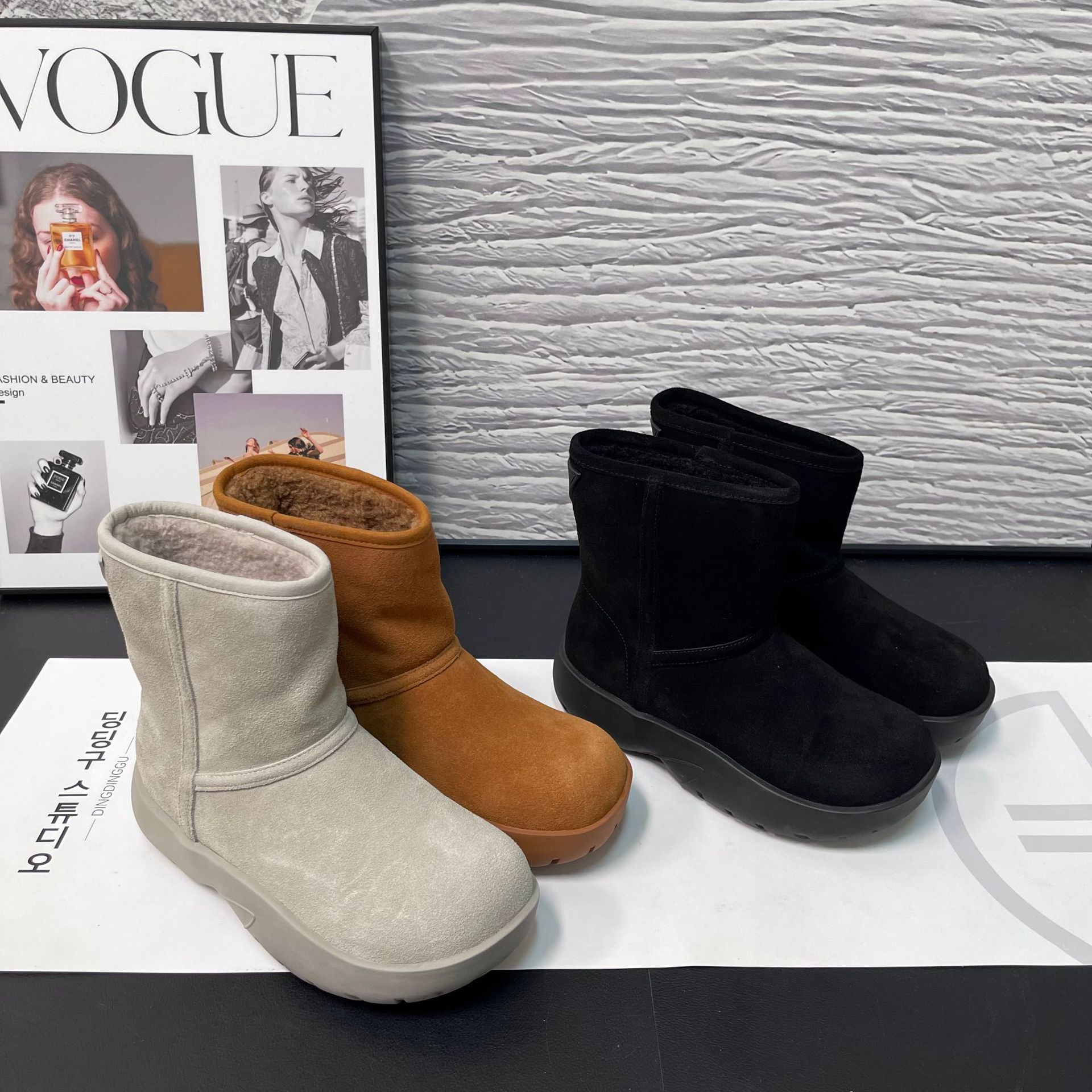 2025 겨울 신상 두꺼운 밑창 중간 길이 스노우 부츠 여성용 플러스 벨벳 두꺼운 보온 부츠 양가죽 모피 일체형 면화 신발 여성용