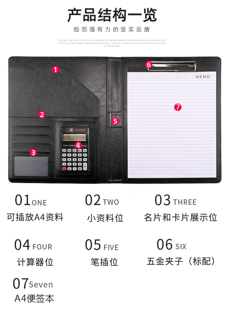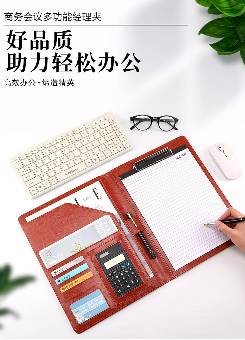 A4 파일 폴더, 서명 폴더, 지퍼가 달린 비즈니스 계약 가죽 관리 폴더, 맞춤형 로고 메모지